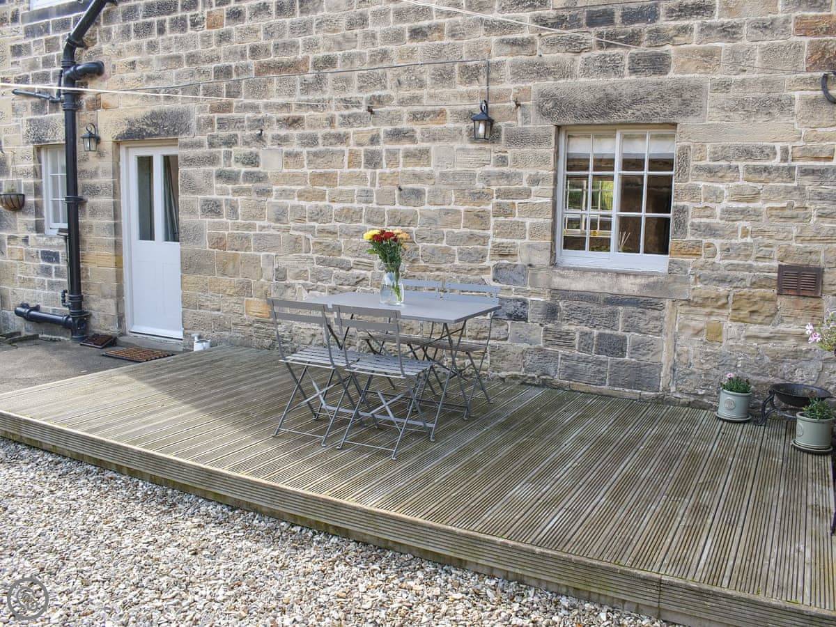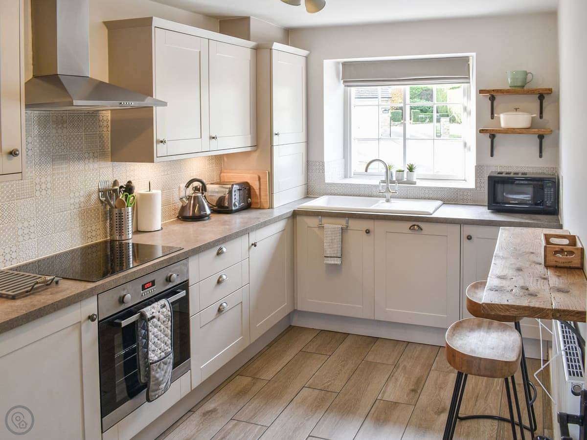 Entrance is gained into the comfortable living room which is complete with a stunning woodburner adding extra charm and additional heat, as well as comfortable sofas and a Smart TV, giving a great place to snuggle up in front of the fire on those colder evenings with a glass or two of red wine. In addition, there is a dining table and chairs in the living area which make the property great for socialising or playing a board game with the family. On the same floor is the designer kitchen which features all the usual mod cons and is fully equipped for all your culinary needs, should you not wish to eat at the many eateries close by. All three bedrooms have fresh bed linen for a perfect night’s sleep, meaning you are fully energised for the next day’s adventure. On the first floor is the family bathroom complete with a shower over bath should you wish to have a long soak after a day exploring, and a heated towel rail. To the rear of the cottage the enclosed private patio and decked area is a great place for having a glass of fizz alfresco or taking in the morning air with a coffee.