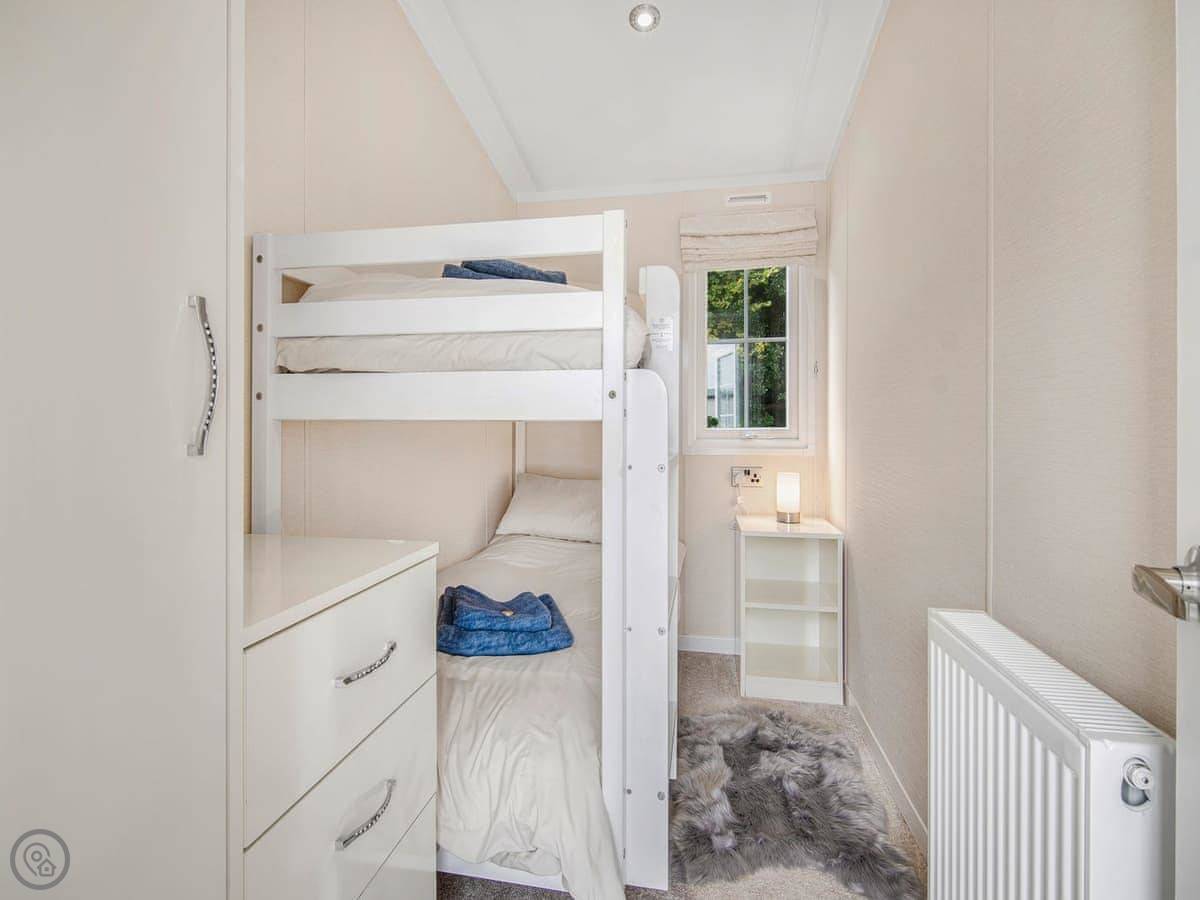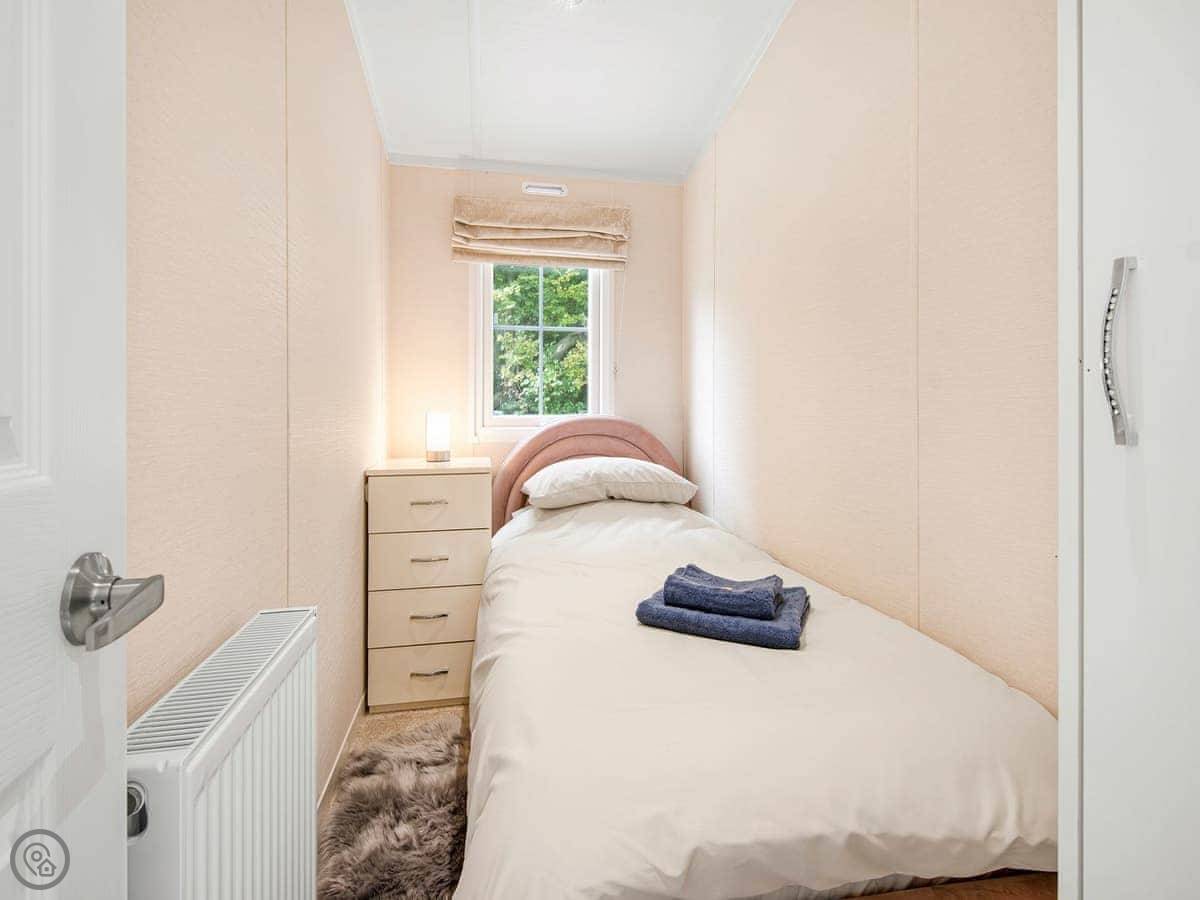 European Lodge is on Lady Edith's Holiday Park, just outside Scarborough. It's a static caravan. It sleeps five, in three bedrooms. There's one bathroom. It's got a 4 Star rating.