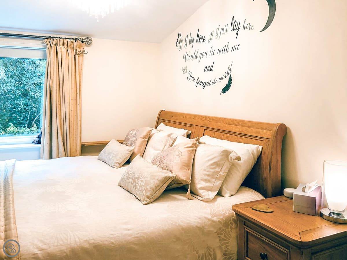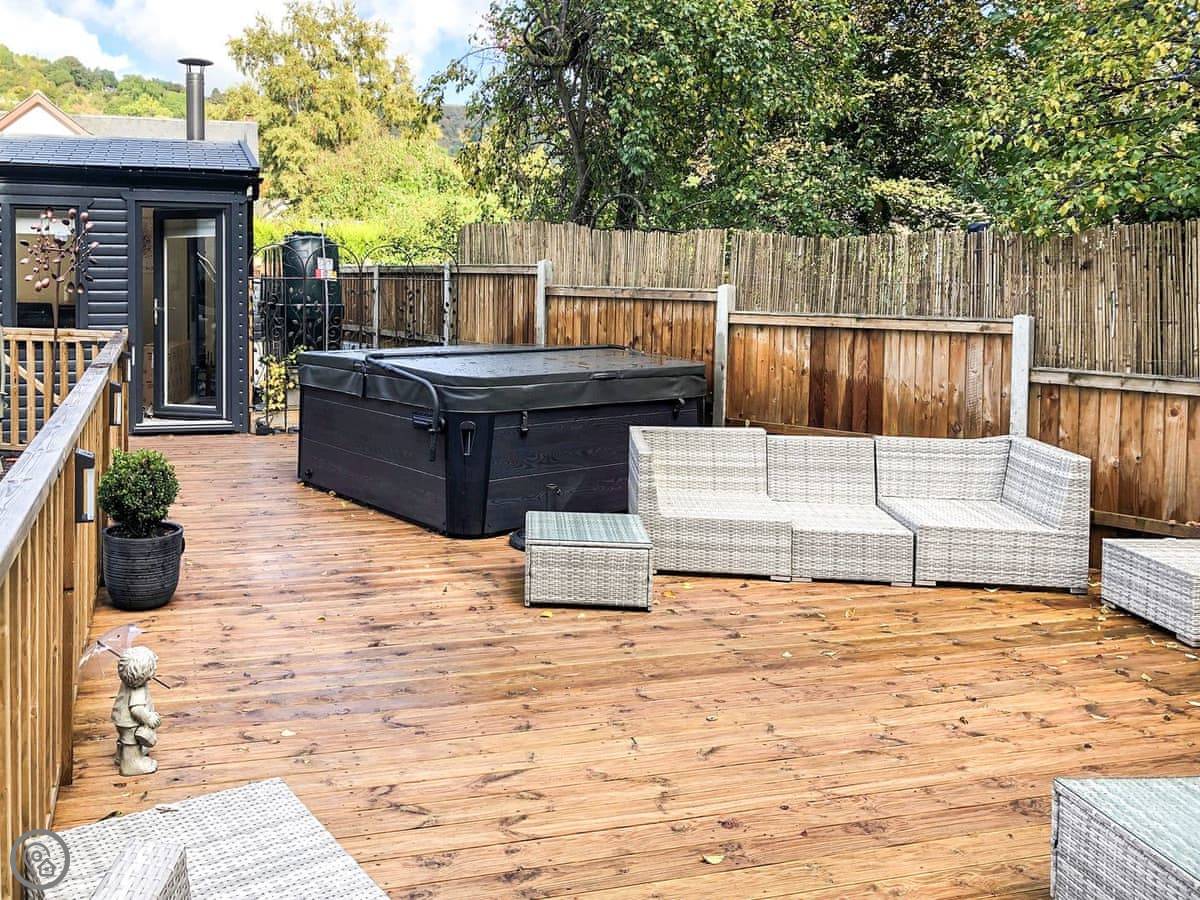 Positioned in the stunning Ceiriog Valley, this wonderful property is the perfect getaway for families and friends in search of natural and tranquil surroundings. Come here to unwind and enjoy a relaxing country holiday. The charming living room with multi-fuel burner, comfortable sofas and Smart TV, provides a cosy and restful area. The bathroom is also on the ground floor and offers a bath with shower attachment. The open kitchen/dining room is where you can cook up a hearty Welsh breakfast, enjoy an evening feast or eat al fresco as you have access to the stunning outdoors from this room. Here is where you can enjoy a soak in the hot hub, stroll down to the river at the bottom of the garden where you may see kingfishers, otters, herons and badgers to name a few of the local residents. A fabulous summer house is positioned perfectly for enjoying the outdoors with spectacular views through the huge picture window across the garden from the comfortable sofa. For those who need to work whilst away, there is a desk with Wi-Fi and a BOSE speaker too. Upstairs is a delightful shower room which serves the bedrooms in a bright and airy fashion. The master bedroom boasts a super kingsize water bed, ethanol fire feature and views, making it a very romantic. The second bedroom is a twin. The garden boasts a riverside setting with an abundance of pretty plants and shrubs.