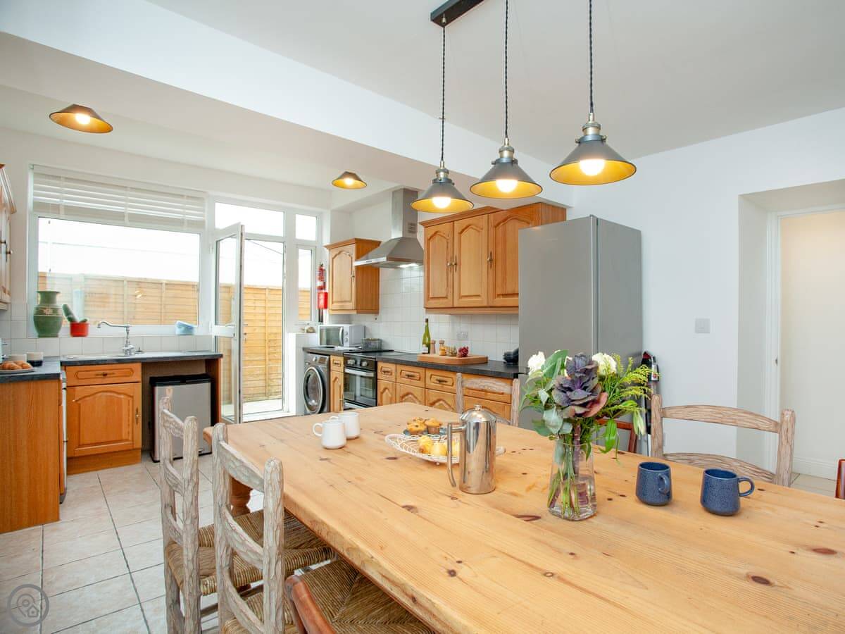 The property has two bedrooms and a bathroom on the ground floor, ideal for people with mobility issues, popular with grandparents or friends as they can have their own access to this part of the house. The large kitchen/dining area separates the downstairs bedrooms from the living room and has access to the garden and front of the house. The spacious living room has giant sofas, ideal for relaxing after a busy day, the Sky Glass Smart TV will entertain everyone and the Google Home Hub allows you to link smartphones and stream music in the house. The kitchen is fully equipped providing everything you would need, pop down to the local bakery in the morning for fresh bread and pastries, or the supermarket to pick-up last-minute ingredients. On the first floor are a further three bedrooms, and a second bathroom and separate toilet complete this fantastic property.