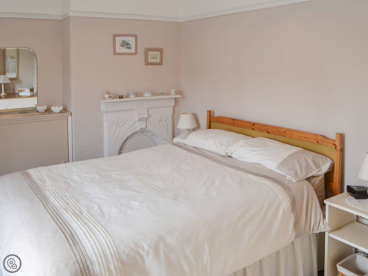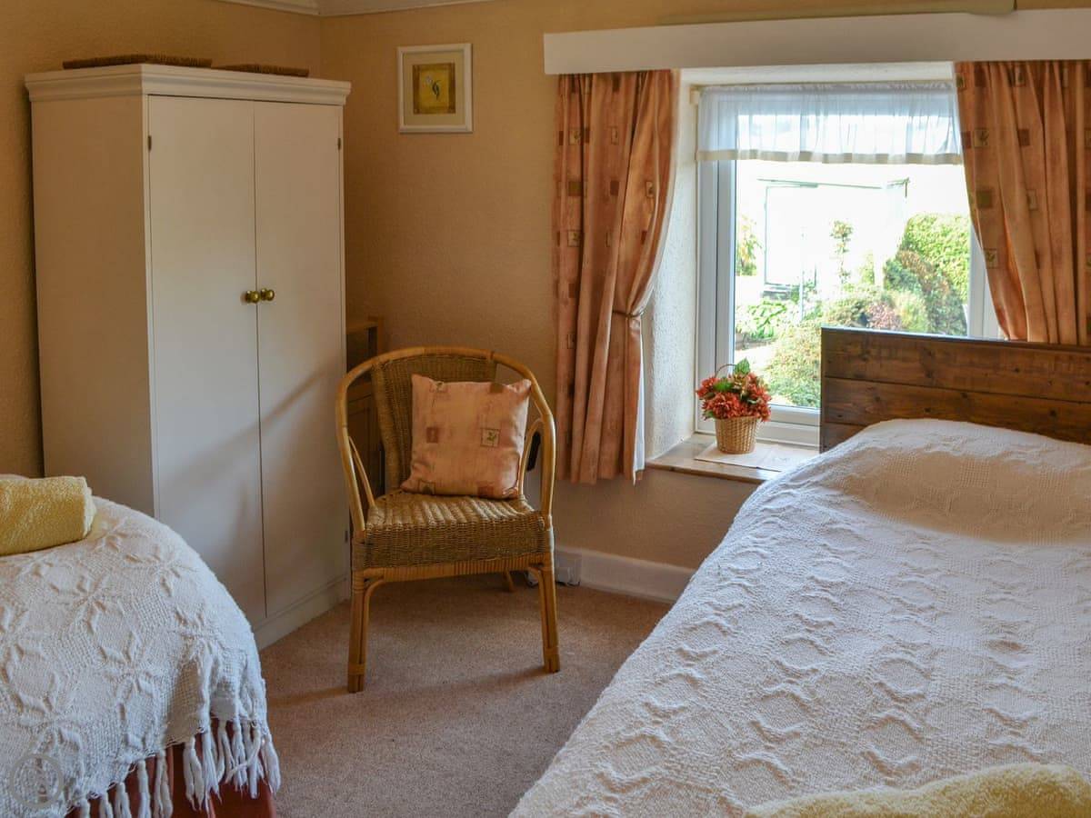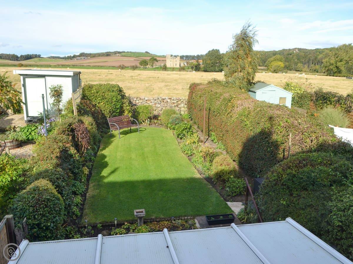 The cottage itself sleeps four. Two bedrooms, one bathroom. It's got a 3 Star rating. Everything works and it's clean. There's an open fire for the evenings. The garden's at the back. It's a raised lawn so you get a decent view over the fields.