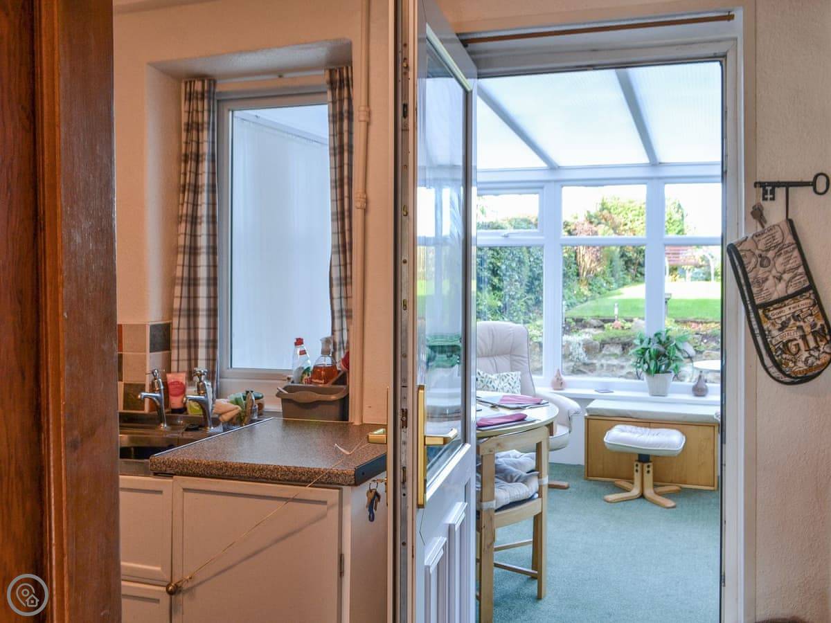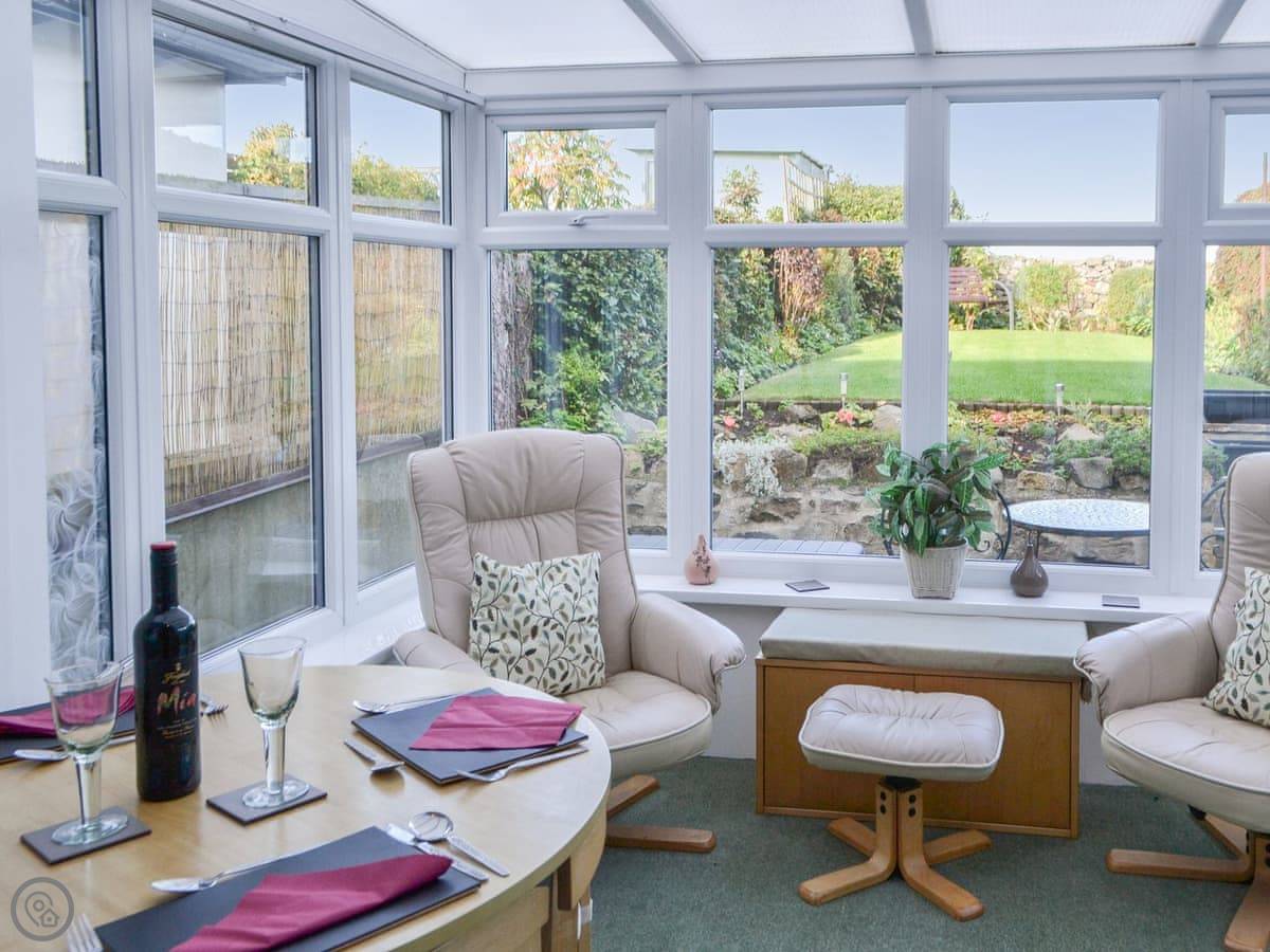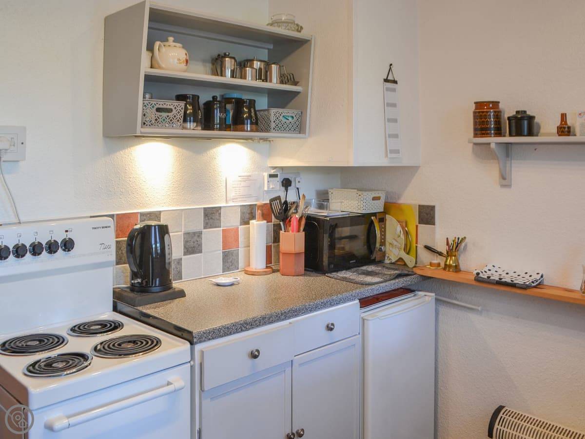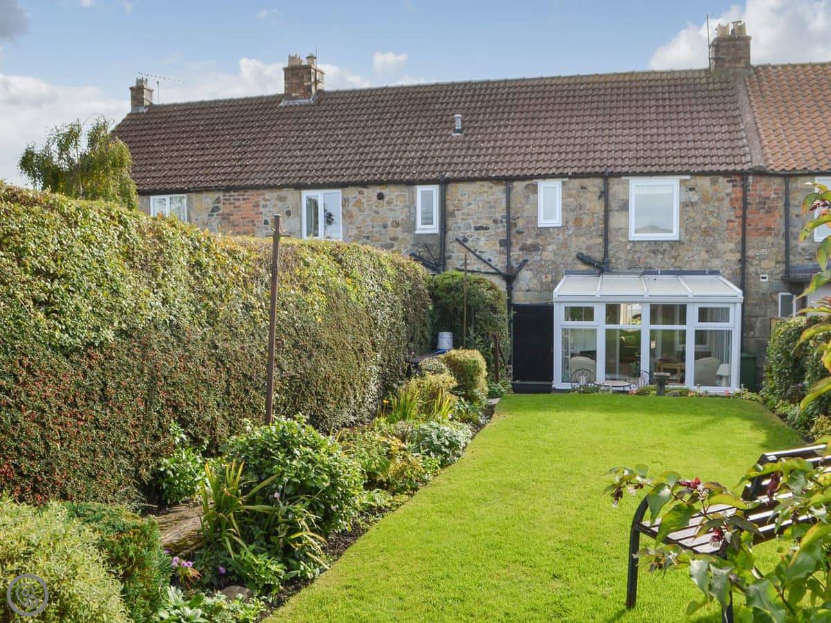 The cottage itself sleeps four. Two bedrooms, one bathroom. It's got a 3 Star rating. Everything works and it's clean. There's an open fire for the evenings. The garden's at the back. It's a raised lawn so you get a decent view over the fields.