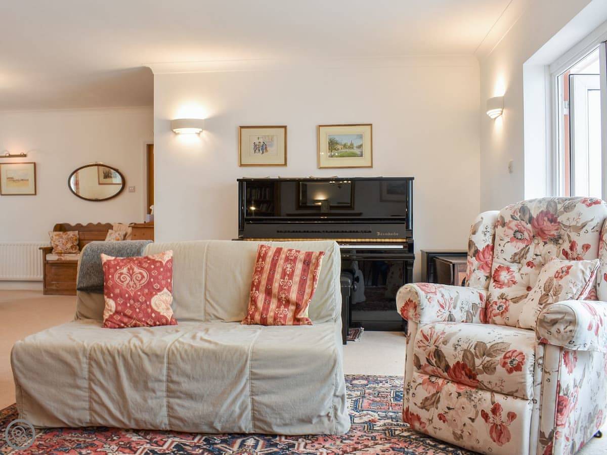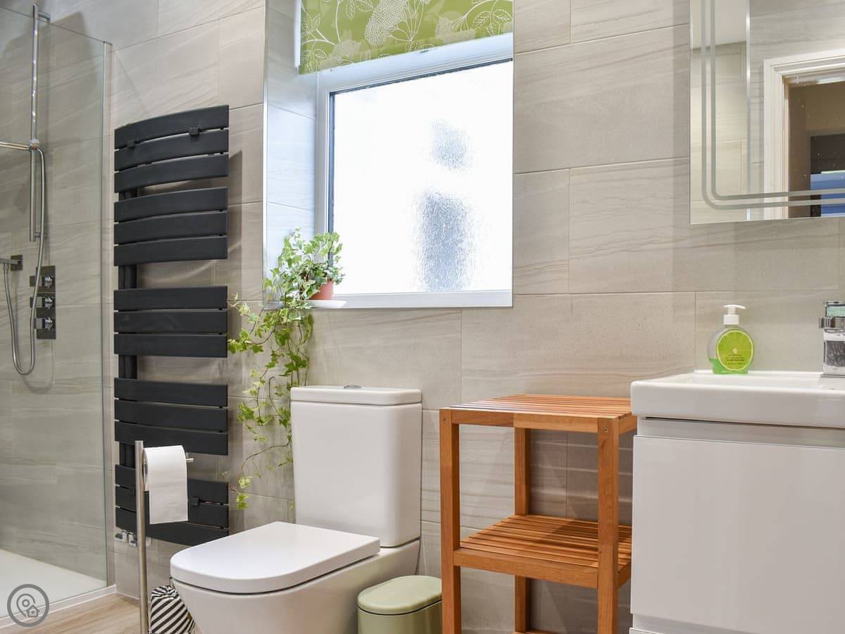 The accommodation is conveniently all on the ground floor, ideal for any guests with limited mobility. There are three bedrooms, a double with en-suite shower room, a further double with garden views and doors leading out to the garden, with two steps down to a small patio with seating, and a twin room. There is a modern bathroom for those who prefer a soak, and a lovely, double walk-in rainfall shower. There is a separate toilet also.