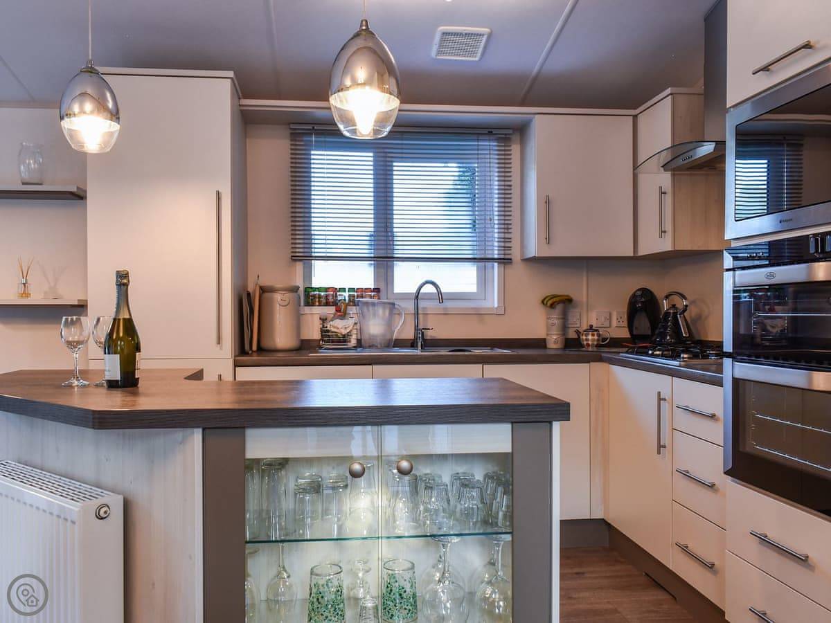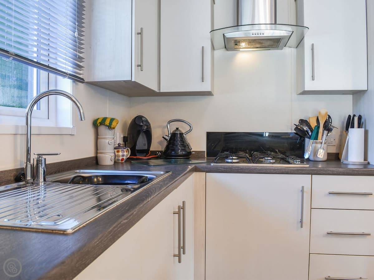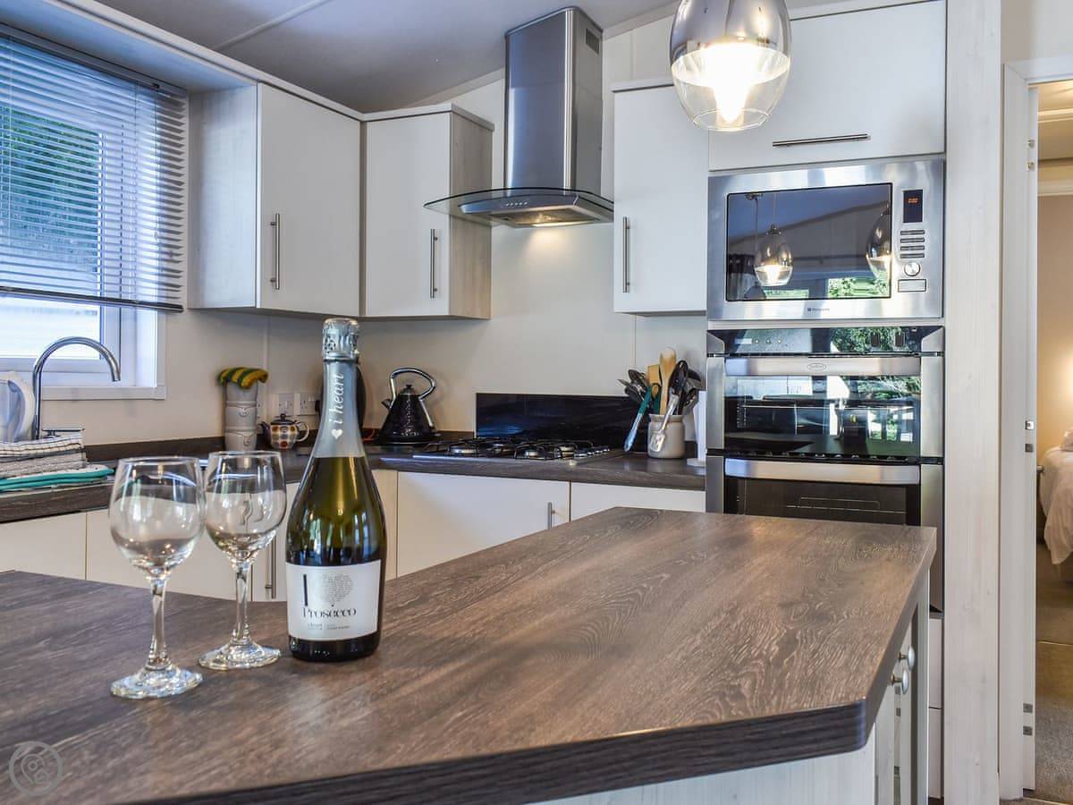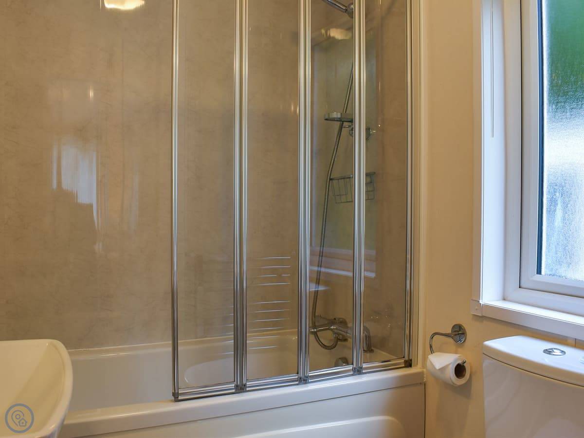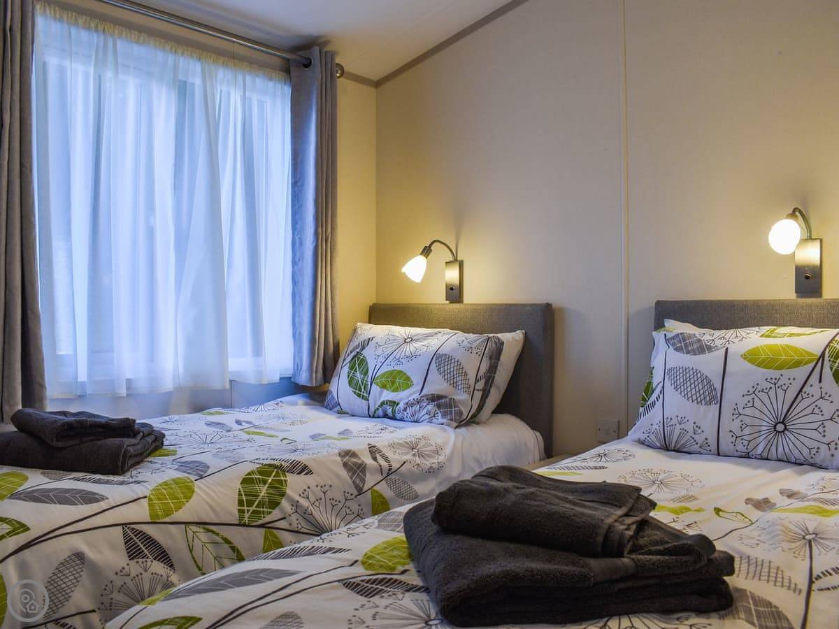 The lodge is detached. There are two bedrooms. One has a kingsize bed and a shower room attached. The other one has two singles. There's also a main bathroom.