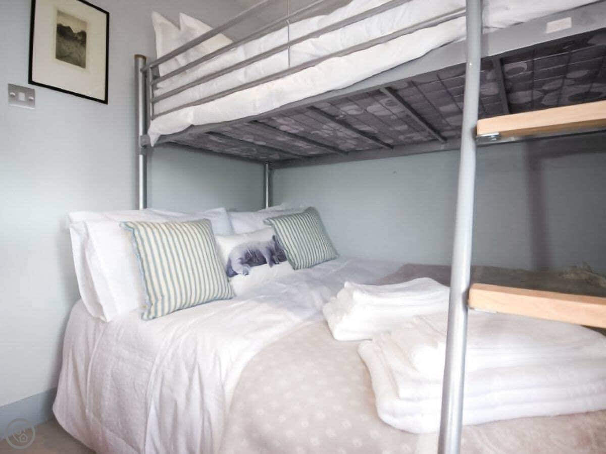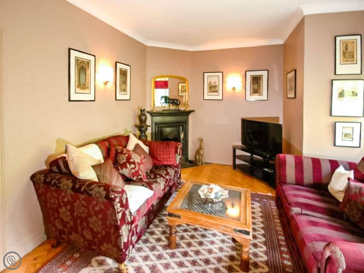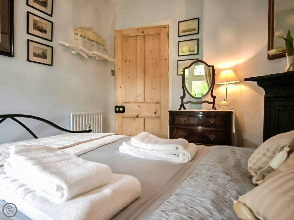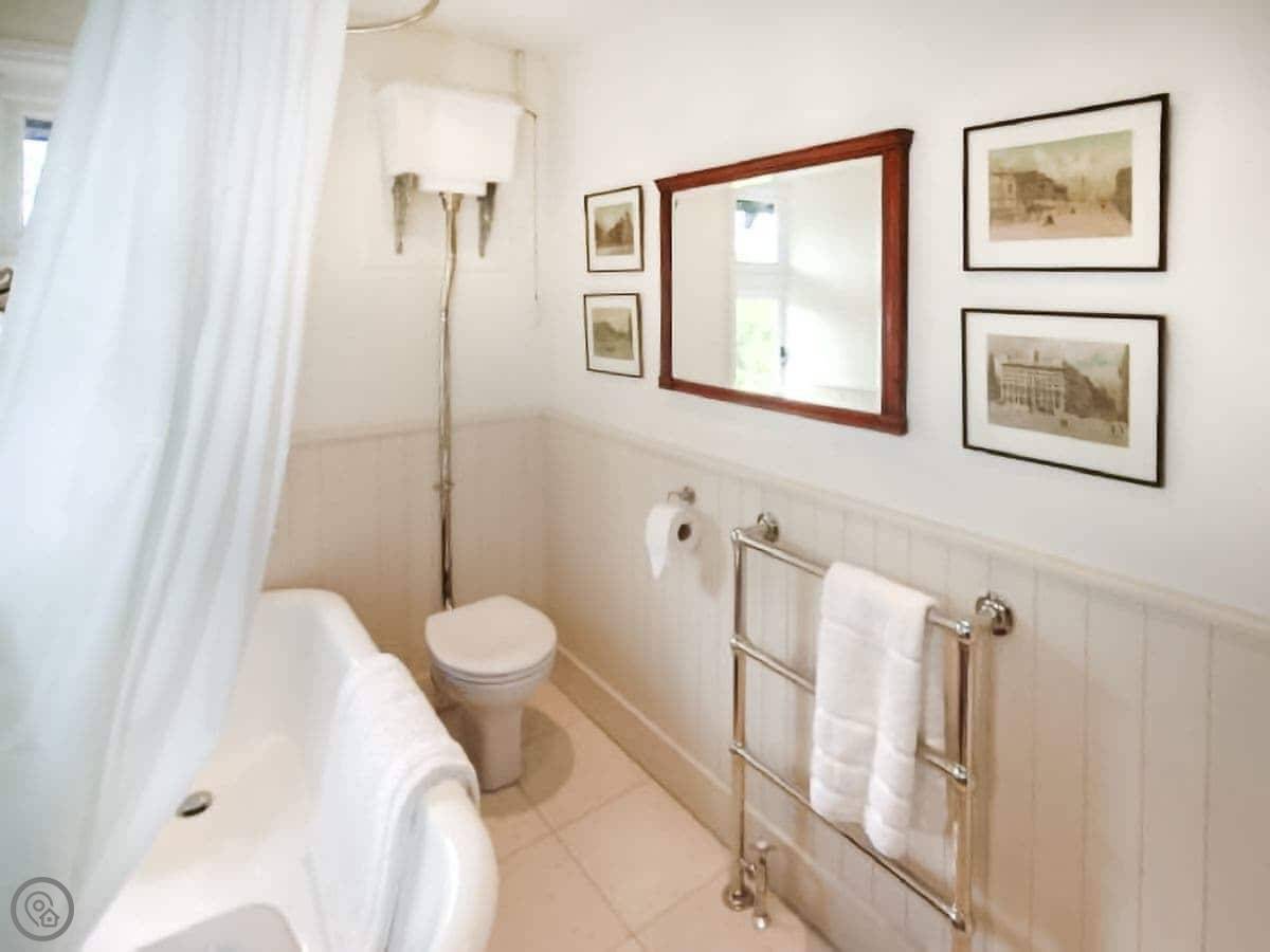 It sleeps six. There are three bedrooms and one bathroom. It has a 4 Star rating. The bathroom has a freestanding bath. The stairs are fine, but they're fairly steep as you'd expect in an older cottage.