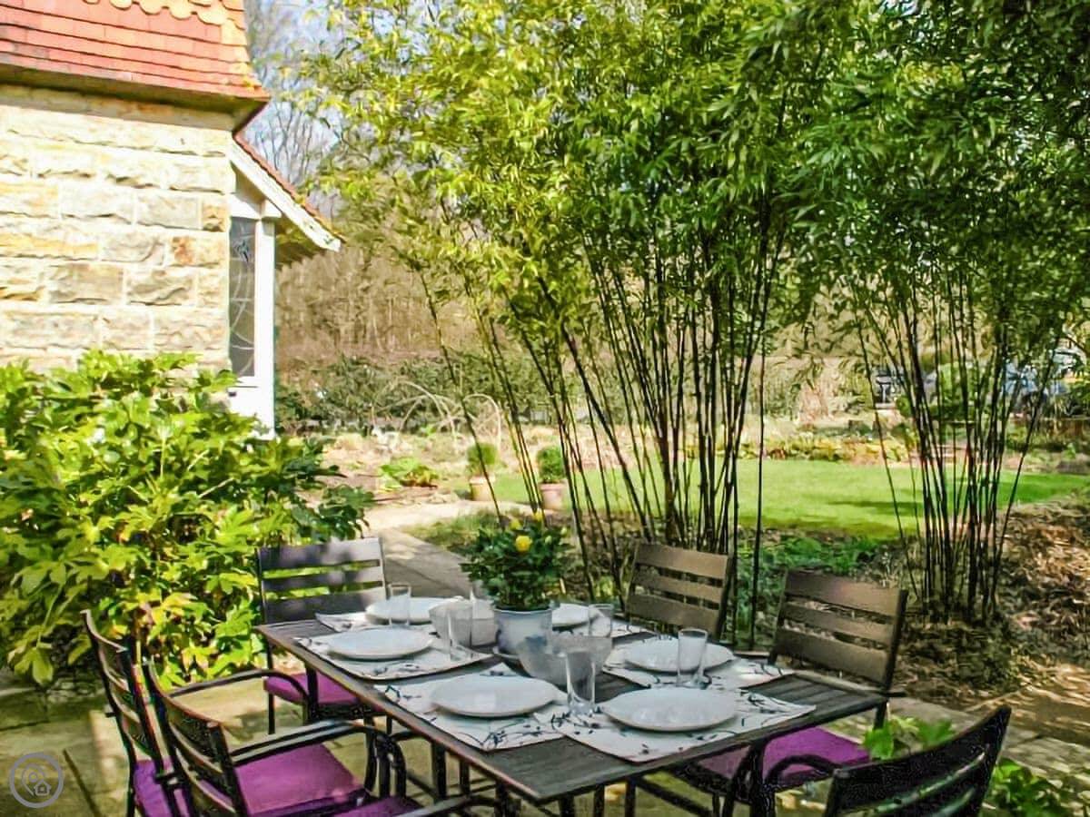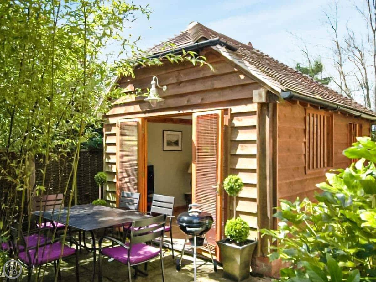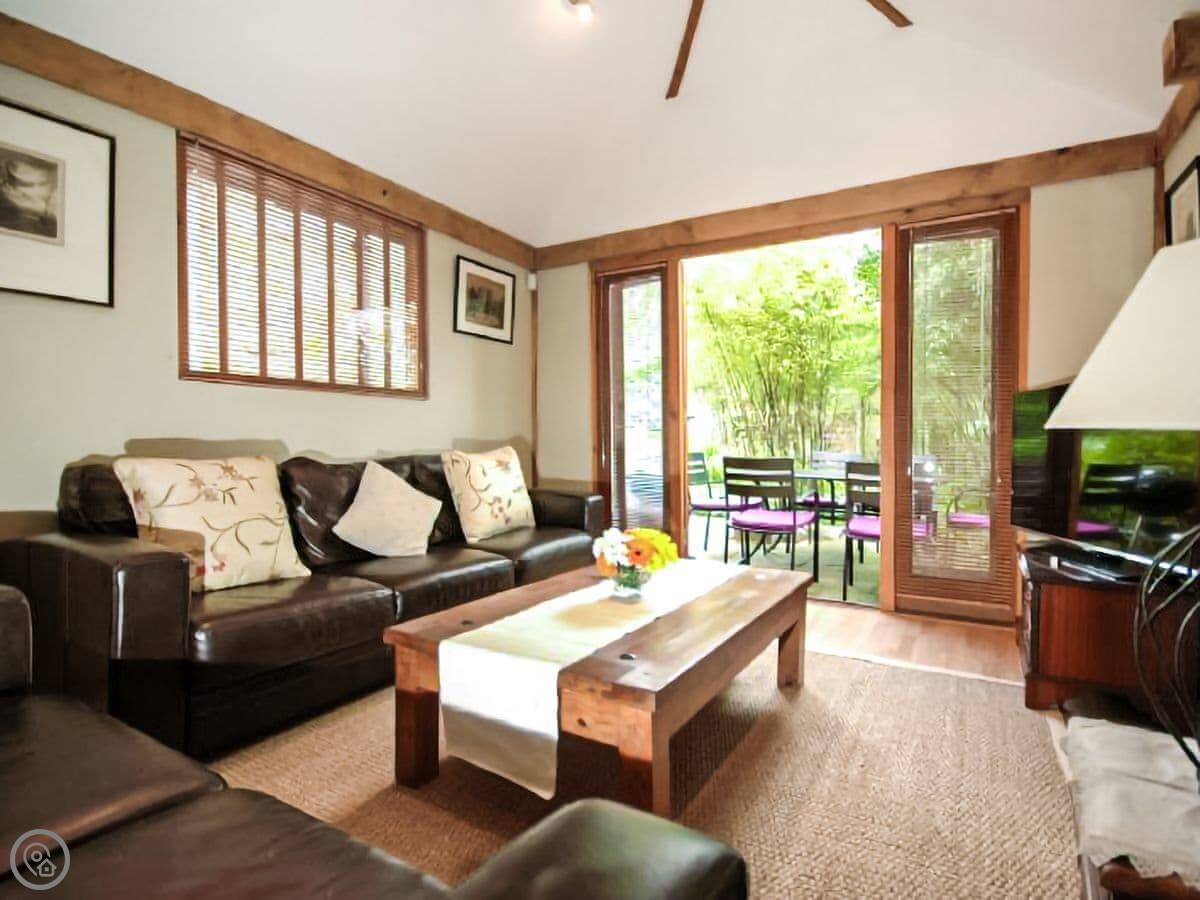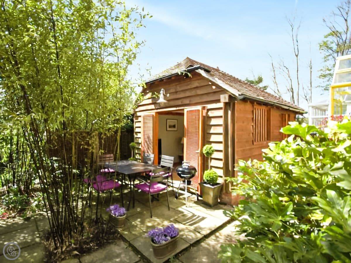 The garden is a proper feature. It's got a mix of cottage plants and some black bamboo. There's also a separate garden room with a TV, which is handy if people want to do different things.