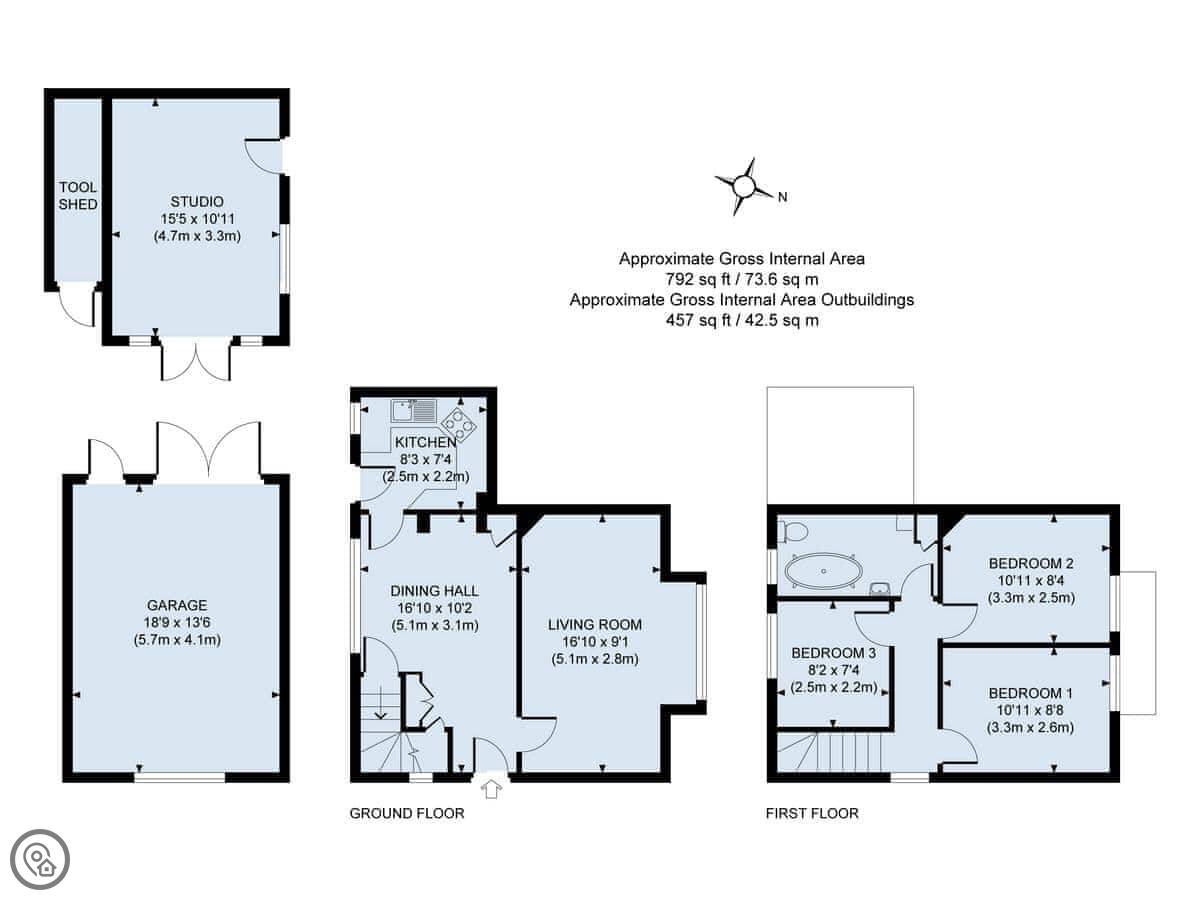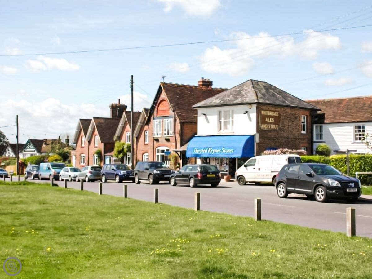 You can walk to Horsted Keynes station, it's about half a mile. That's for the Bluebell Railway steam trains. The village of Horsted Keynes is about two miles away and has two pubs and a shop.