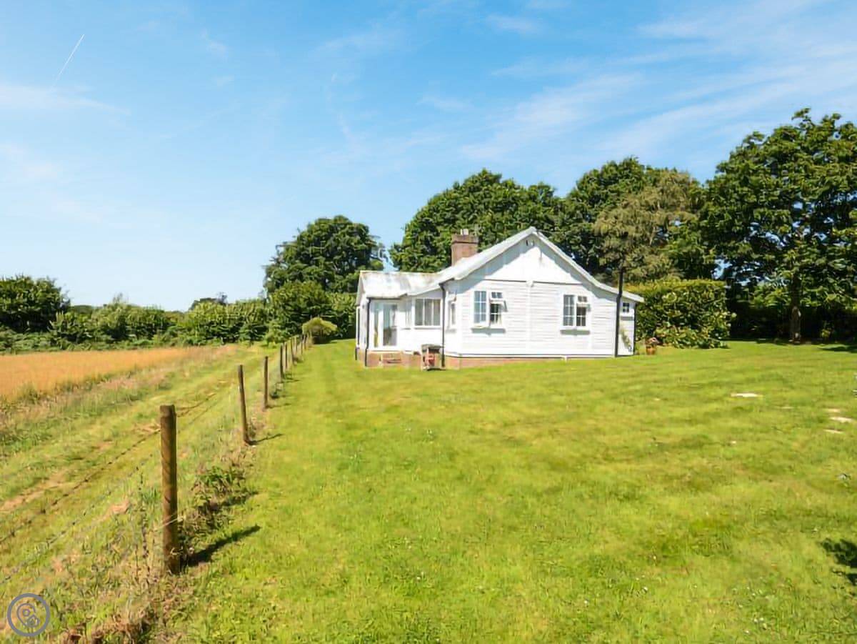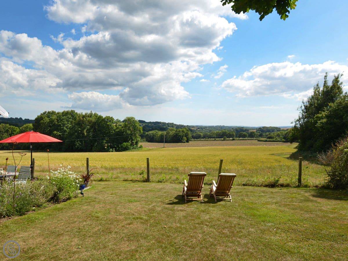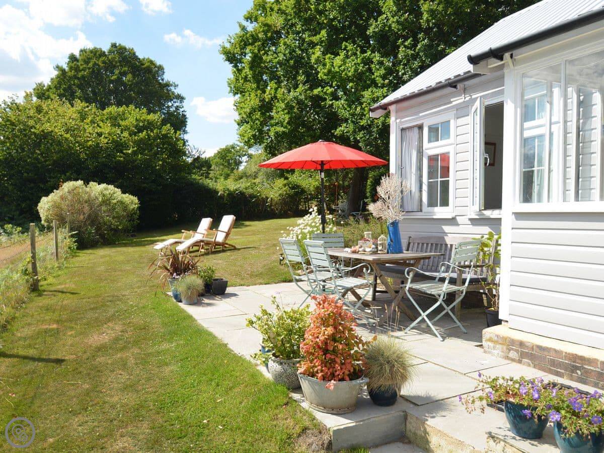 This is Spring Harbour. It's in High Hurstwood, which is a small village near Crowborough and Uckfield. It's a detached cottage on its own. The main thing about it is the view. You look out from the veranda across fields to the South Downs in the distance. It's very quiet.