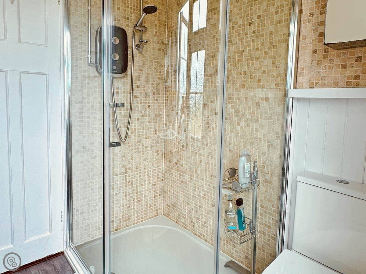 It sleeps six people in four bedrooms. There’s one bathroom with a shower over the bath, and a separate toilet. It's got a four-star rating. That’s because it's well-kept and has everything you need, like a proper kitchen with a dishwasher and washing machine. It’s comfortable, not palatial.