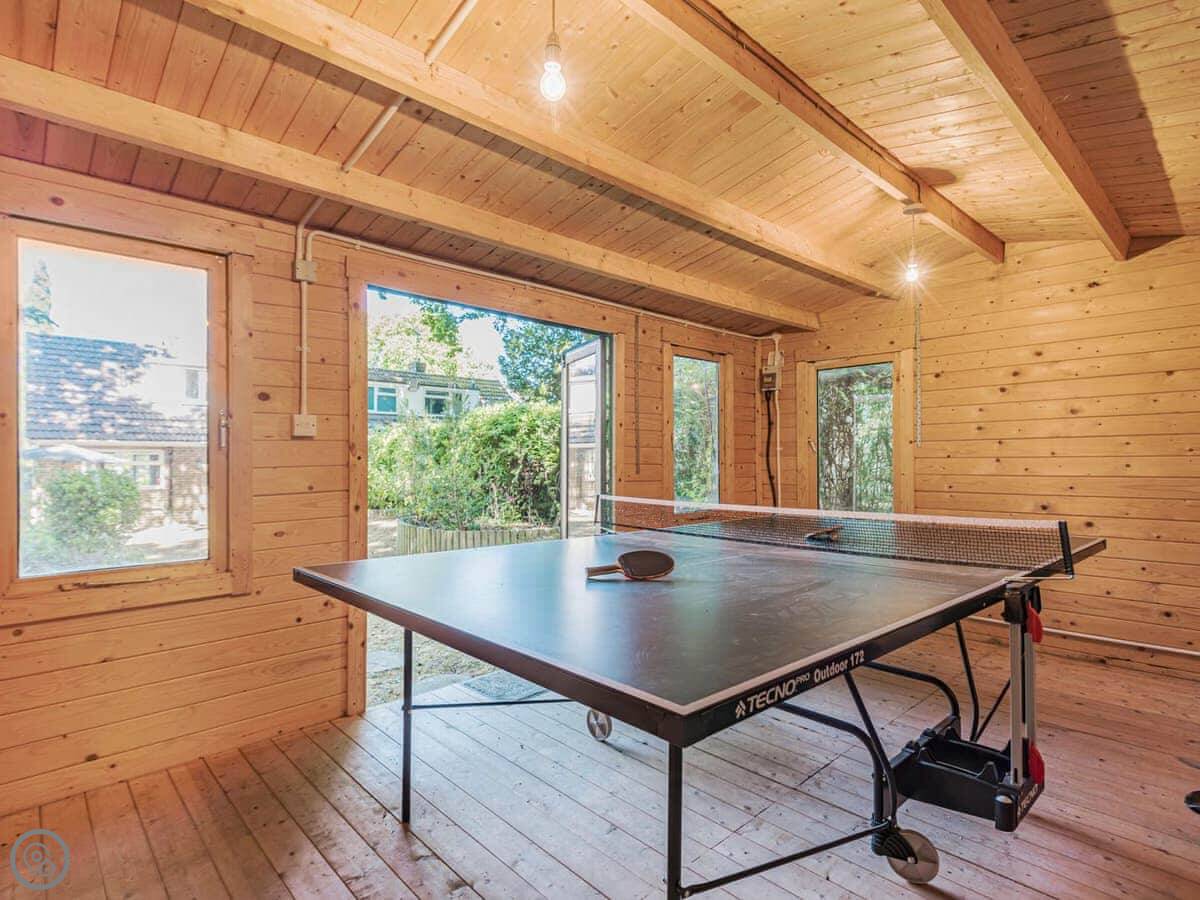 On the ground floor you will find a bright and airy dining area with seating overlooking the front garden area and this then leads to the fully equipped kitchen which has all modern conveniences. The snug lounge area is equipped with entertainment to suit all ages including access to Freeview TV, Netflix and Amazon. The views over to the surrounding countryside from the first floor are delightful. The rear garden is an oasis of tranquillity, surrounded by mature oak trees which offer privacy and seclusion. There is a garden building housing a full size table tennis table which is available throughout the summer months for guests to enjoy.