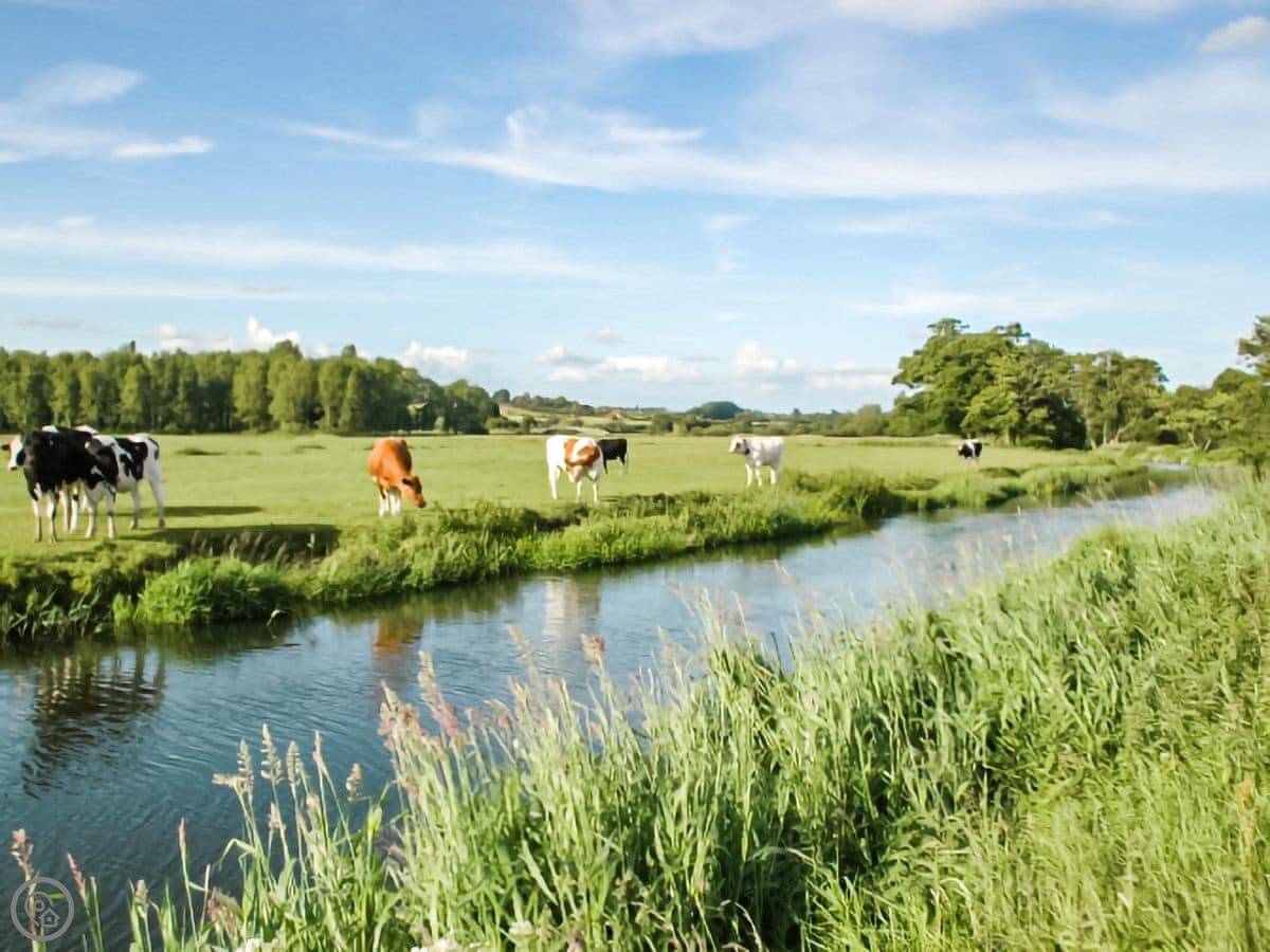 The house faces south, looking over fields and a brook in the valley. When it floods, it becomes a shallow lake and you get wading birds. Other times it’s just meadows. It’s very quiet. There's half a mile of private fishing on the River Rother, which runs next to the house. Footpaths start right from the garden.