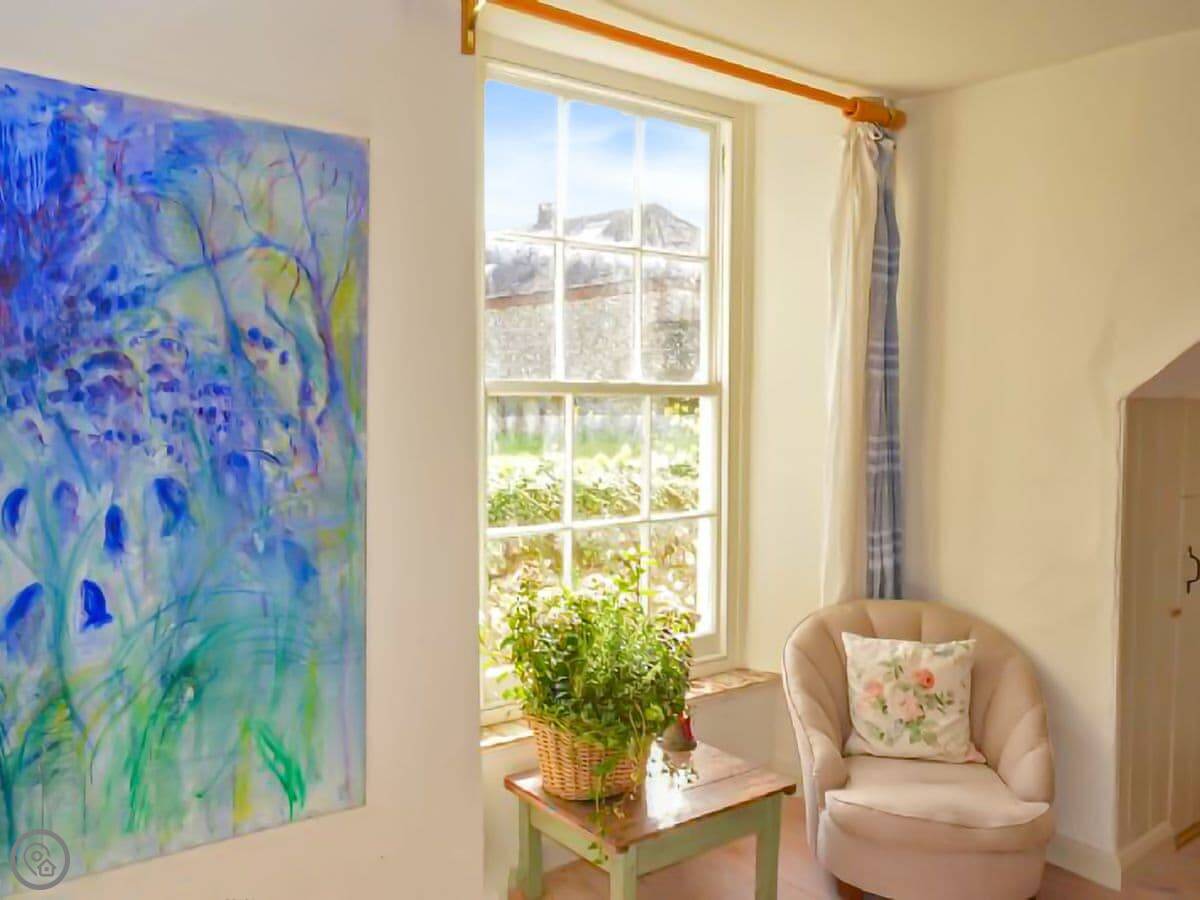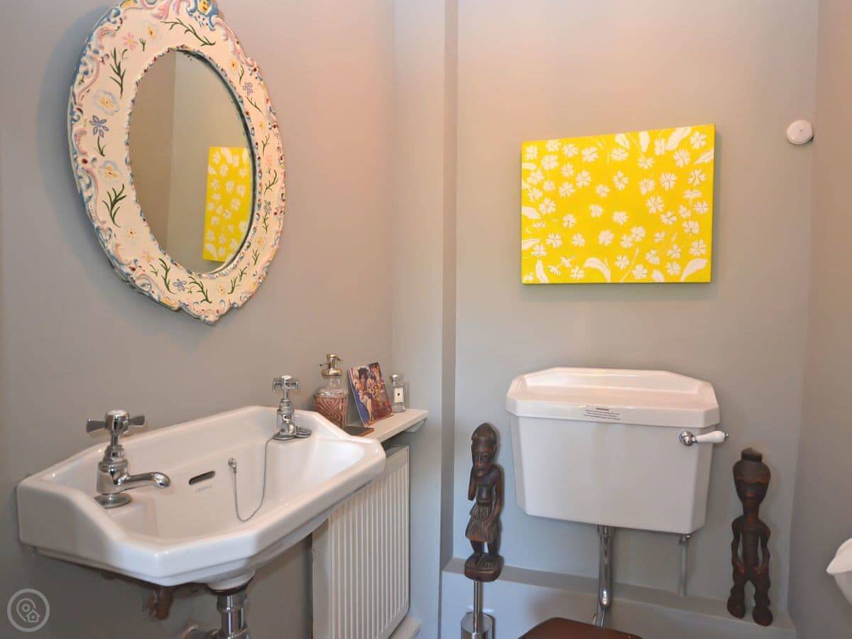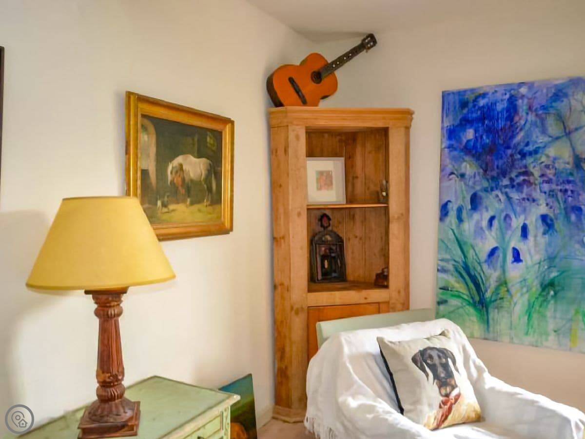 A pleasant walk past the parish church brings you to the front door and on entering you immediately notice the creative peaceful and restorative nature of Church Cottage. The character of the property is abundant with gorgeous wooden flooring and beams throughout the ground floor. The living room is a warm and welcoming space with cosy decoration and traditional furnishings and as an added personal touch the owner’s artwork is displayed throughout adding wonderful colours and visual appeal to the cottage rooms. There is an inglenook fireplace at the heart of the living room with a wood burner at the centre and several cosy reading areas. From the living room, you can enter the charming cottage garden through the patio doors. The warm and inviting kitchen is a great place to relax and with the large rustic table at the centre is the perfect spot to have a hearty country breakfast. There is a gas range available to fulfil all of your cooking needs as well as all other modern conveniences. A useful ground floor cloakroom is available off the entrance hallway. The family bathroom is equipped with a full bath and a telephone shower attachment and there is a separate toilet also on the first floor.