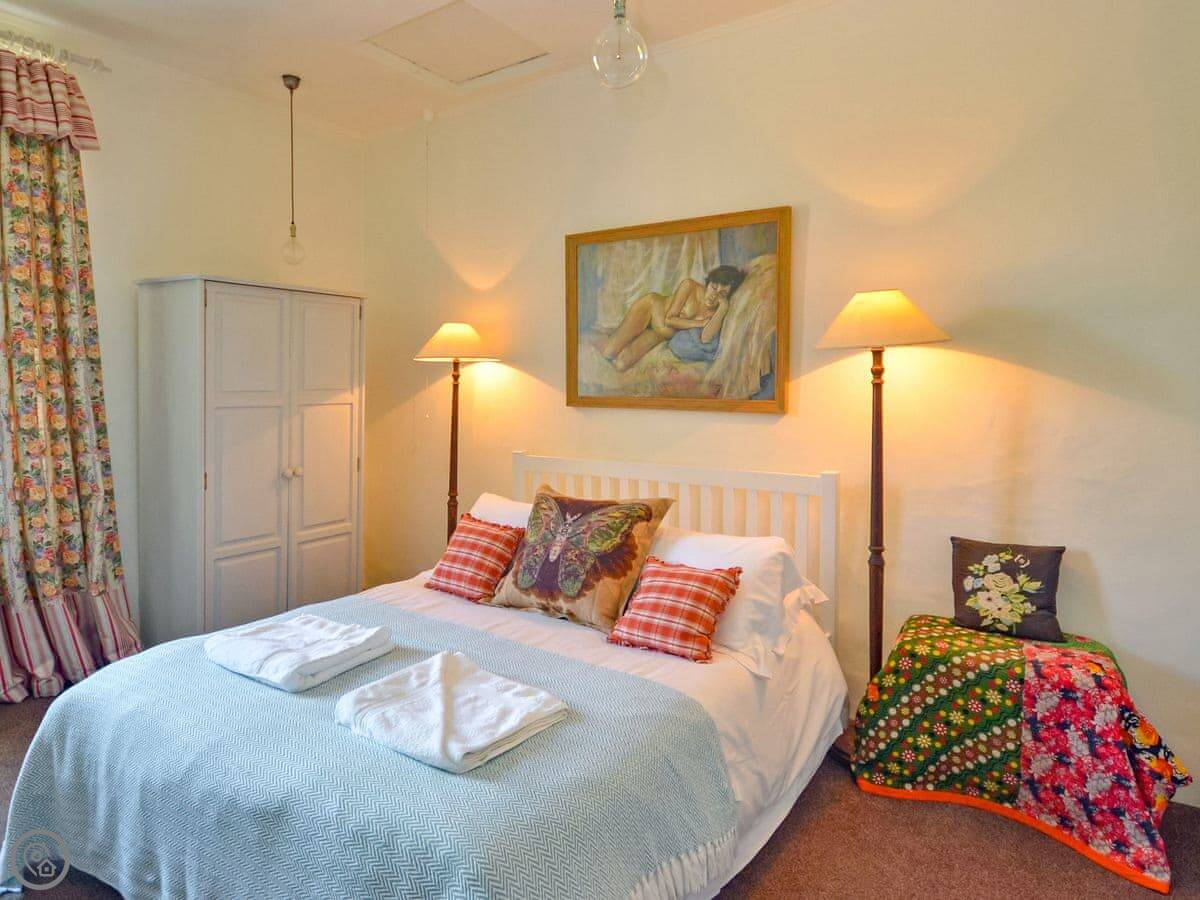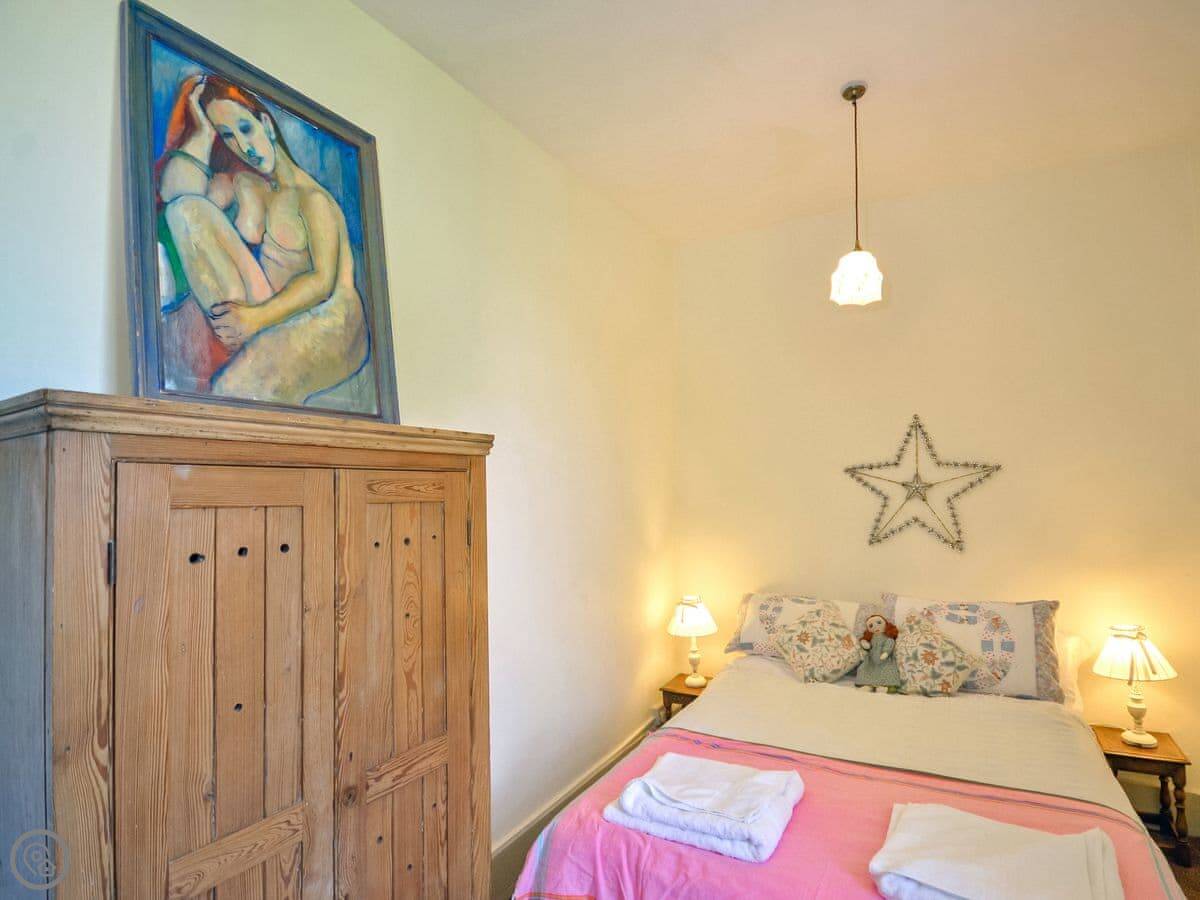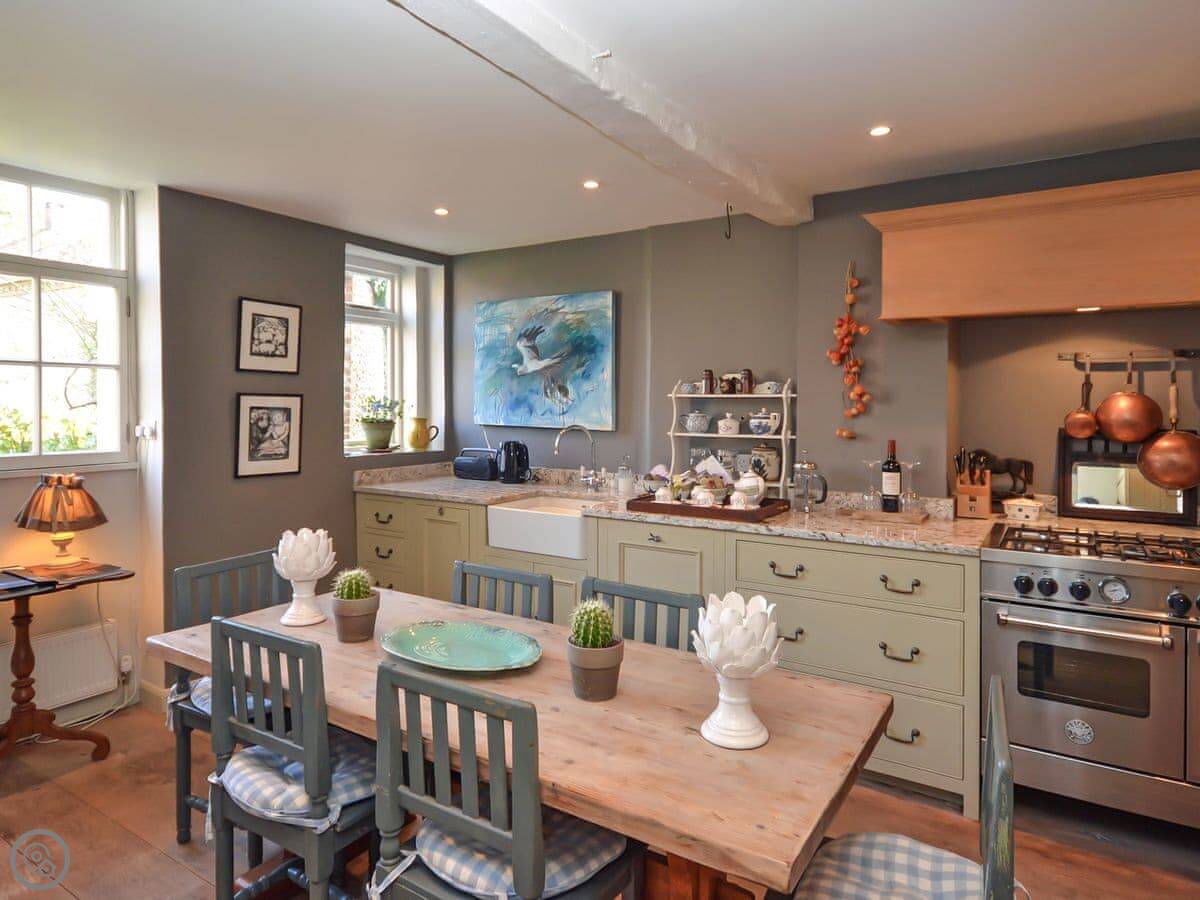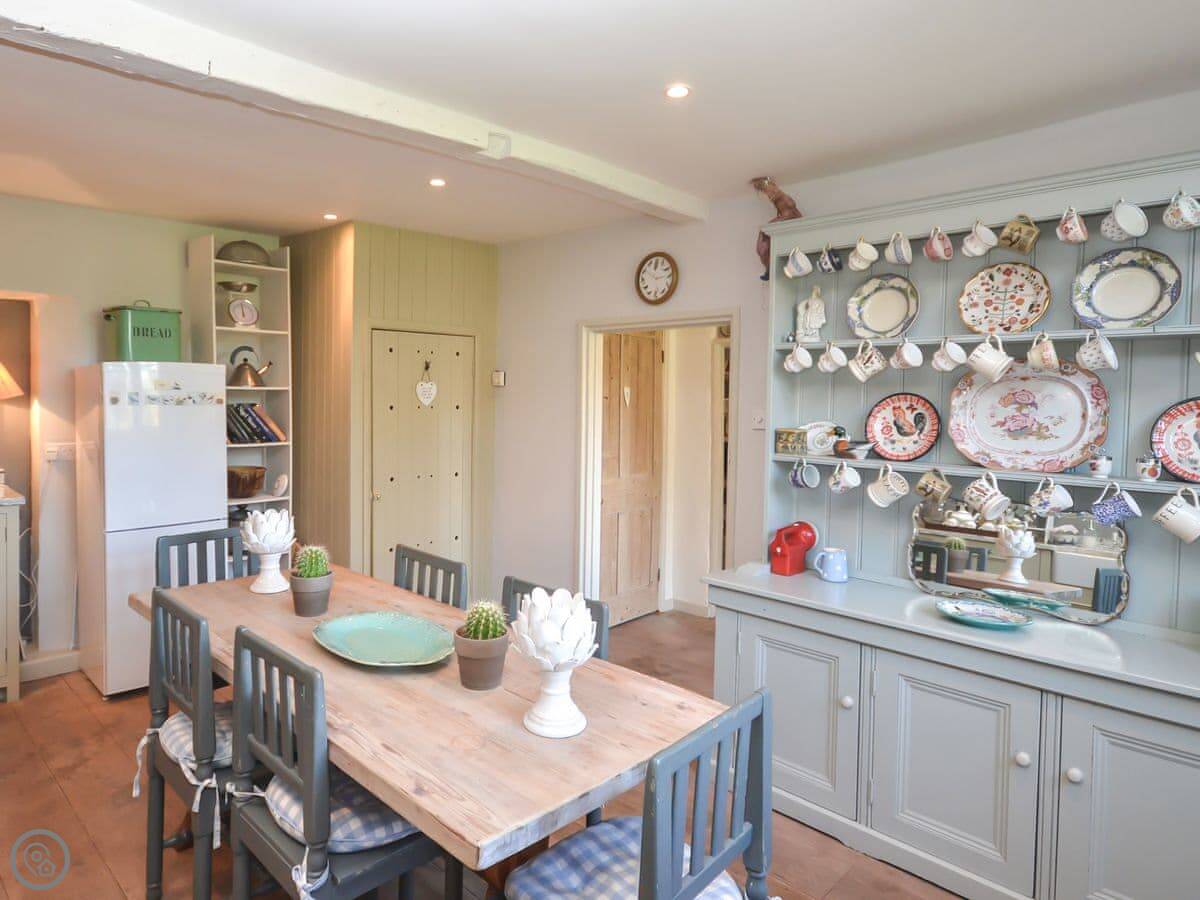 A pleasant walk past the parish church brings you to the front door and on entering you immediately notice the creative peaceful and restorative nature of Church Cottage. The character of the property is abundant with gorgeous wooden flooring and beams throughout the ground floor. The living room is a warm and welcoming space with cosy decoration and traditional furnishings and as an added personal touch the owner’s artwork is displayed throughout adding wonderful colours and visual appeal to the cottage rooms. There is an inglenook fireplace at the heart of the living room with a wood burner at the centre and several cosy reading areas. From the living room, you can enter the charming cottage garden through the patio doors. The warm and inviting kitchen is a great place to relax and with the large rustic table at the centre is the perfect spot to have a hearty country breakfast. There is a gas range available to fulfil all of your cooking needs as well as all other modern conveniences. A useful ground floor cloakroom is available off the entrance hallway. The family bathroom is equipped with a full bath and a telephone shower attachment and there is a separate toilet also on the first floor.