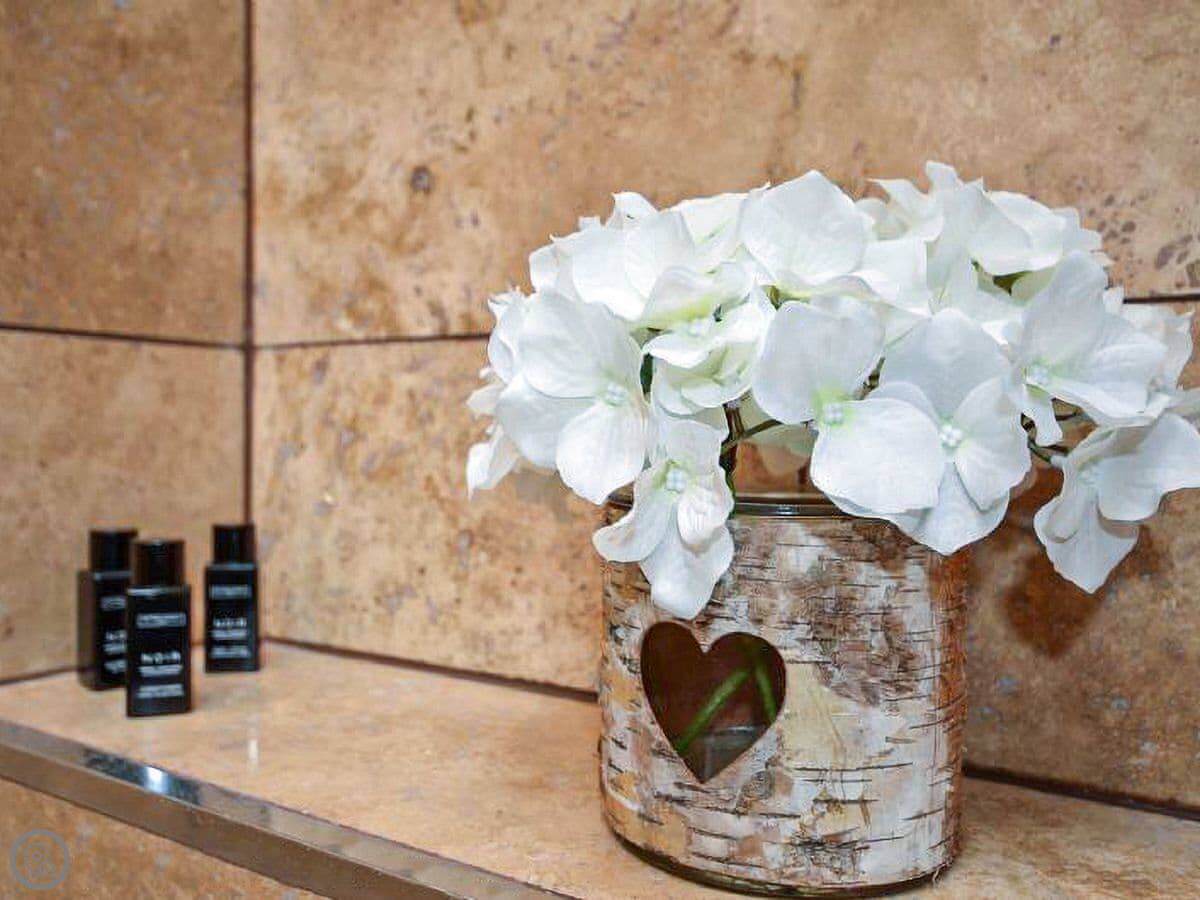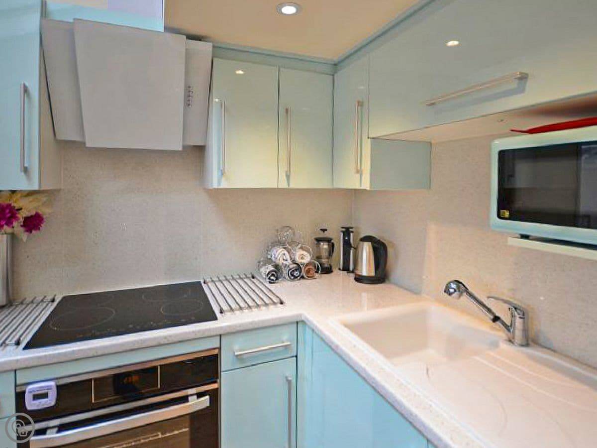 Inside, it has a dishwasher, a fridge-freezer, WiFi, and a TV with Sky and Netflix. All bedding and towels are included. No pets, I'm afraid.