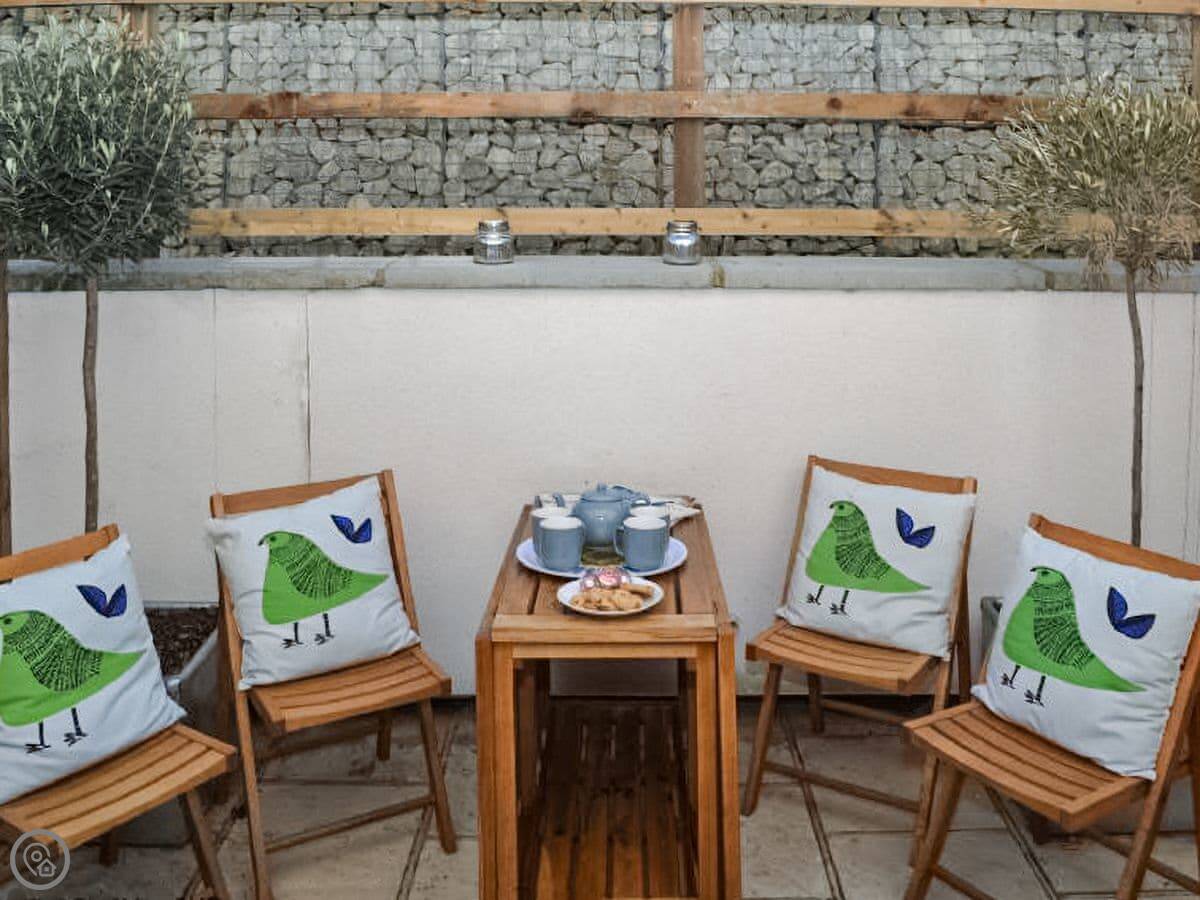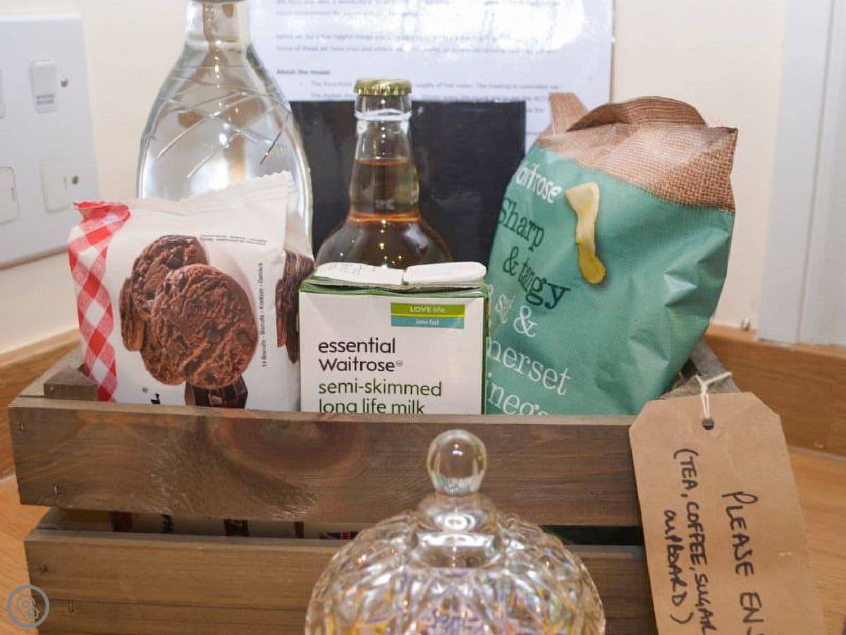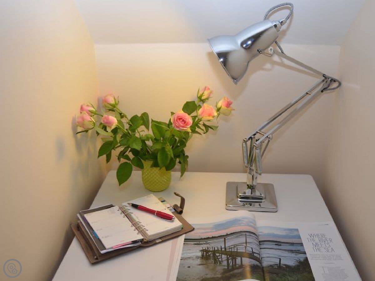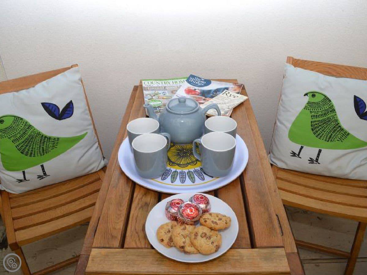 You enter the cottage into a small hallway with stairs leading up to the bedrooms and a door leading to the open plan living area. There is a fully fitted kitchen to the front of the property with everything you could possibly need during your stay including a Nespresso coffee machine. The dining area has table and chairs to comfortably seat four. The living area has a sofa and occasional chair with plenty of cushions and throws to make this a cosy spot to while away an evening. There is Sky TV, DVD player with a selection of DVDs and board games available for when you just want to kick back and relax. French doors lead to an enclosed terrace with table and chairs for al fresco dining or a morning brew, the perfect sun trap. For the summer months a barbecue with charcoal is provided for use on the terrace. The first floor has a double bedroom to the rear and has been tastefully furnished with scatter cushions, pretty throws, digital radio and magazines giving a real feel of luxury. The large family bathroom has a separate shower cubicle, bath and toilet A complimentary toiletries box awaits every stay with locally sourced natural ingredient products from a pretty independent shop in the high street. The second floor has a small work area at the top of the stairs just in case you need to bring work away. The double bedroom on this floor is beautifully furnished and the owner has added a fan just in case the sultry evenings require an extra breeze. The owners have really tried to think of everything to make your stay special, from beach bag to dog basket, bowl and doggie treats. A welcome basket with milk, crisps, biscuits and a locally sourced apple juice and a cupboard stocked with different teas, coffee and even hot chocolate.