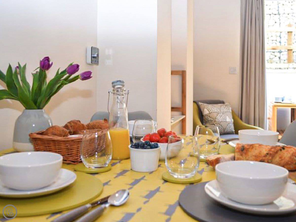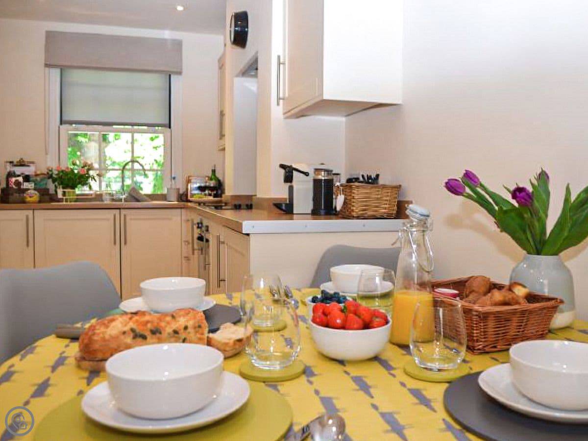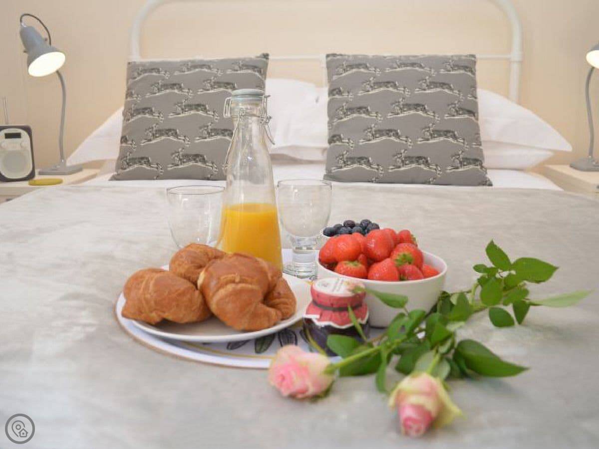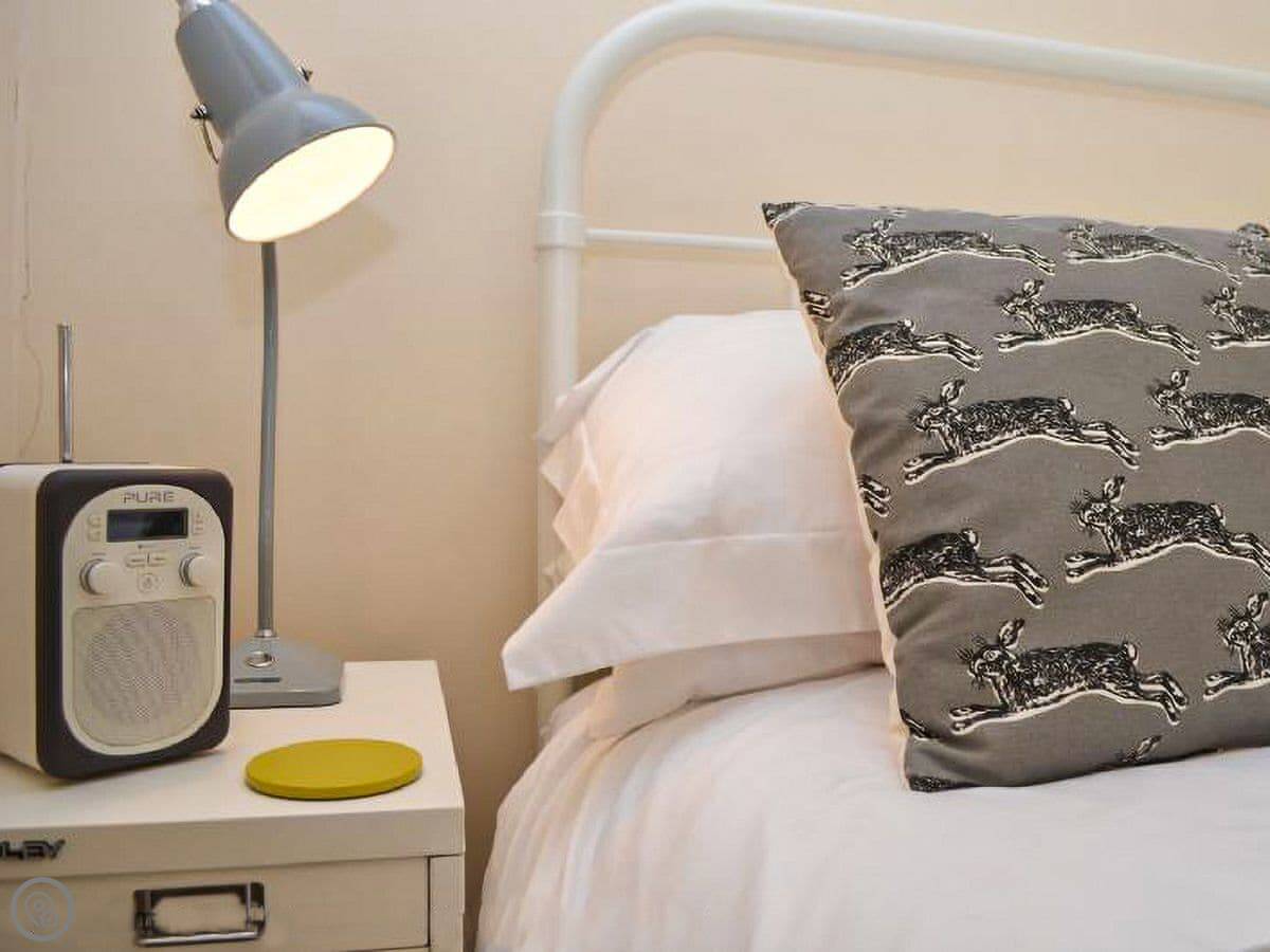 You enter the cottage into a small hallway with stairs leading up to the bedrooms and a door leading to the open plan living area. There is a fully fitted kitchen to the front of the property with everything you could possibly need during your stay including a Nespresso coffee machine. The dining area has table and chairs to comfortably seat four. The living area has a sofa and occasional chair with plenty of cushions and throws to make this a cosy spot to while away an evening. There is Sky TV, DVD player with a selection of DVDs and board games available for when you just want to kick back and relax. French doors lead to an enclosed terrace with table and chairs for al fresco dining or a morning brew, the perfect sun trap. For the summer months a barbecue with charcoal is provided for use on the terrace. The first floor has a double bedroom to the rear and has been tastefully furnished with scatter cushions, pretty throws, digital radio and magazines giving a real feel of luxury. The large family bathroom has a separate shower cubicle, bath and toilet A complimentary toiletries box awaits every stay with locally sourced natural ingredient products from a pretty independent shop in the high street. The second floor has a small work area at the top of the stairs just in case you need to bring work away. The double bedroom on this floor is beautifully furnished and the owner has added a fan just in case the sultry evenings require an extra breeze. The owners have really tried to think of everything to make your stay special, from beach bag to dog basket, bowl and doggie treats. A welcome basket with milk, crisps, biscuits and a locally sourced apple juice and a cupboard stocked with different teas, coffee and even hot chocolate.