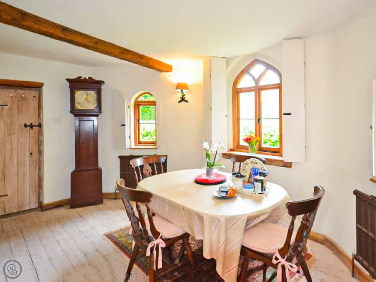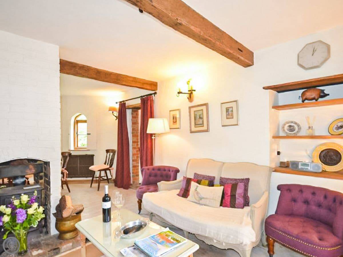 Truffle Cottage is an octagonal cottage with a very interesting history as one of the oldest houses in the area. Once a home for the local truffler who hunted down truffles in the nearby Goodwood forest, it offers a rare holiday experience. Entering through the rear garden area you pass the hanging wisteria and find the entrance to the cottage, benefitting from beams and vaulted ceilings in most rooms. The living area is a wonderfully welcoming space with comfortable seating and a relaxing decor. With a woodburner at the centre it is perfectly equipped to keep you cosy on chillier evenings. The dining area is through from the living room and has some lovely Gothic-style windows overlooking the front garden, along with a wonderful grandfather clock as a feature. The galley-style kitchen is fully equipped for your self catering requirements during your stay. Accessed from the living room is a ground floor single bedroom. The modern family bathroom is also on this floor with a large walk in shower. You ascend to the principal bedroom via a wooden staircase and you are enveloped by light and space. It contains a kingsize bed with comfortable linens and a window with an aspect to the rear of the cottage and has a dressing area. The rear garden has a lovely decked area perfect to enjoy an evening glass of wine or a morning coffee whilst deciding on your days activities and there is a small lawned area to the front of the cottage. There is off street parking available on a small gravelled driveway.