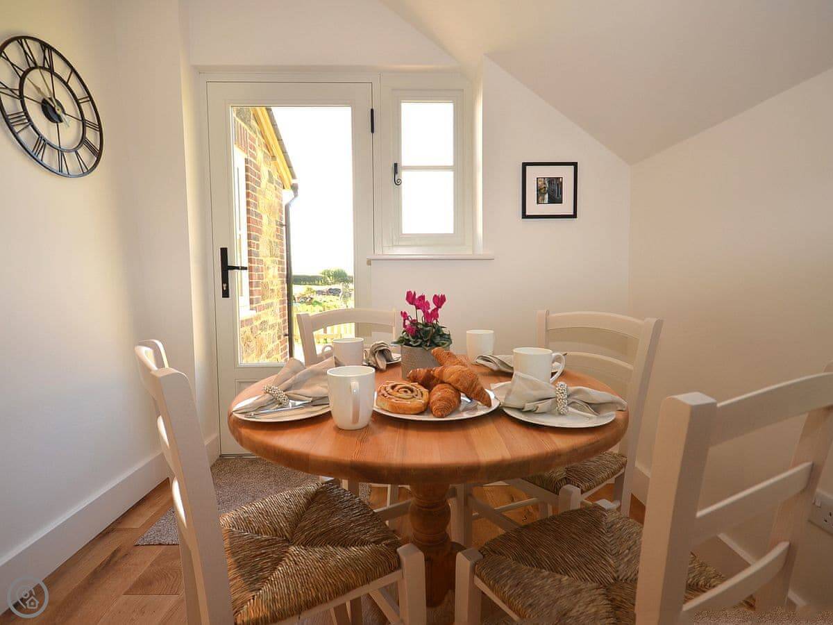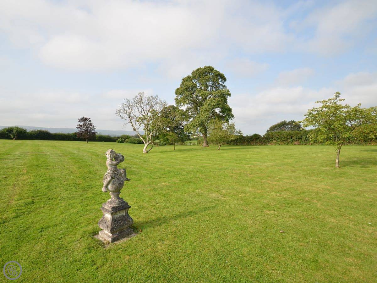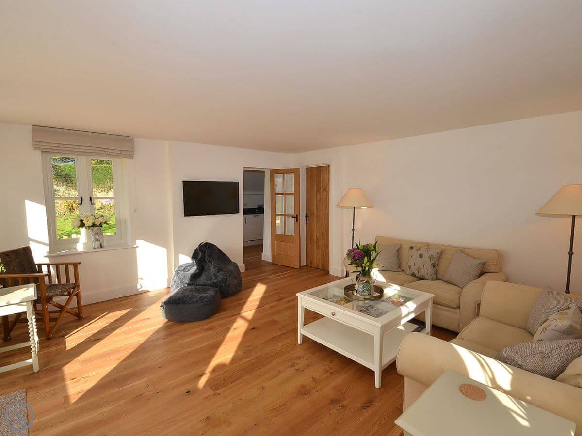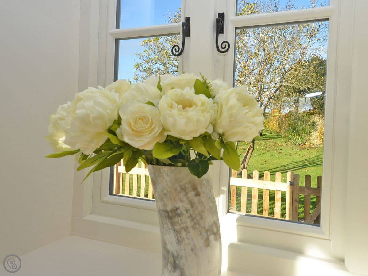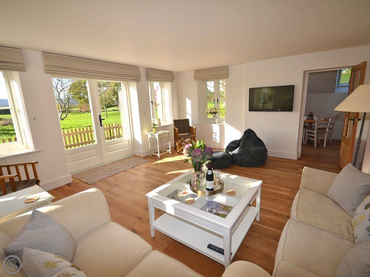 The main thing about the place is the view. The front looks straight out over fields to Petworth House parkland. The back terrace gets the sun and has the same view over the garden to the South Downs. There are sun loungers and a table out there.