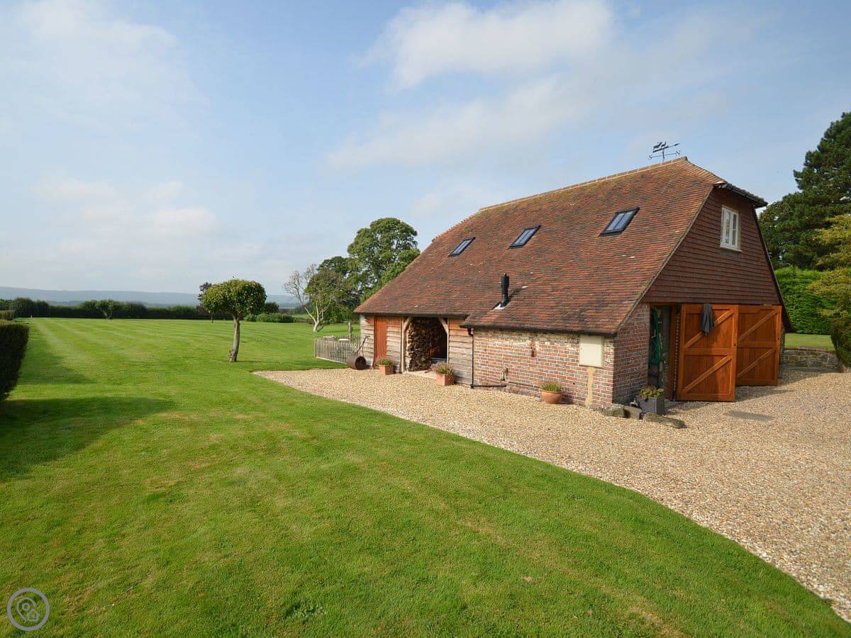 The Barn is here in Tillington. It's a detached barn conversion on its own, not attached to any other buildings. You get a gated gravel drive for parking and the garden to yourselves. It was refurbished recently. The rating is high, but mostly it just means everything is new, works properly, and is clean.