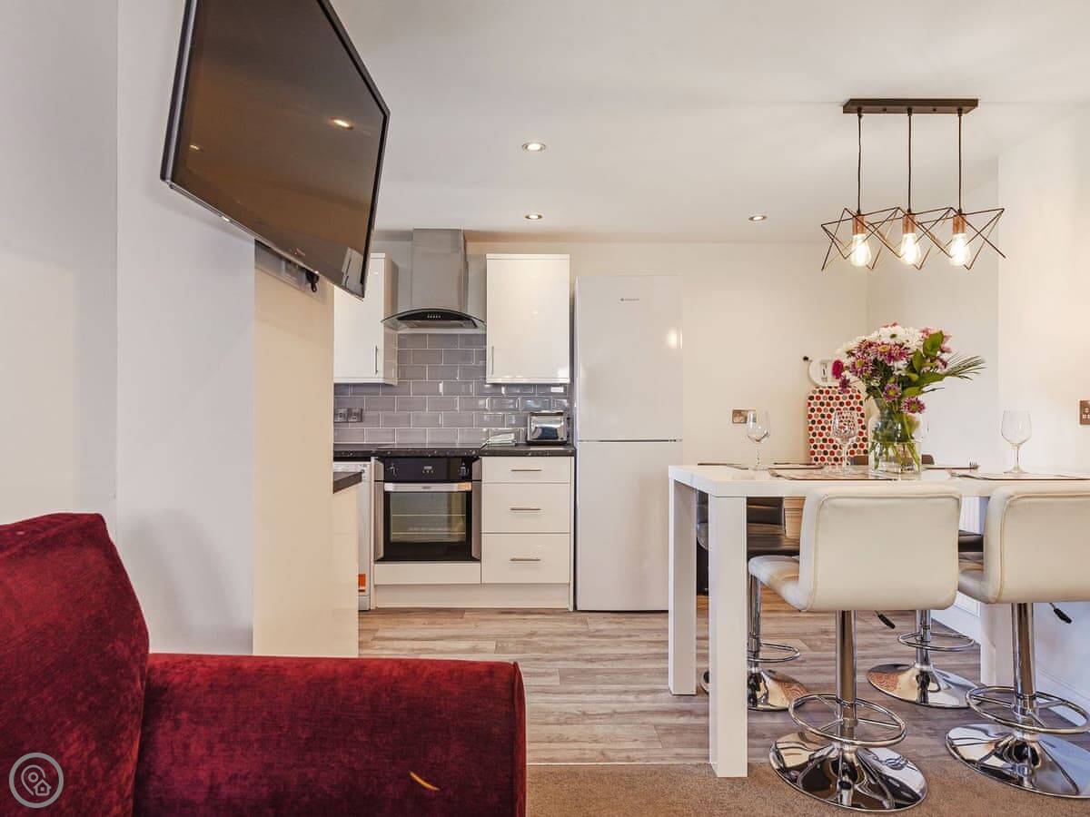 It sleeps four. Two bedrooms, one bathroom. It's got a 4 Star rating, so it's comfortable and clean. There's an open plan living area with a kitchen.