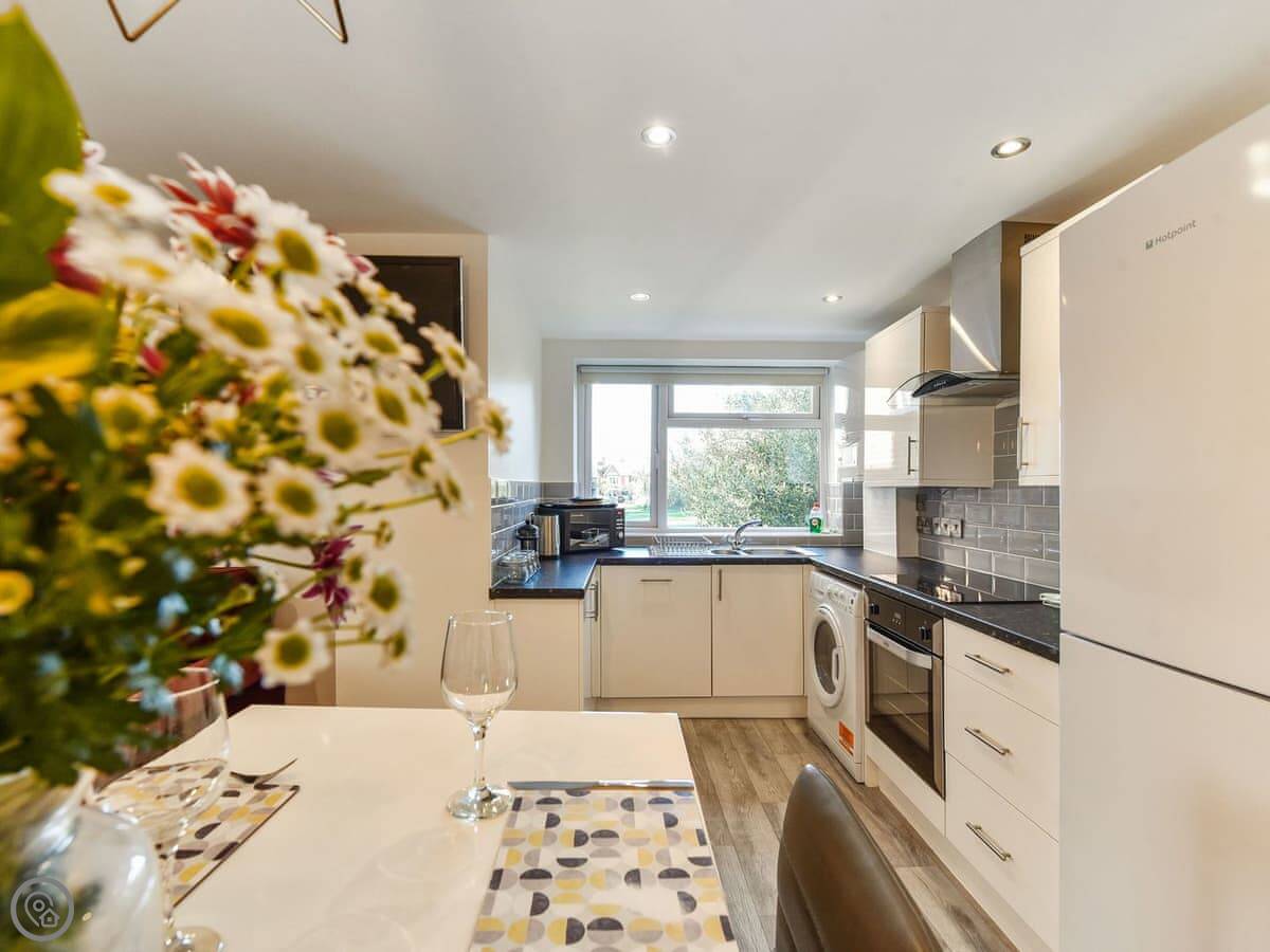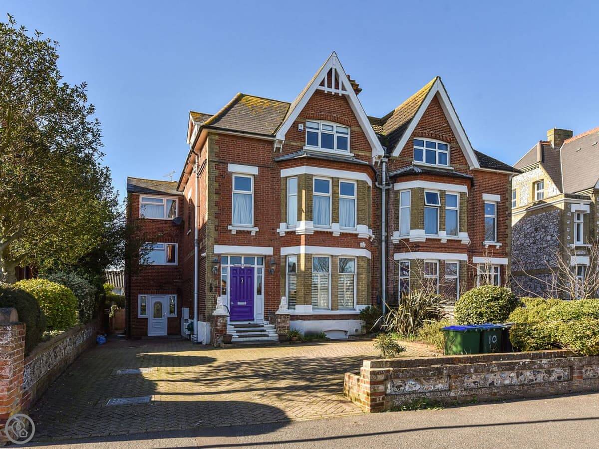 This is Flat 2 in Littlehampton. It's a modern apartment on a residential street. You look out over a green.