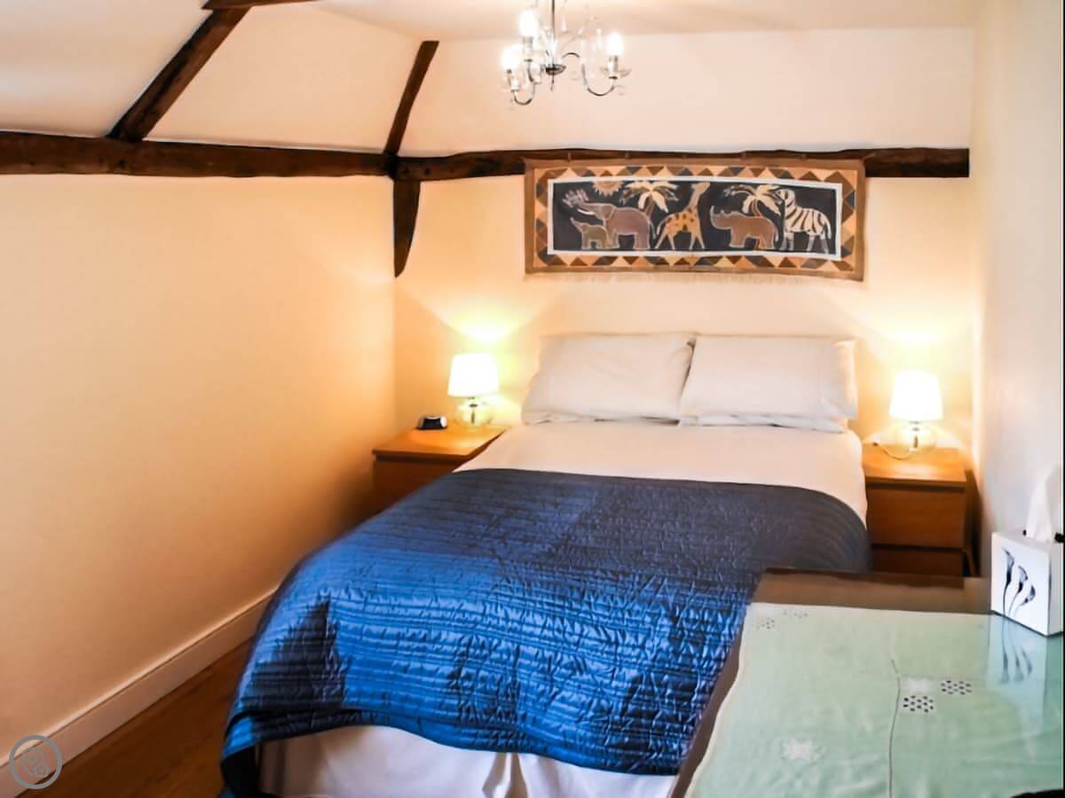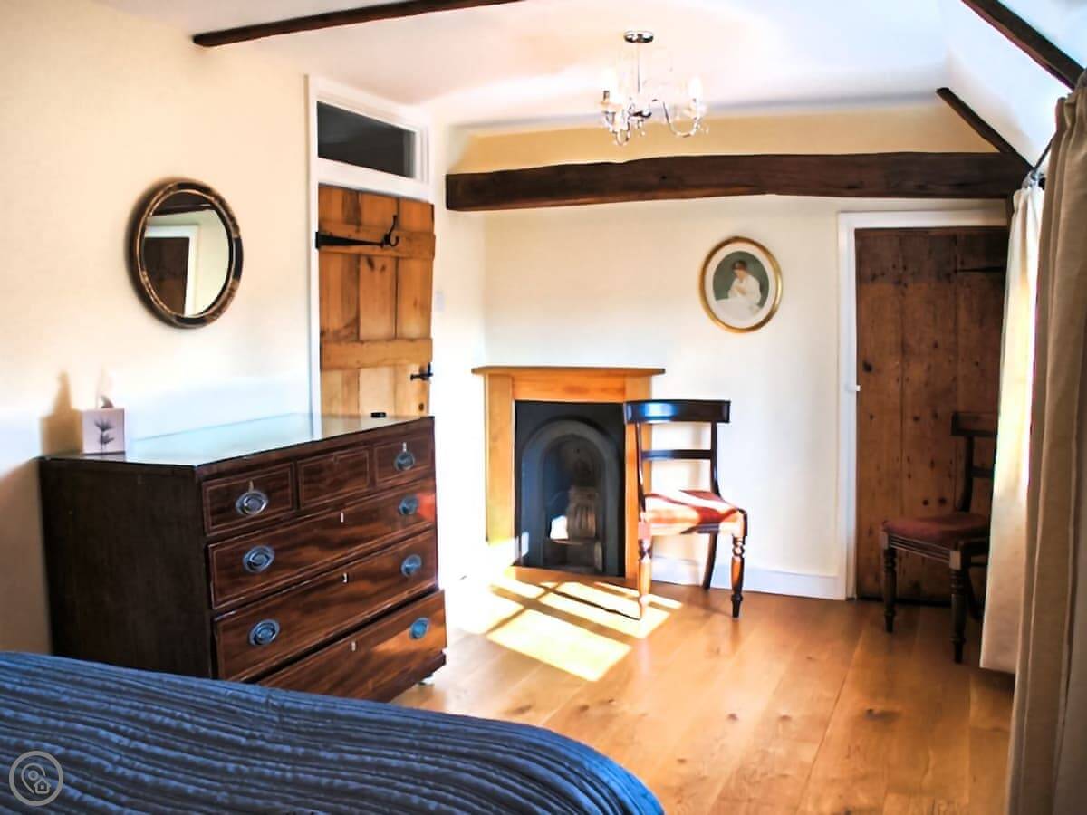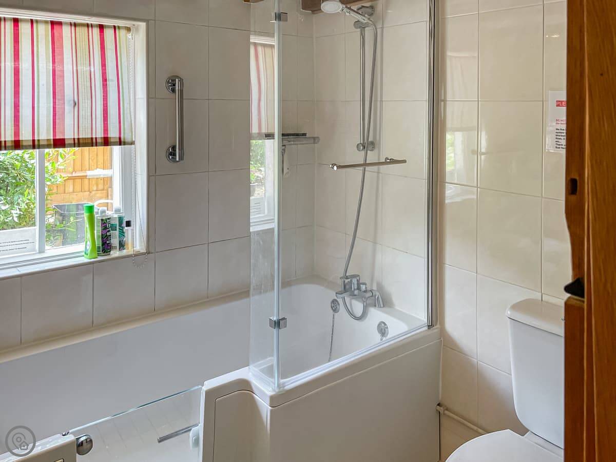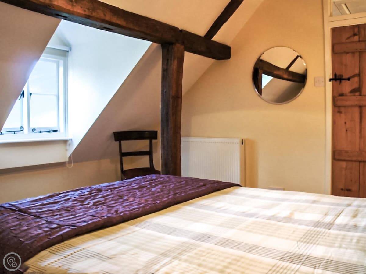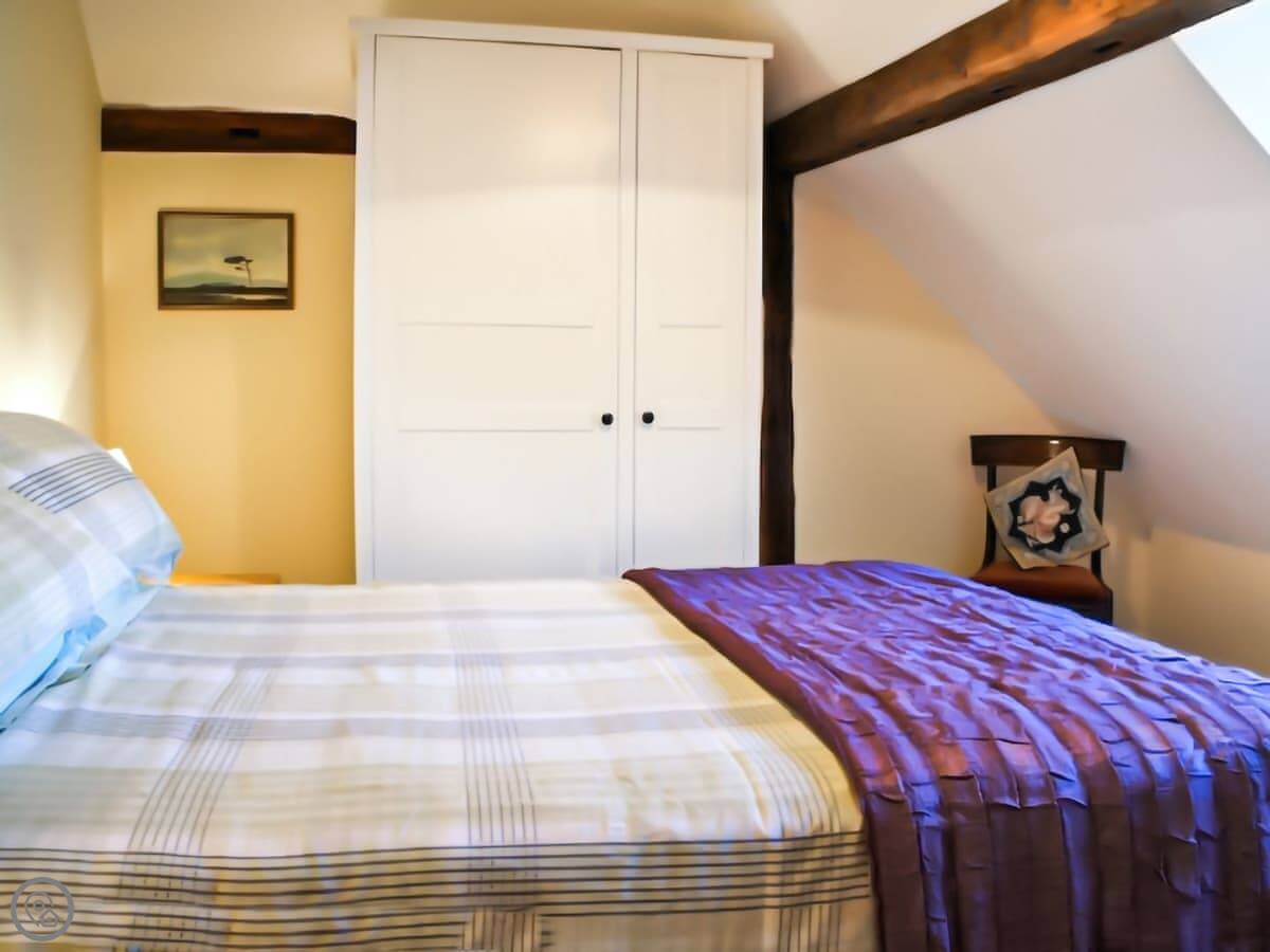 It sleeps four, with two double bedrooms upstairs. The stairs are the old cottage kind, so they're narrow and a bit steep. The bathroom is on the ground floor. It's got a shower over the bath. There's one toilet.