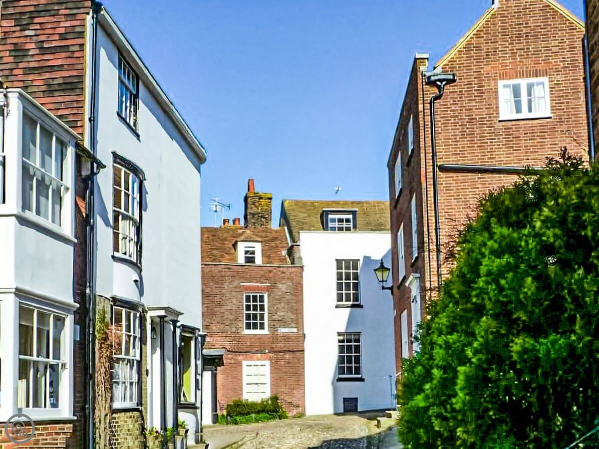 There's a shop and a pub about half a mile walk away. Rye is three miles. It's a medieval town on a hill, full of old buildings. The coast is about eight miles, so you can get to the beach easily.