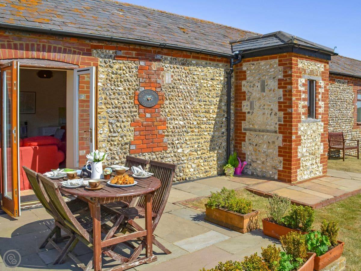 Walnut Tree Cottage is in Patching, a small village near the South Downs. It's a flint cottage, part of the old Duke of Norfolk estate. The views from the garden are good, just fields and the downs.