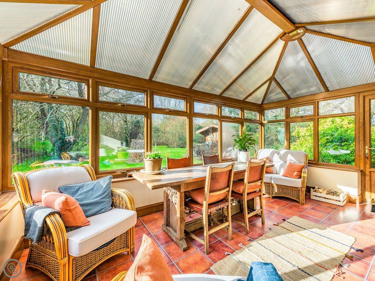 There’s a living room with a wood burner, a kitchen, and a large conservatory which looks west over the garden. It’s a good spot to sit in the evening. My wife Pip has written a cookery book and can cater for you if you arrange it in advance.