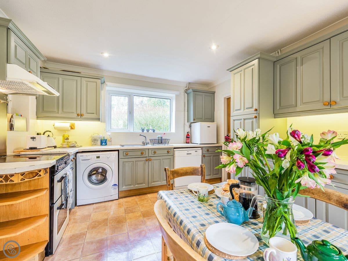For facilities: there’s a washing machine, dishwasher, Wi-Fi, and parking on the drive. Bedding and towels are included. No pets, I’m afraid.