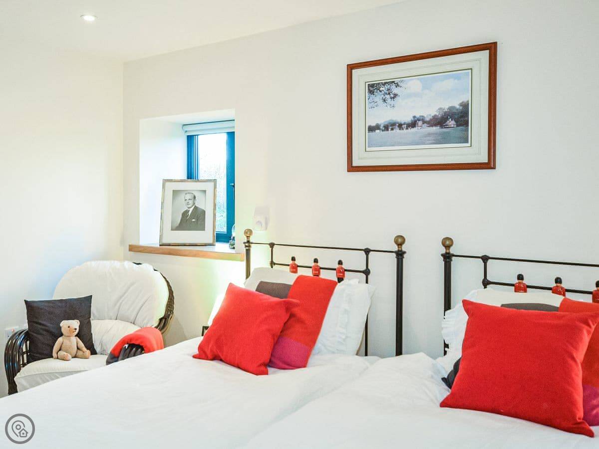 A beautiful luxury barn conversion set in private farmland in the South Downs National Park just minutes from Goodwood and the cathedral city of Chichester. This fabulous Sussex holiday home is ideal for a family gathering or as a base to attend the many events in the area. Set in an elevated position overlooking the rolling farmland it enjoys a wonderfully rural setting yet has easy access to Chichester and the Sussex coastline. The grand living area of Slatey Barn is truly impressive with stunning double height beamed ceilings and triple aspect windows overlooking the surrounding countryside. A large dining table perfect for celebration meals is at its centre and the comfortable lounge area has uninterrupted views of the South Downs. There is underfloor heating throughout the barn which provides a wonderfully warm and welcoming atmosphere. The comprehensively equipped kitchen has a separate larder and a useful additional dining area around the central island. Slatey Barn does not have any internet access as it it so rural. It does however have good 4G mobile reception. Outside Slatey Barn there are two terrace areas and a barbecue is available in the summer months so that you can enjoy the full long days of sunshine. Sit and enjoy watch the activities of the surrounding country life or just soak in the wonderful scenery. There is a covered car area for up to three cars and a large gravelled driveway if more space is required.