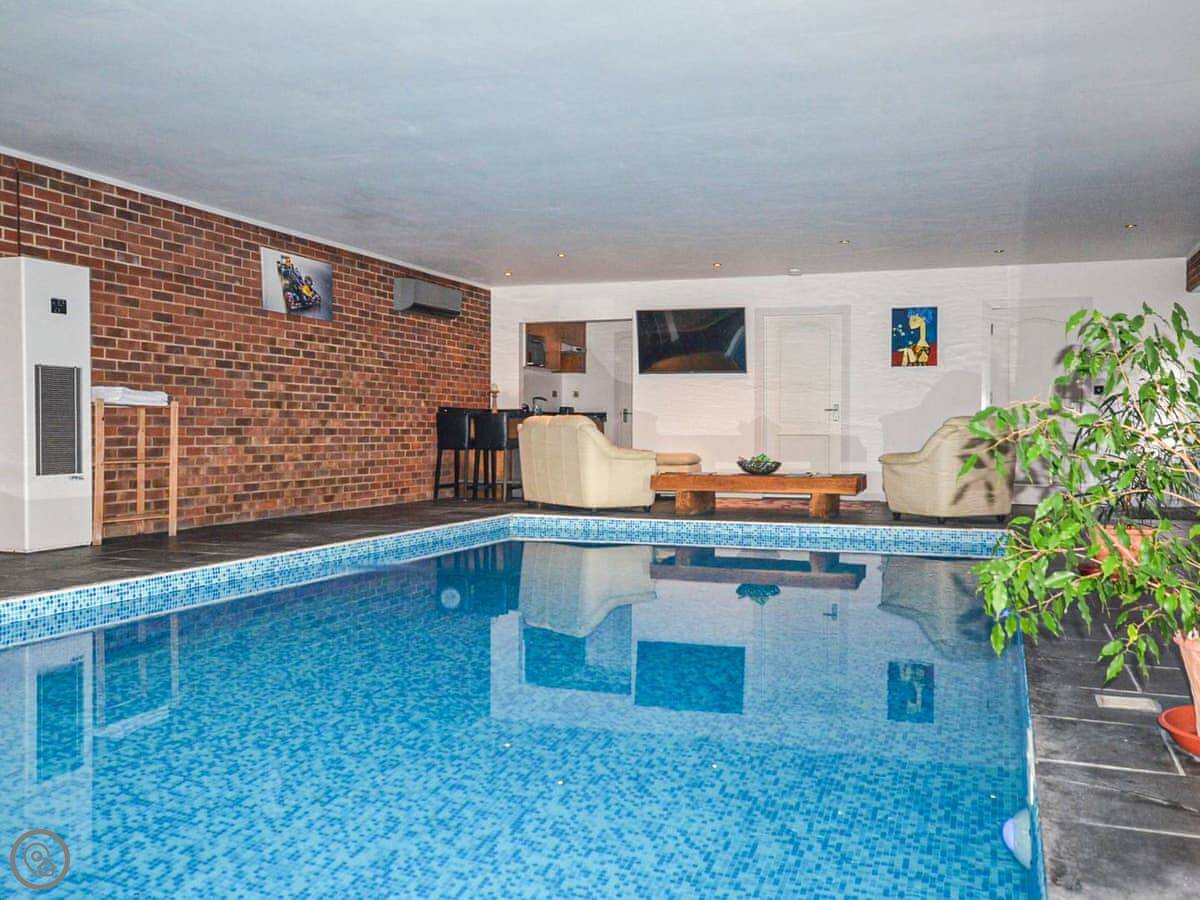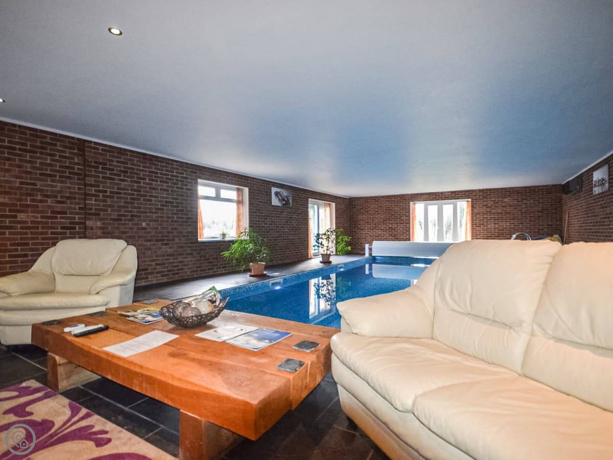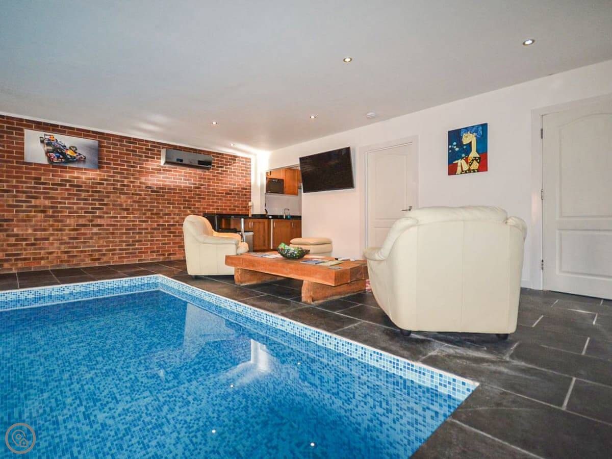 The main thing is the pool. It's indoors, lined with mosaic tiles. The whole cottage is built around it. The floor around it is slate and the kitchen has granite tops. It's kept at a steady temperature so it's comfortable anytime. It's a four-star rating. It's set up for short breaks, so bookings are for a maximum of six nights.
