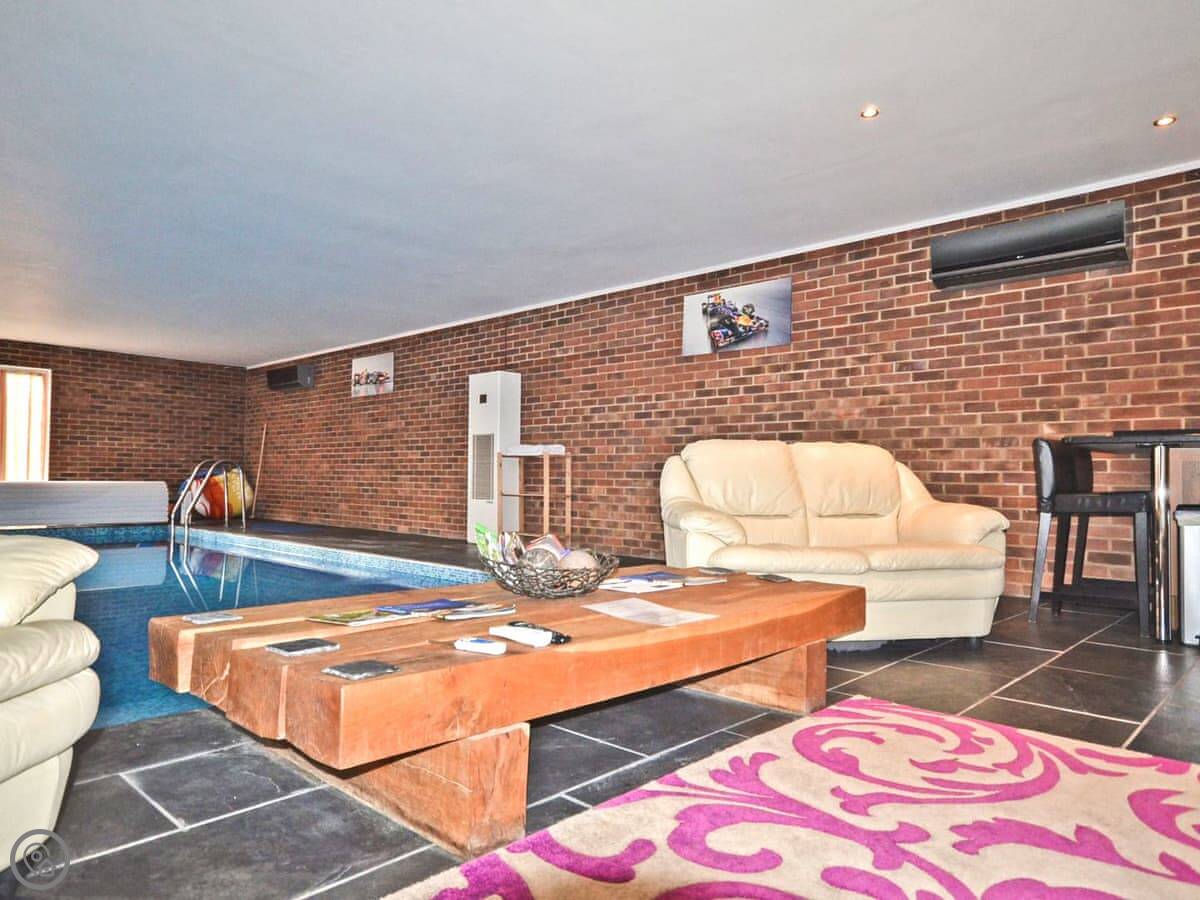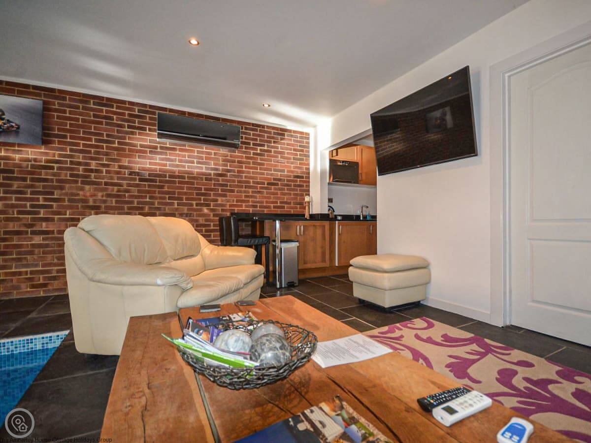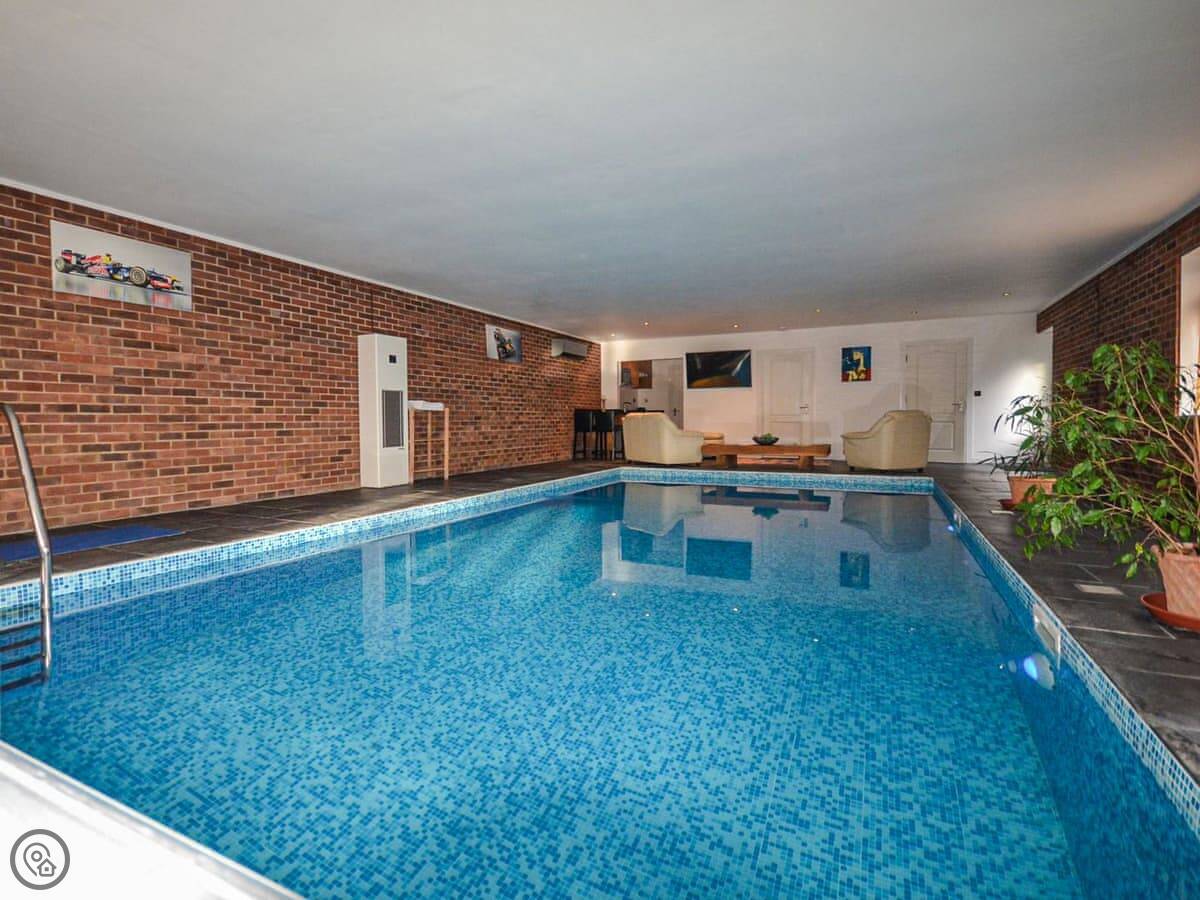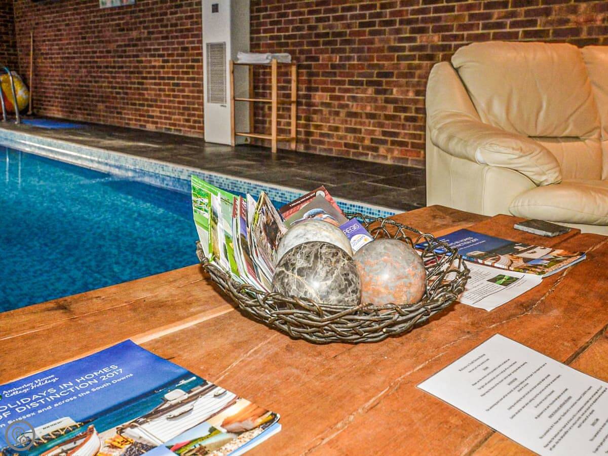 The main thing is the pool. It's indoors, lined with mosaic tiles. The whole cottage is built around it. The floor around it is slate and the kitchen has granite tops. It's kept at a steady temperature so it's comfortable anytime. It's a four-star rating. It's set up for short breaks, so bookings are for a maximum of six nights.