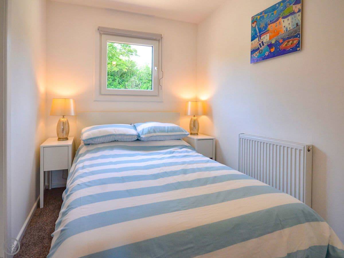 It sleeps four. Two bedrooms. One has a double bed with its own shower room. The other has bunk beds, and there's a separate family shower room too. It's got a 4 Star rating. That means it's modern, clean and functional. It's not a luxury lodge, but it's comfortable and everything works.