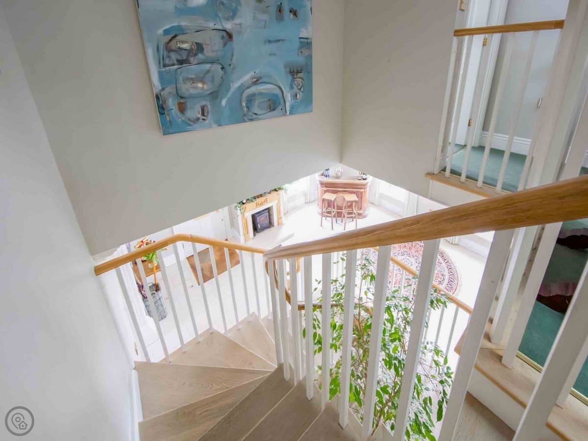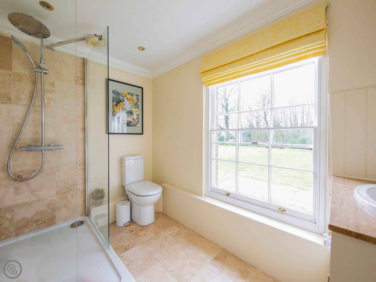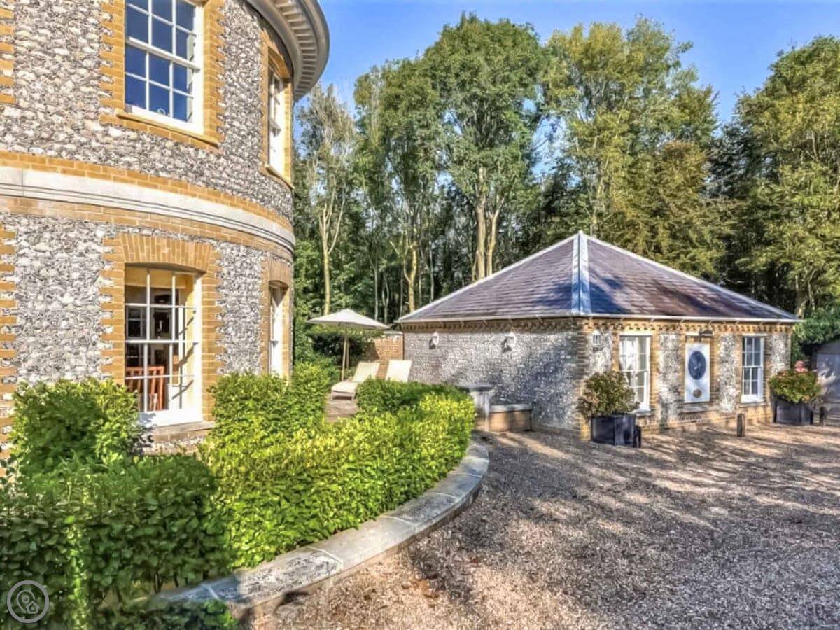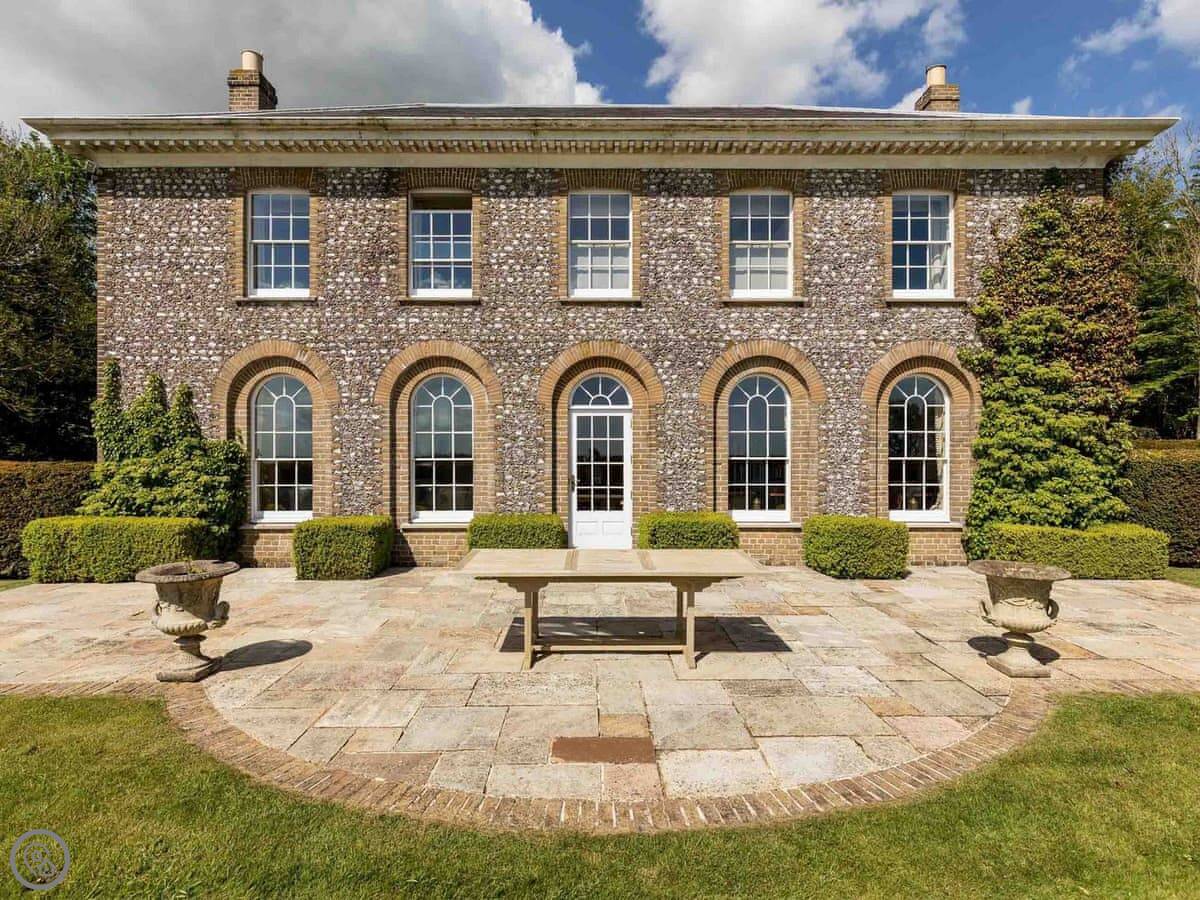 The Rubbing House is near Chichester, on Saint Roche's Hill. It’s a big house in a clearing in the woods. It sleeps sixteen, with seven bedrooms and five bathrooms. It’s a 5 Star place, so it’s well done and feels quite grand.
