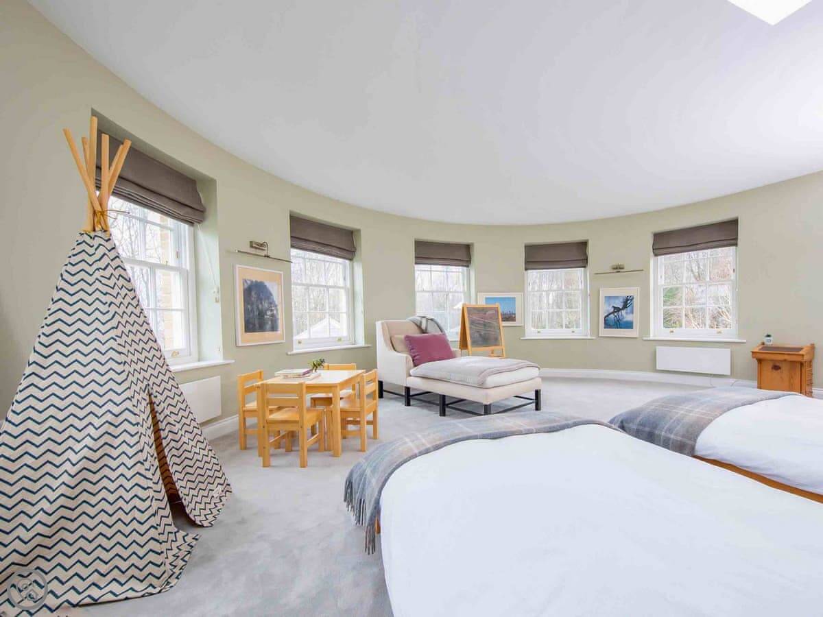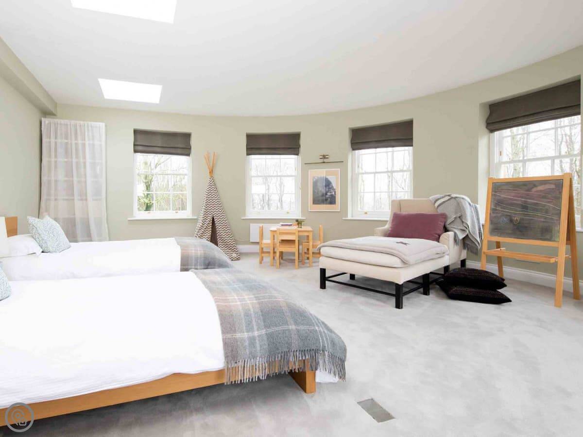 It’s really two parts. There’s the main house, which sleeps most people, and then a separate one-bedroom annexe called Yew Cottage. Between them, they cover all the space. There’s also a separate music room with a bed in it.