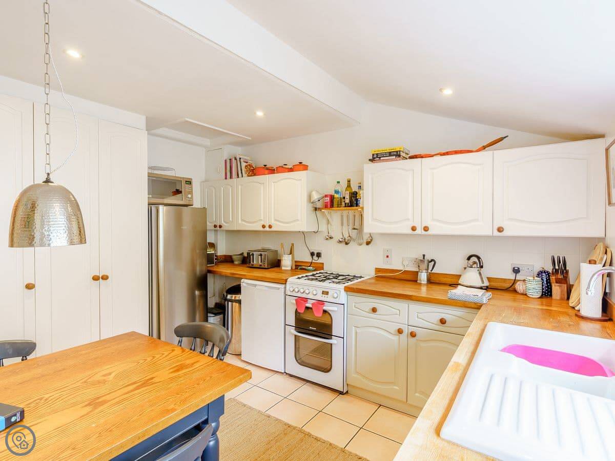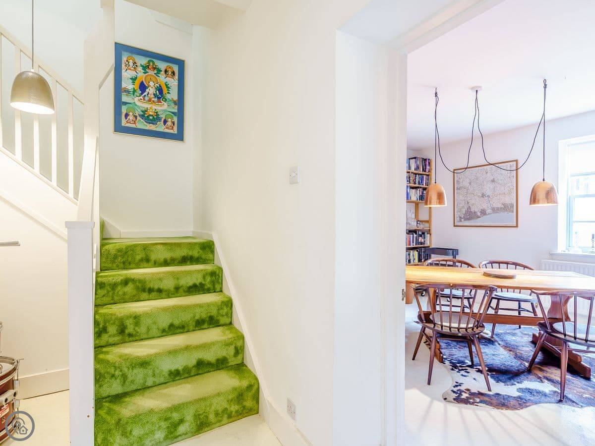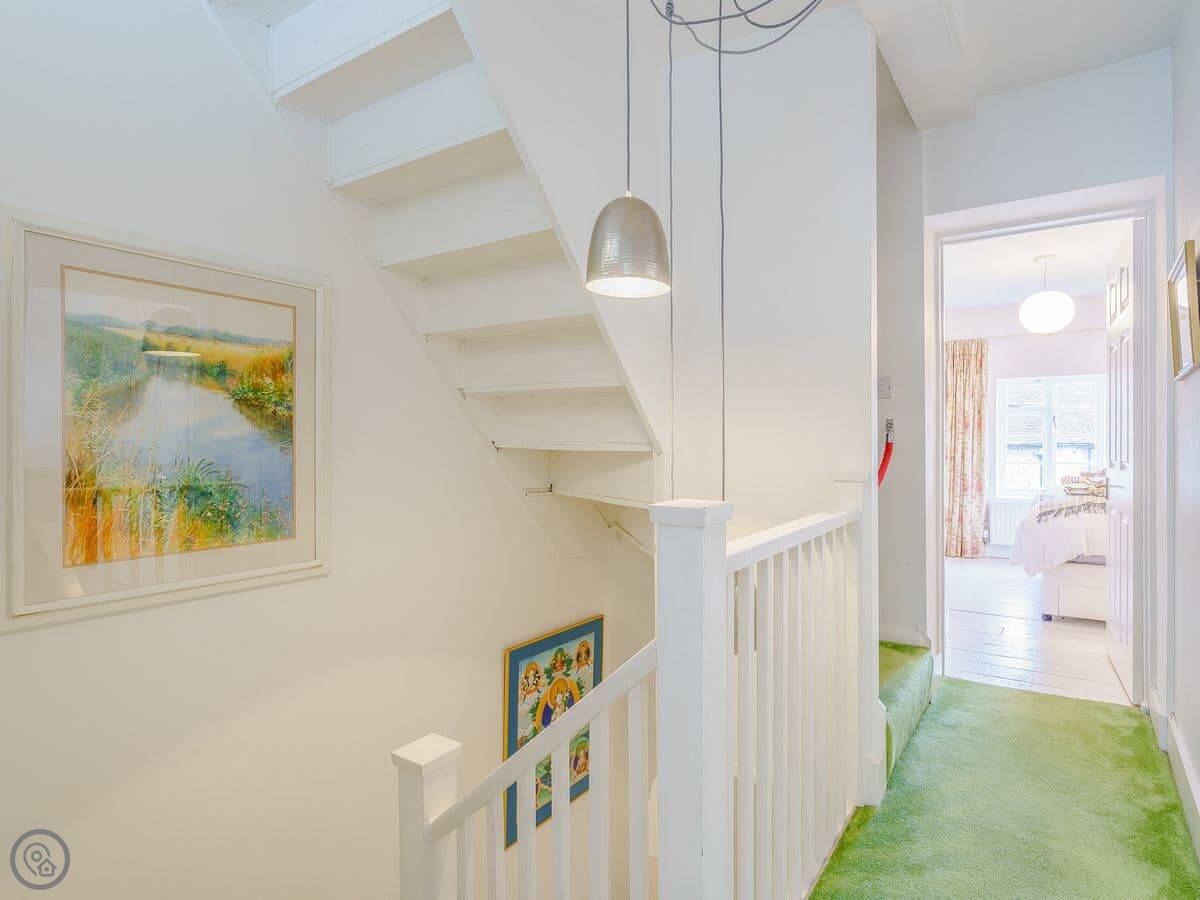 The stairs are fairly steep, it's an old Georgian house. The living room has a wood burner which is nice in winter. The kitchen has what you need, including a dishwasher. There's a washing machine too. All the bedding and towels are here.