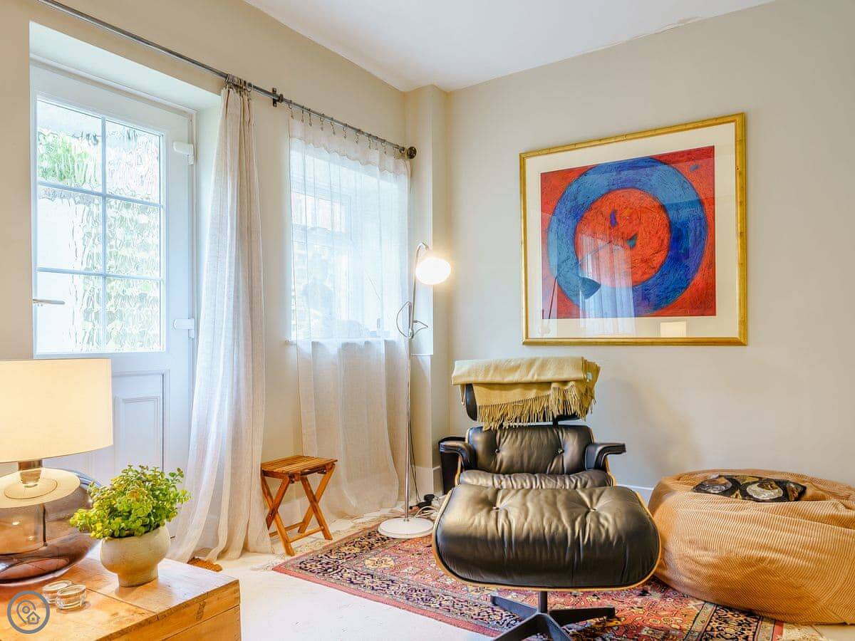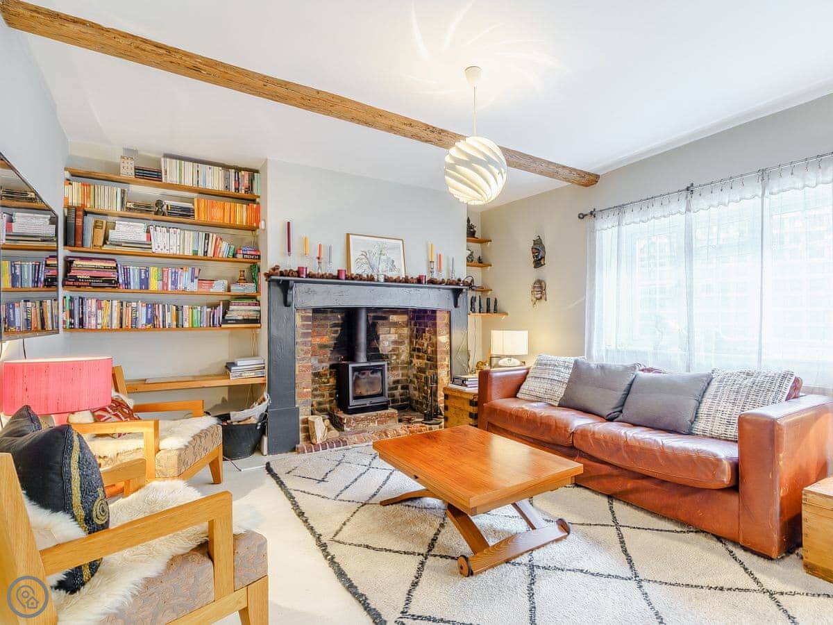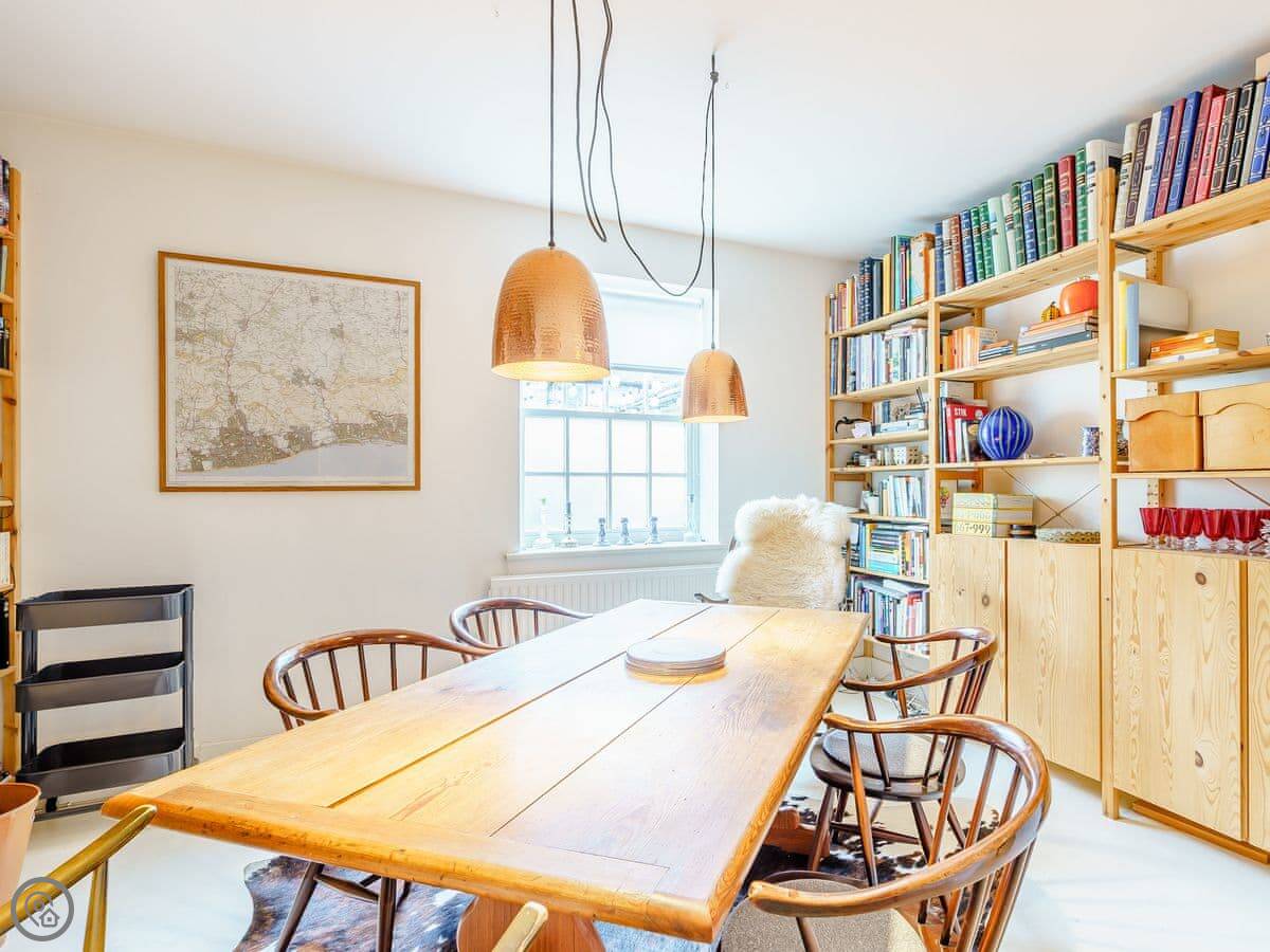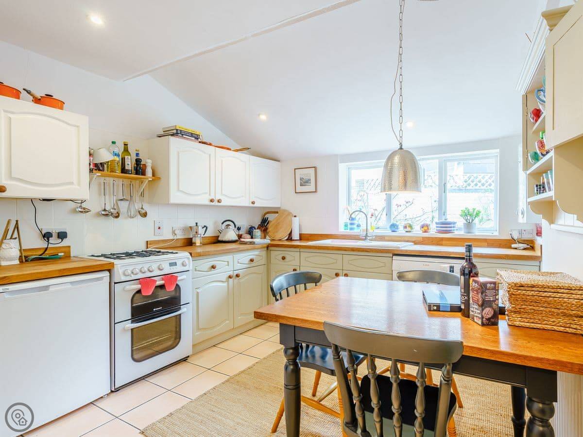 The stairs are fairly steep, it's an old Georgian house. The living room has a wood burner which is nice in winter. The kitchen has what you need, including a dishwasher. There's a washing machine too. All the bedding and towels are here.
