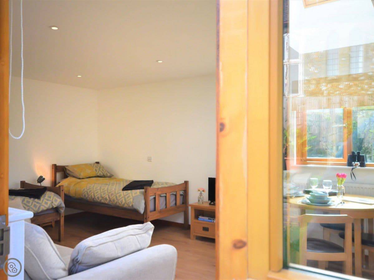 This single-level studio cottage near Amberley village offers relaxed comfortable holiday accommodation for two in an idyllic Sussex countryside setting. With an open plan layout the bedroom area is at one end with twin beds. There is a comfortable sofa and flat screen TV with DVD player and the dining table is placed in the front of a large window which frames the beautiful farmland view. At the other end of the cottage there is a spacious kitchen with plenty of room to rustle up a home-cooked meal and a modern shower room. Outside a pretty garden with patio and flower borders completes this self-catering escape to the country.
