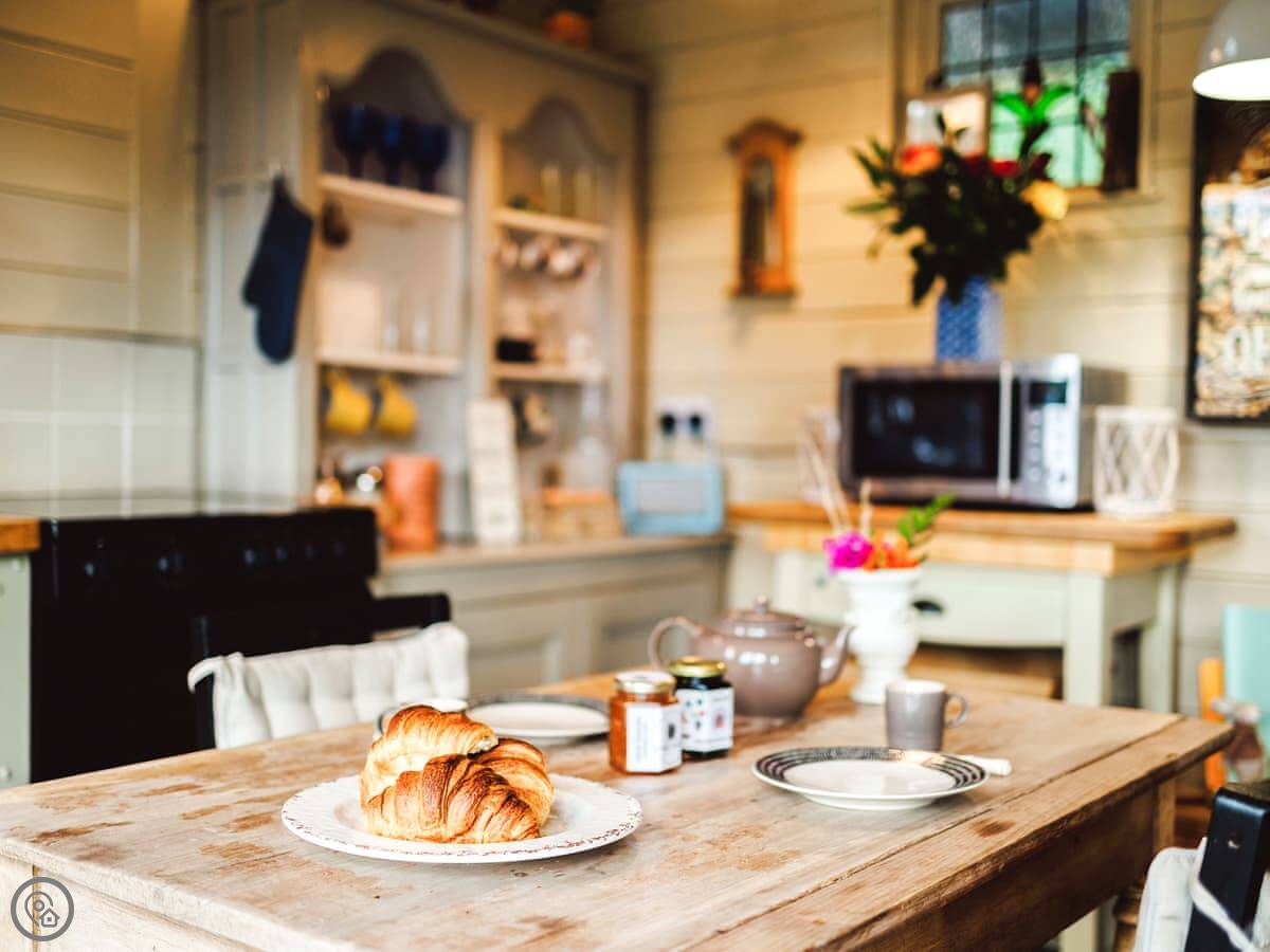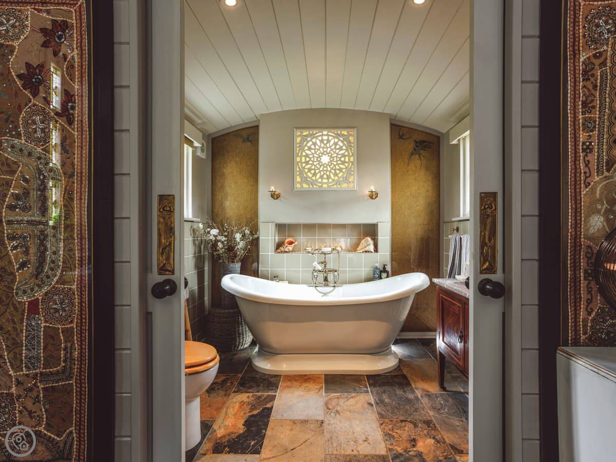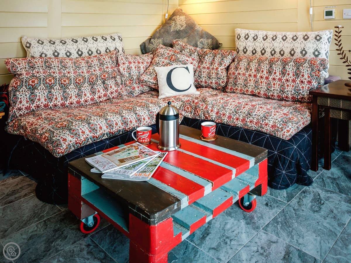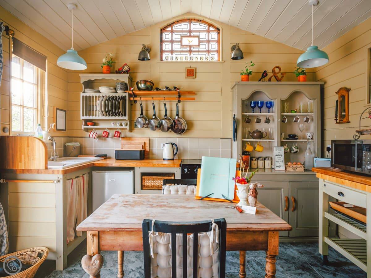 The Challoners is nestled in the heart of the East Sussex Weald and redefines what to expect from a premium glamping holiday experience. As you enter through the gate, your two wood-clad cabins greet you unassumingly, but step inside and the lavish attention to detail can really be appreciated. The shepherd’s hut houses the bedroom which offers a sumptuous Hypnos double bed, while delicate finishing touches include ornate furnishings and an antique electric stove heater. Through double sliding doors is a gorgeous en-suite bathroom with roll-top bath. In a separate lodge, are your living quarters. Adorned with chic rustic style, this too is exclusively yours and features an open plan living space complete with large corner sofa and a selection of books, games, and puzzles. For ultimate comfort and convenience there is also a walk-in shower room. Both cabins feature underfloor heating throughout for cosy winter evenings in this wonderful self-catering retreat.