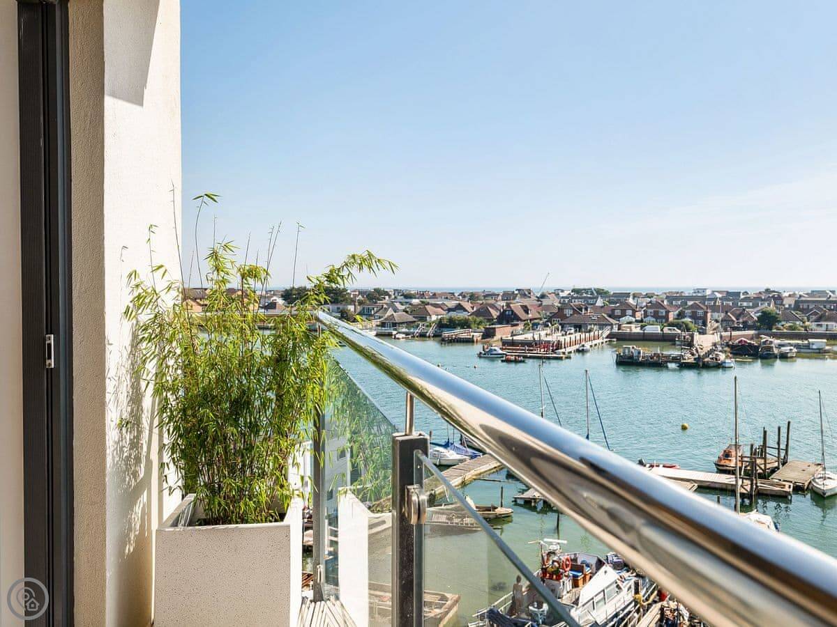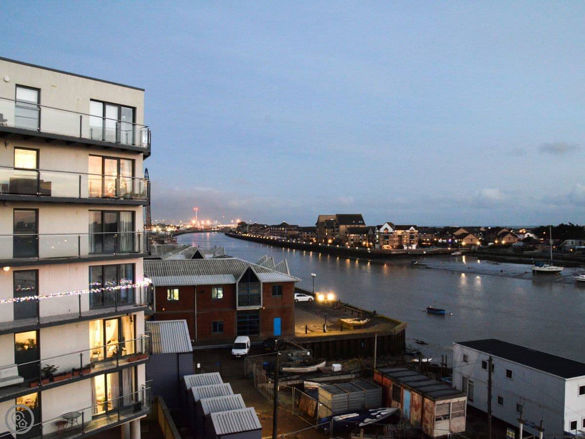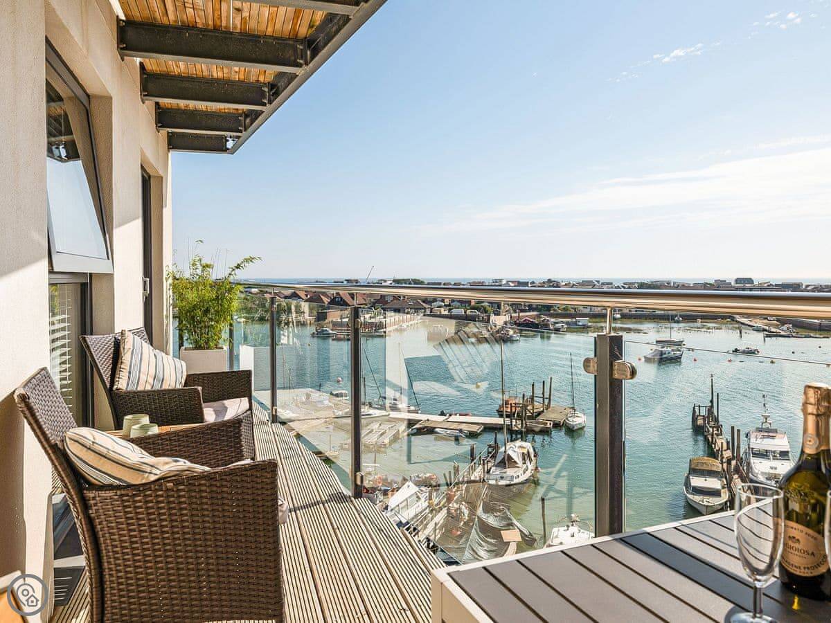 At the helm of a new development, Harbourside stands proudly by the mouth of the River Adur on the edge of the pretty coastal town of Shoreham-by-Sea, West Sussex. Offering dramatic 180-degree sea views this luxury holiday home is an exclusive base to explore the famous seaside towns and beaches of the South Coast. Offering underground parking the lift whisks you straight up to the fourth floor where this beautiful coastal apartment awaits. Stepping through the front door the hallway provides glimpses of the sea and leads you to the open-plan living space where the stunning panorama hits you through the huge floor-to-ceiling windows. The large balconies to both sides stretch the length of the apartment offering seascape views east of the sun rising over Brighton and the i360 south to Shoreham Beach and west across the estuary and the Adur Ferry Bridge with achingly beautiful sunsets.