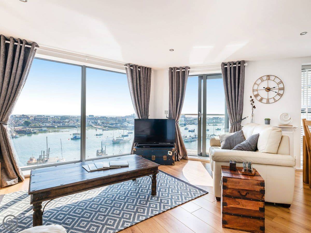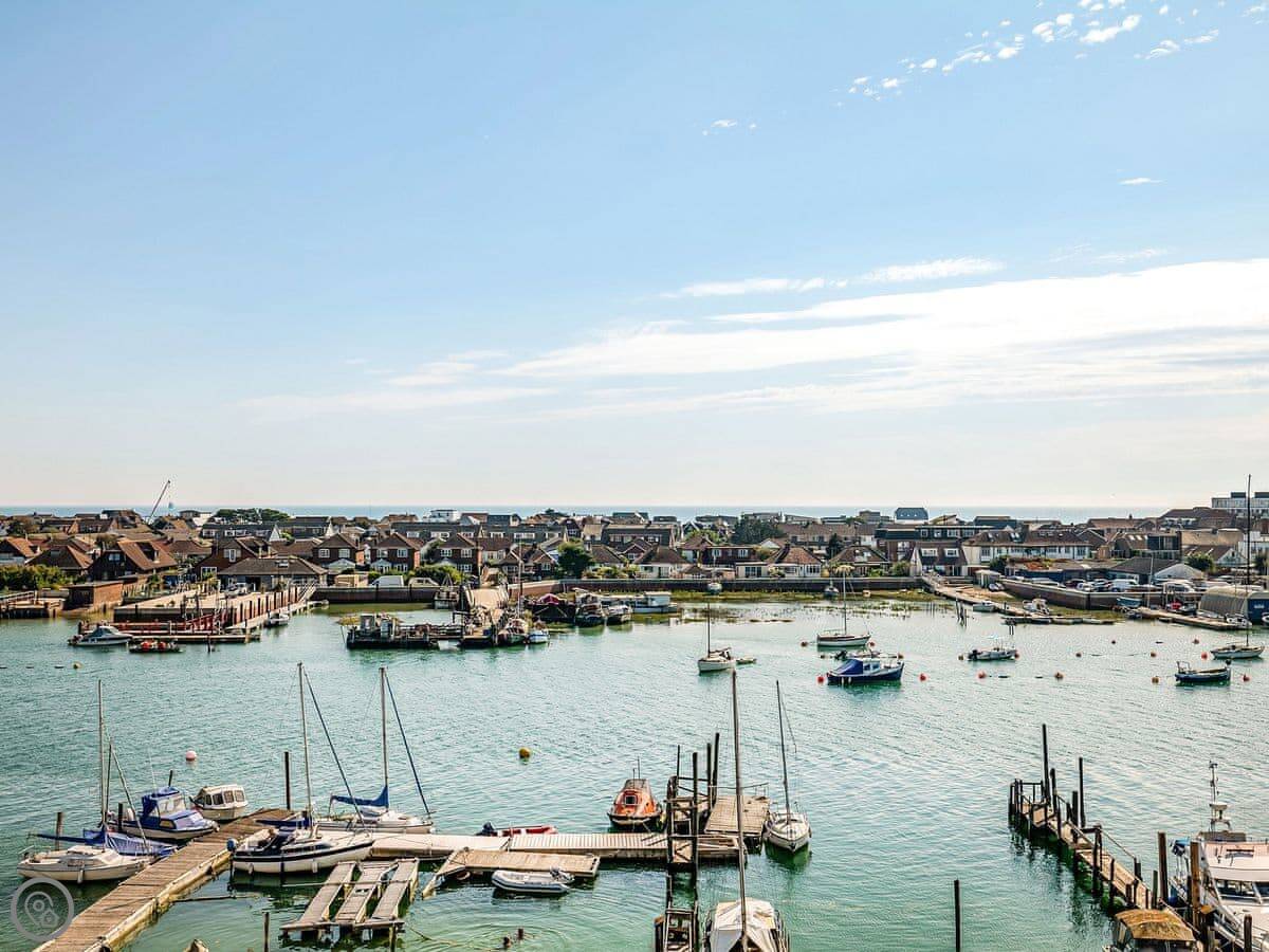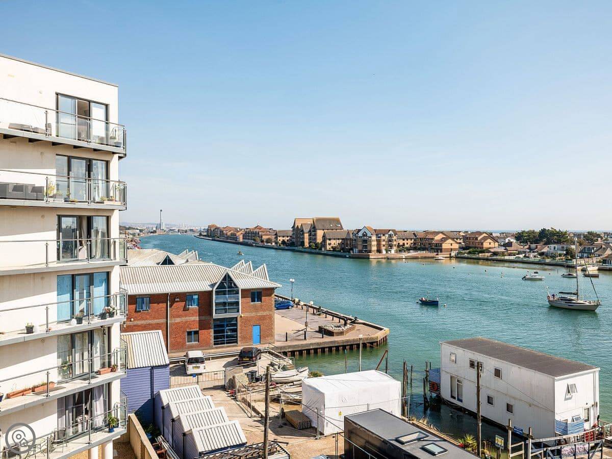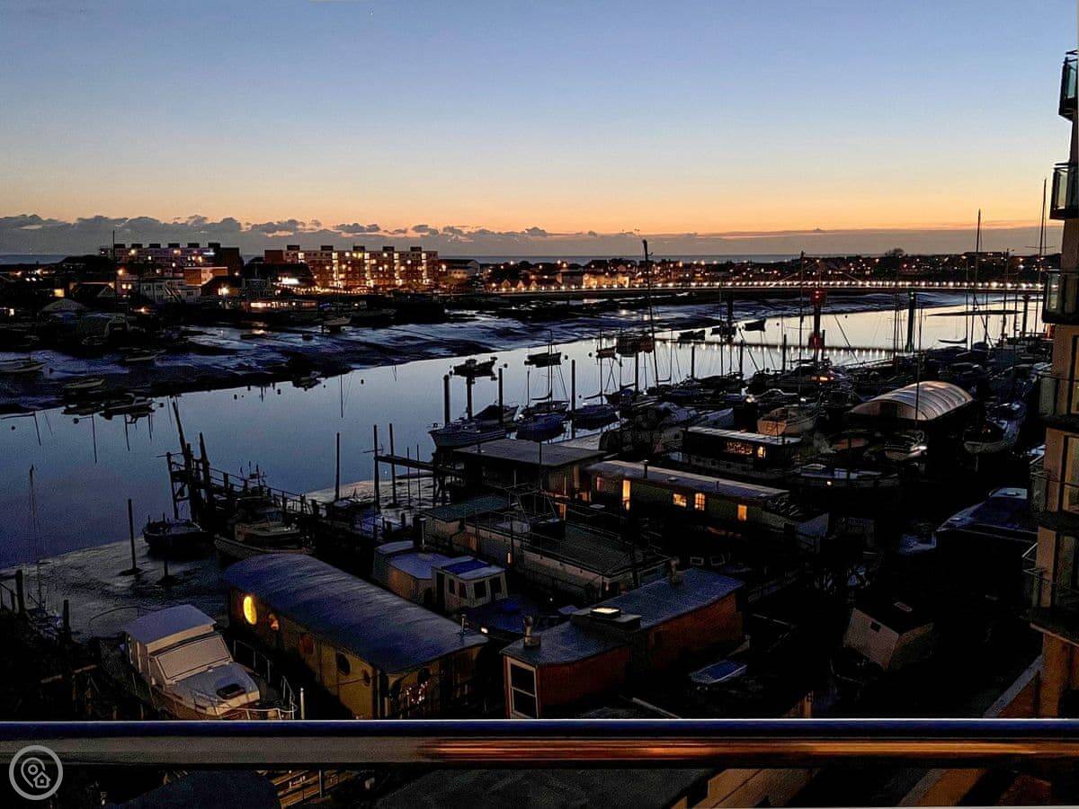 At the helm of a new development, Harbourside stands proudly by the mouth of the River Adur on the edge of the pretty coastal town of Shoreham-by-Sea, West Sussex. Offering dramatic 180-degree sea views this luxury holiday home is an exclusive base to explore the famous seaside towns and beaches of the South Coast. Offering underground parking the lift whisks you straight up to the fourth floor where this beautiful coastal apartment awaits. Stepping through the front door the hallway provides glimpses of the sea and leads you to the open-plan living space where the stunning panorama hits you through the huge floor-to-ceiling windows. The large balconies to both sides stretch the length of the apartment offering seascape views east of the sun rising over Brighton and the i360 south to Shoreham Beach and west across the estuary and the Adur Ferry Bridge with achingly beautiful sunsets.