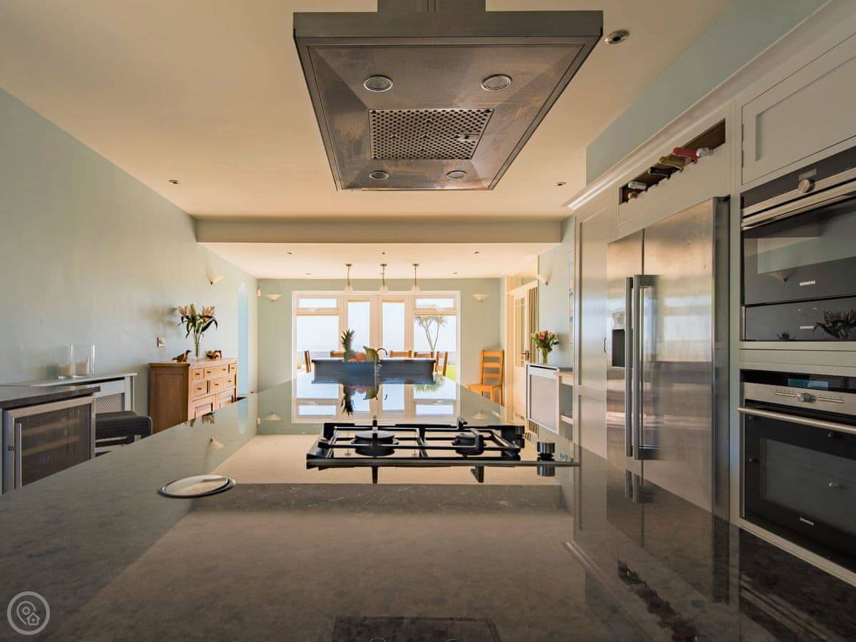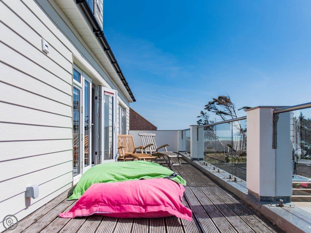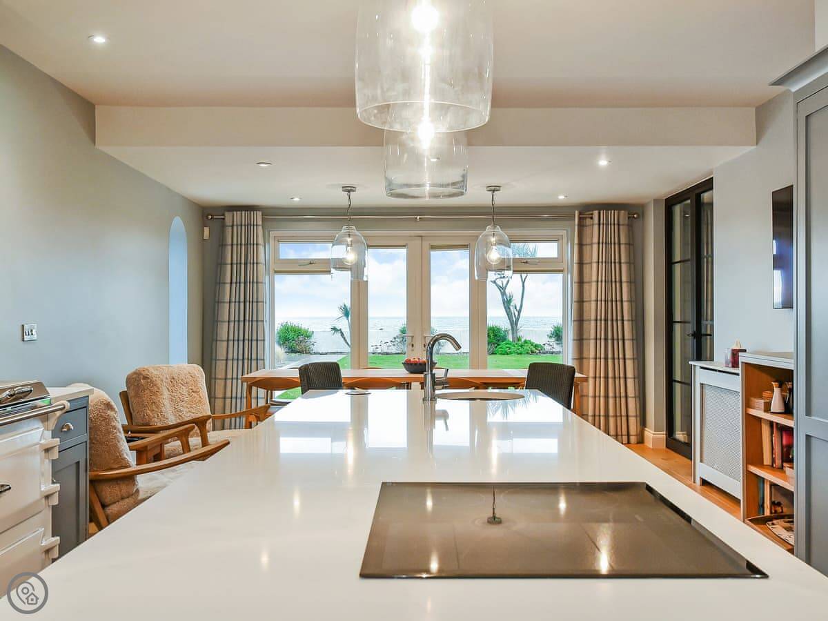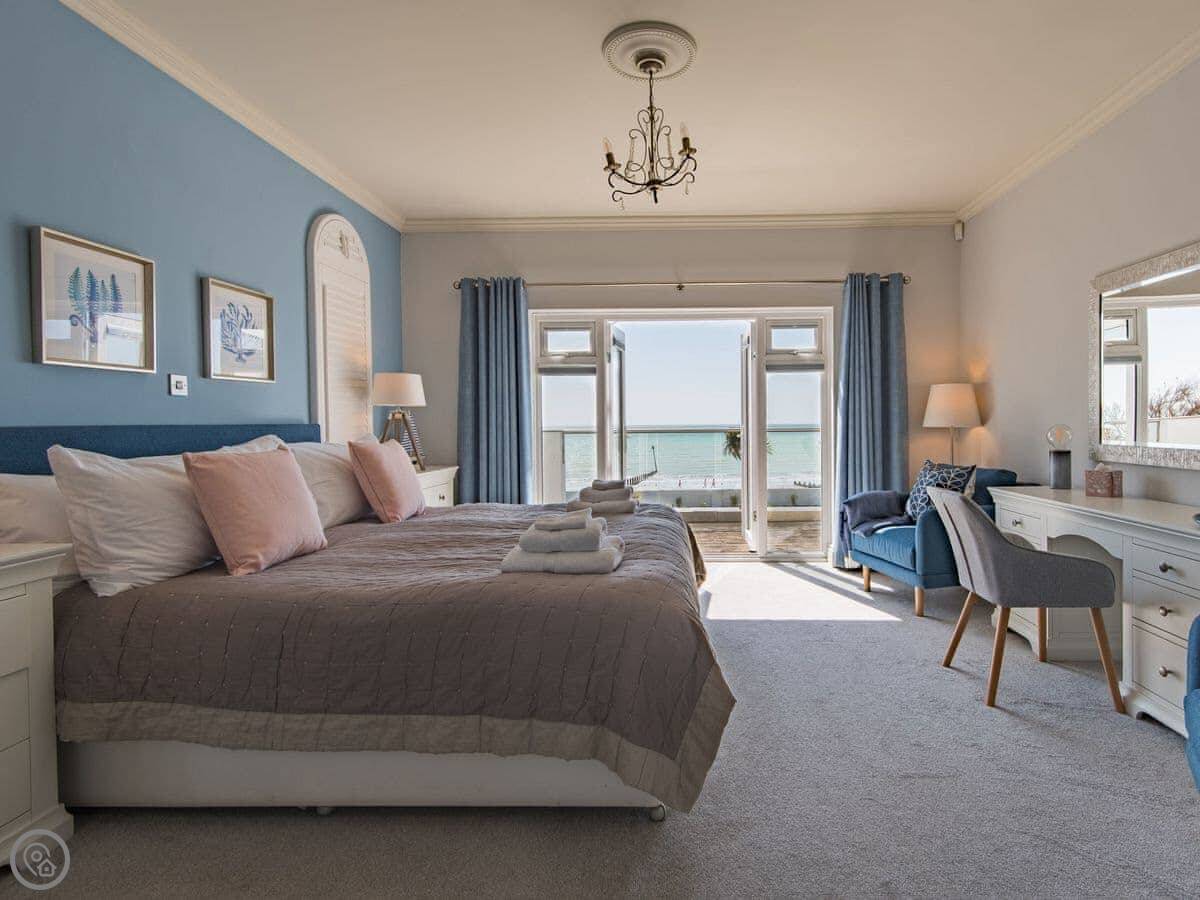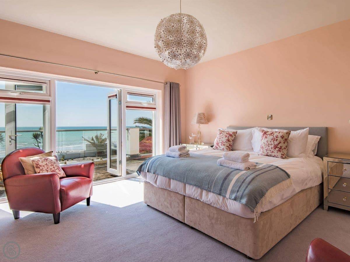 It sleeps up to ten. Five bedrooms, three bathrooms. Four of the bedrooms have sea views. It's got a 5 Star rating, so it's kitted out to a very high standard. A place that size, it isn't cheap, but you're paying for the quality and the location.