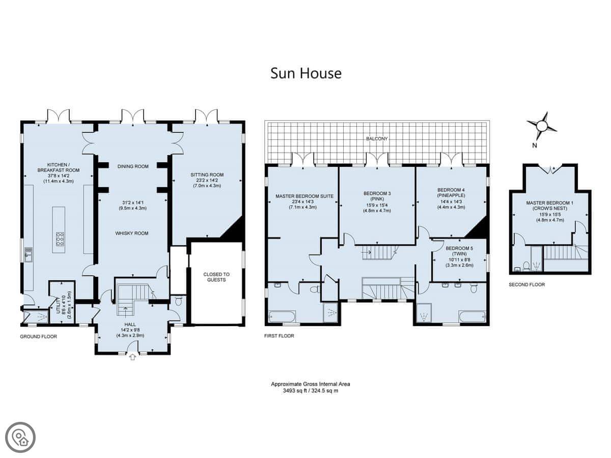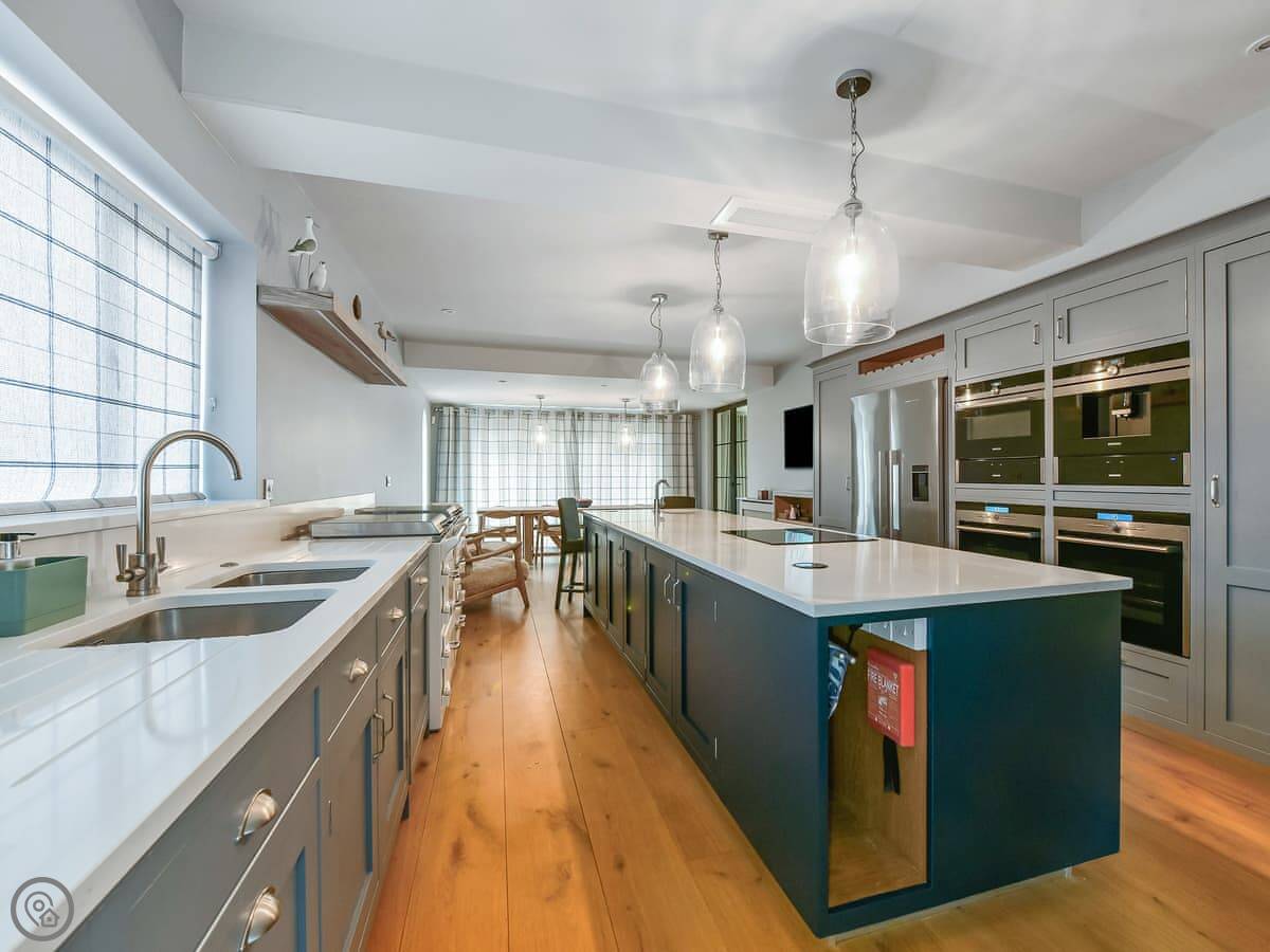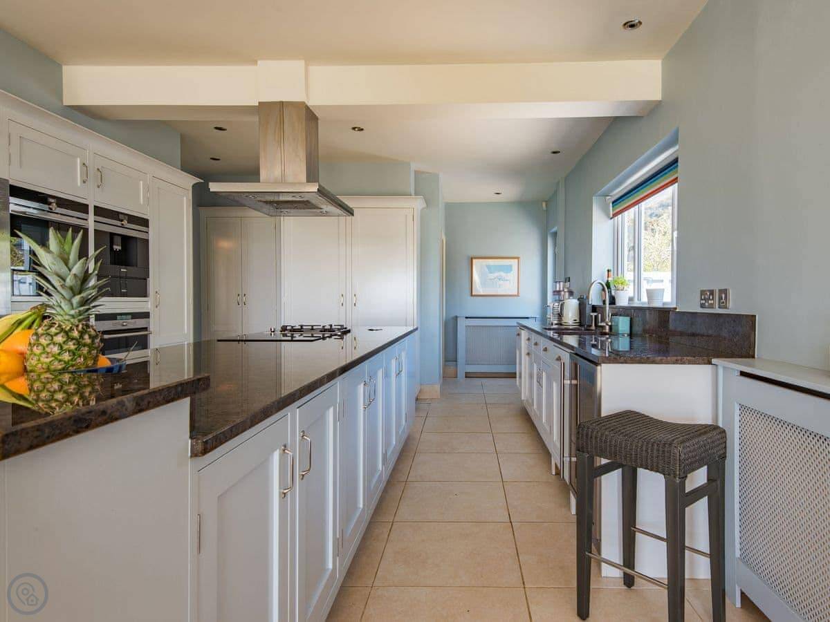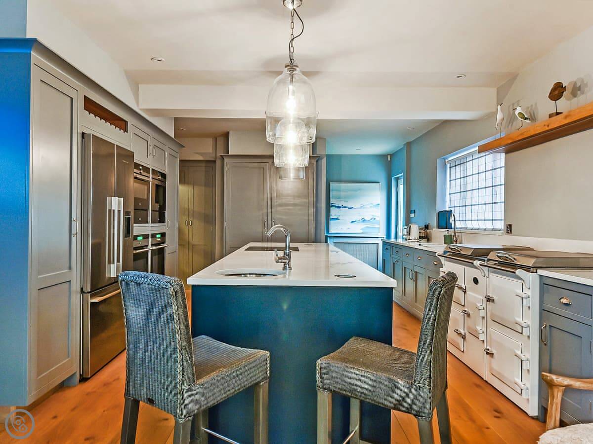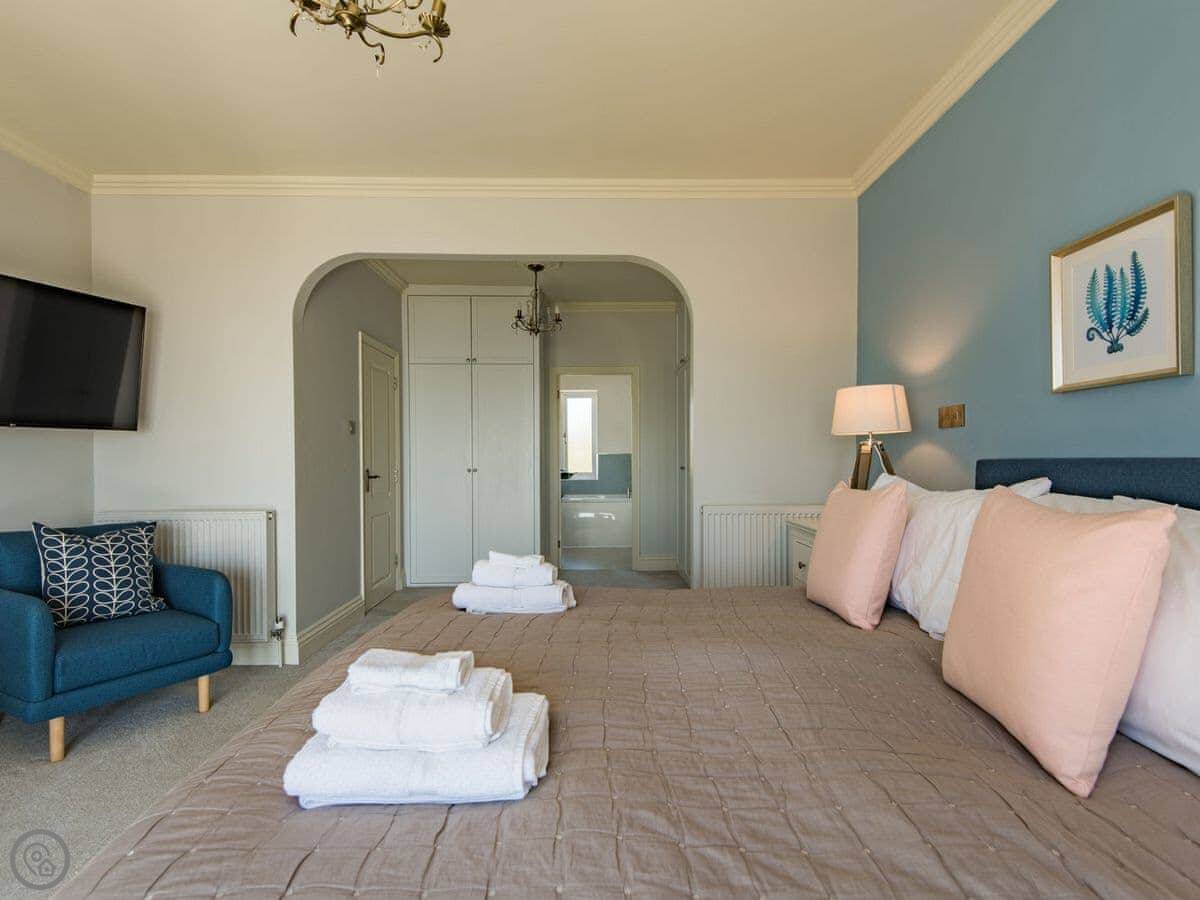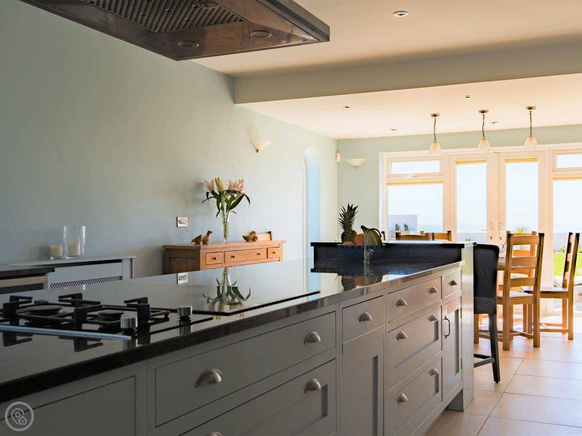 It sleeps up to ten. Five bedrooms, three bathrooms. Four of the bedrooms have sea views. It's got a 5 Star rating, so it's kitted out to a very high standard. A place that size, it isn't cheap, but you're paying for the quality and the location.