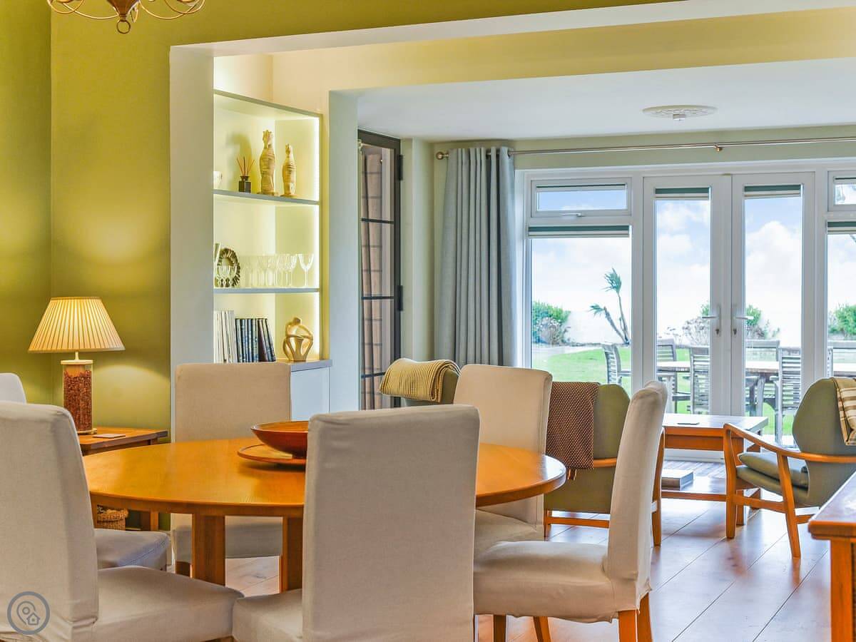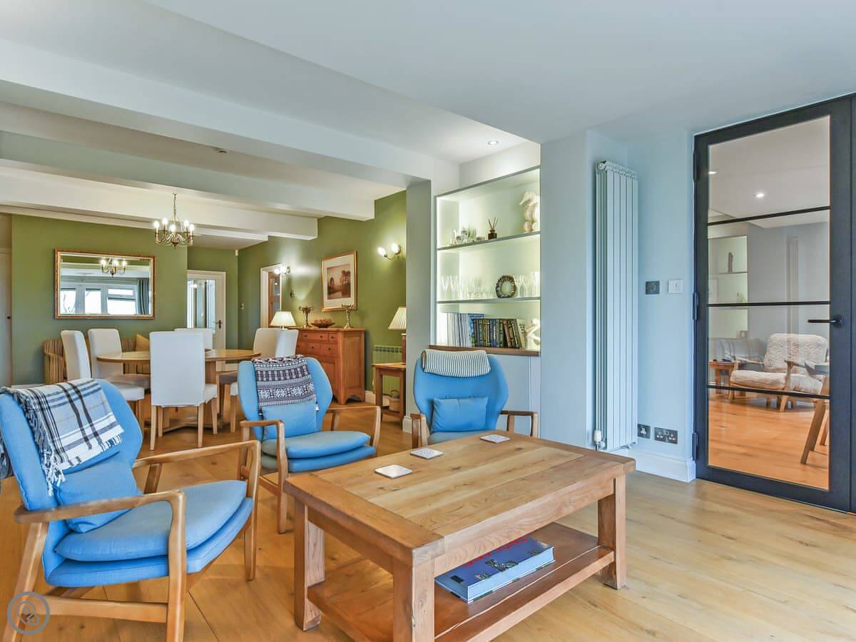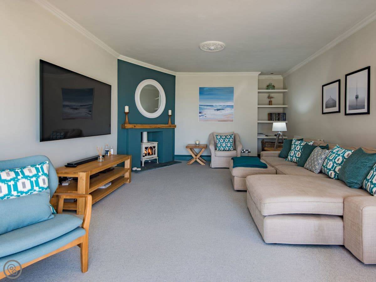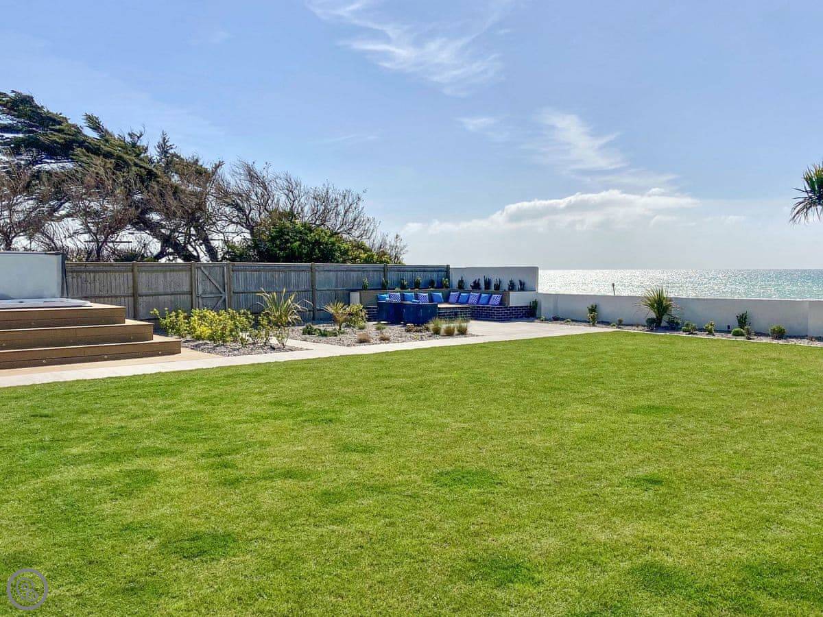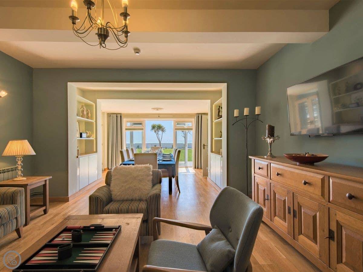 The garden is huge and it's the main thing. There's a summerhouse you can open up, a hot tub that looks out to sea, and a fire pit area right by the beach wall. There's even an outdoor shower to rinse the sand off. Inside, the rooms are large. There's a main living room with a wood burner, a separate dining room, and another snug they call the Whisky Room. The kitchen is very well-equipped.