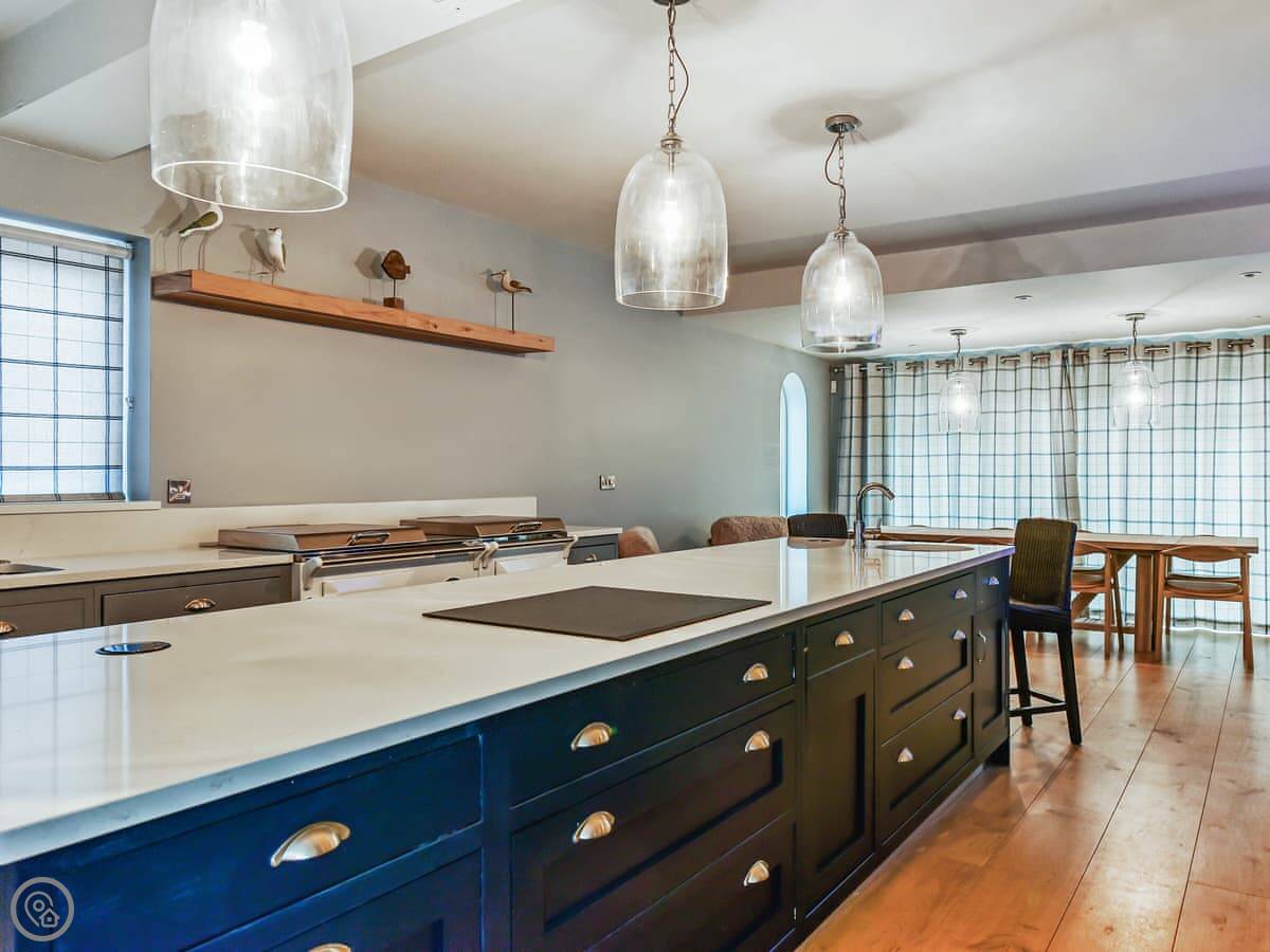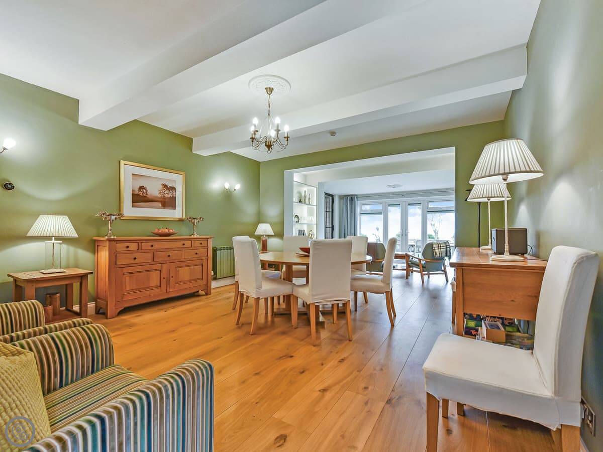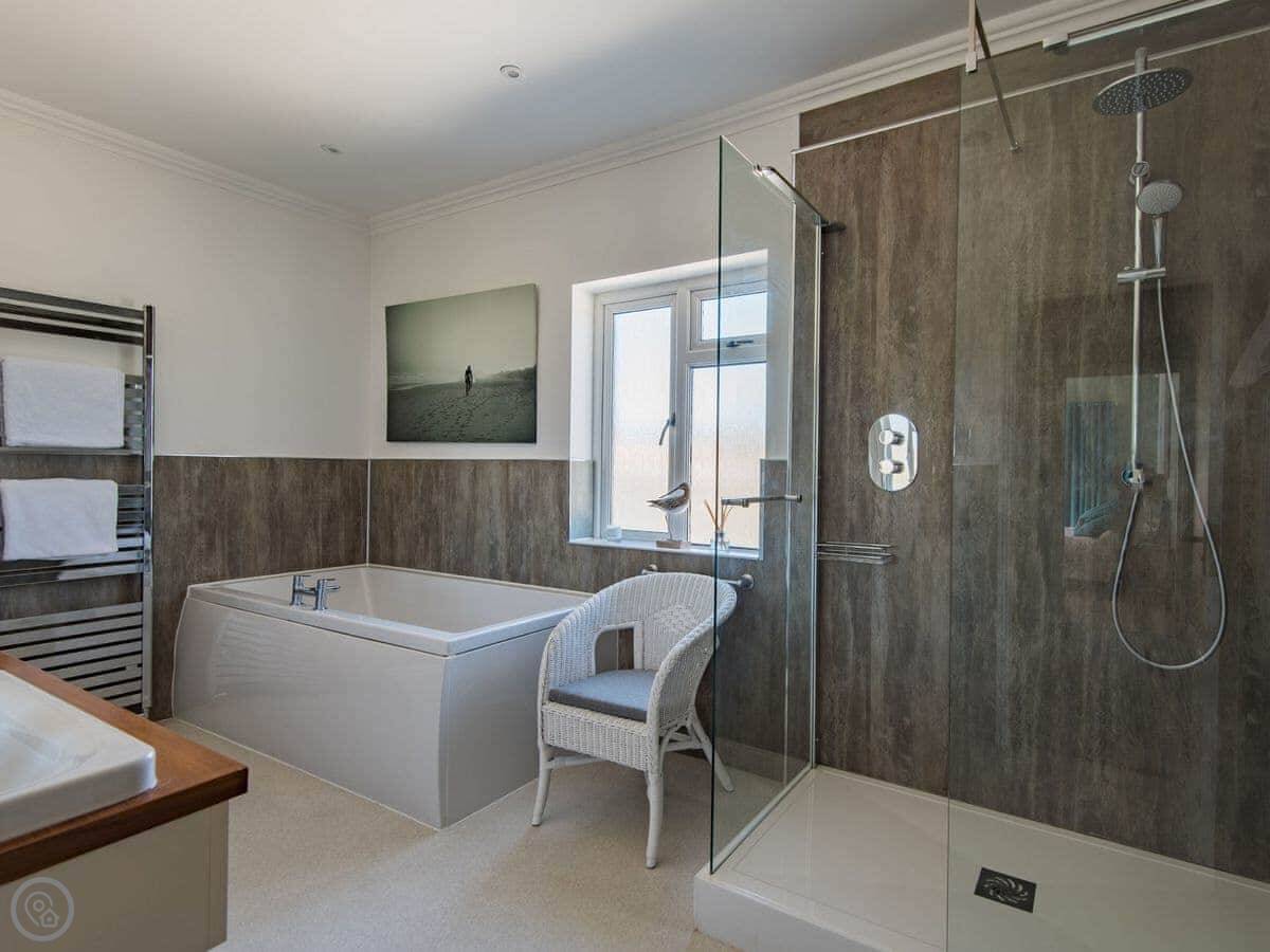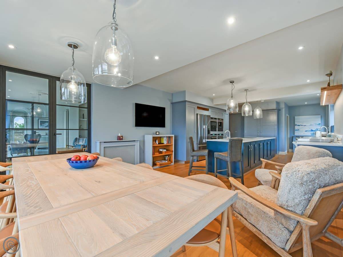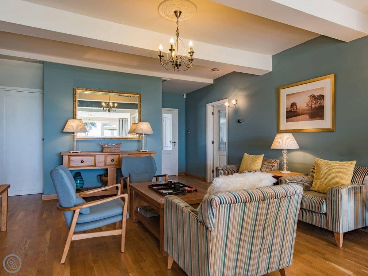The garden is huge and it's the main thing. There's a summerhouse you can open up, a hot tub that looks out to sea, and a fire pit area right by the beach wall. There's even an outdoor shower to rinse the sand off. Inside, the rooms are large. There's a main living room with a wood burner, a separate dining room, and another snug they call the Whisky Room. The kitchen is very well-equipped.