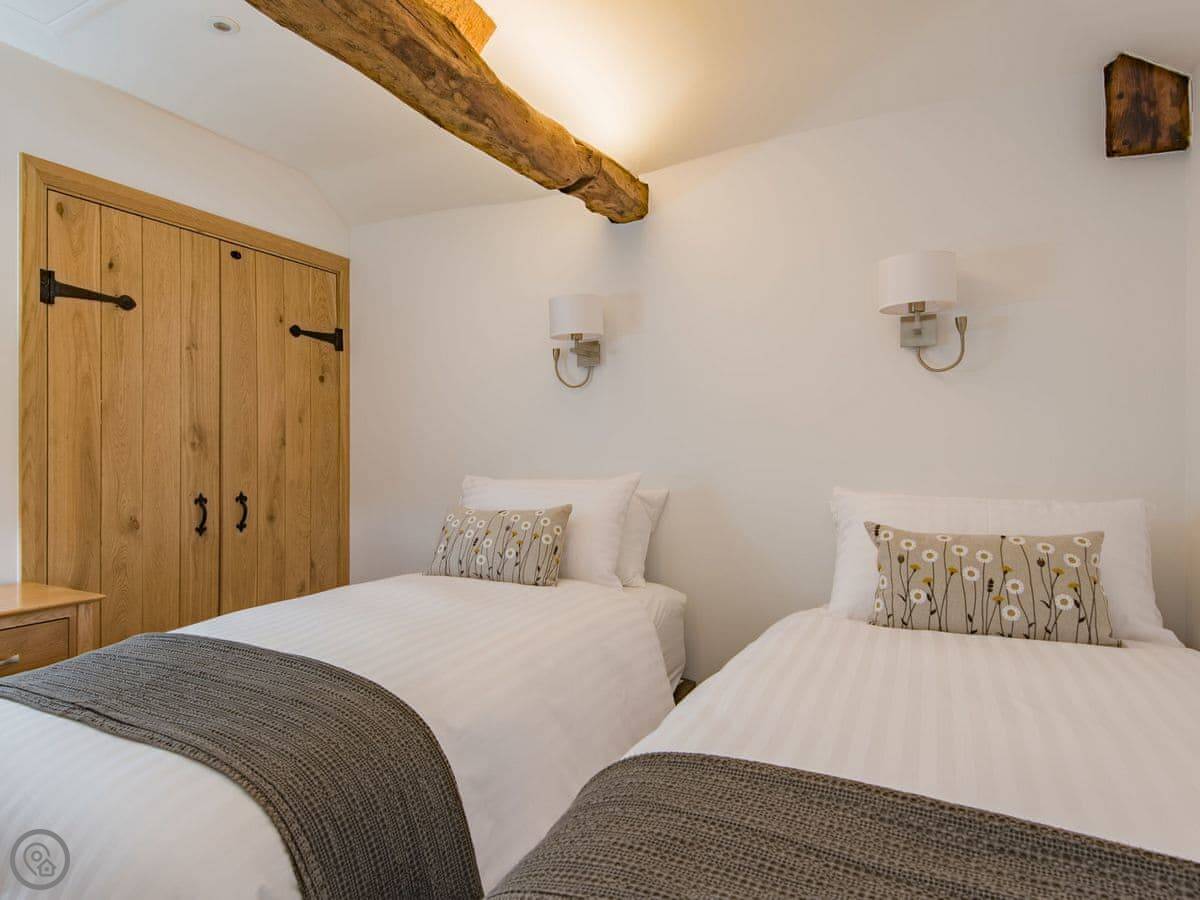 It sleeps four. Two bedrooms, one shower room. It's got a 5 Star rating, which means it's well-equipped and finished to a high standard. Everything's on one level, which is good. There's just one small step into the shower.