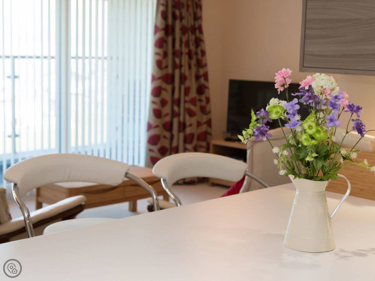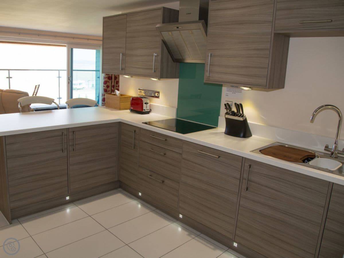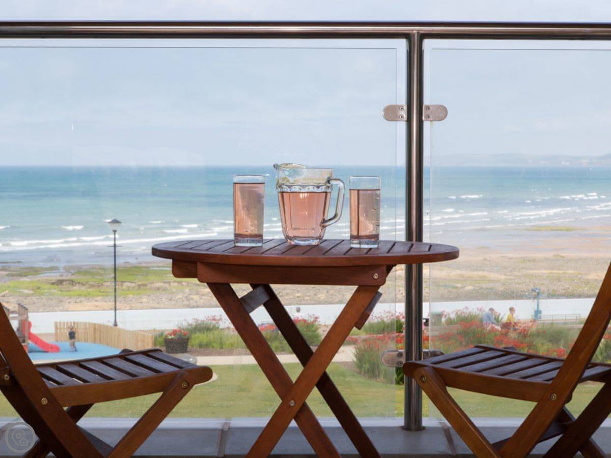 Apartment 5 is on the north coast of Devon, right at Westward Ho! It's on the fifth floor of a modern block called Latitude 51. The view is the main thing. You look straight out over the sea. You have a balcony with sliding doors off the living room.