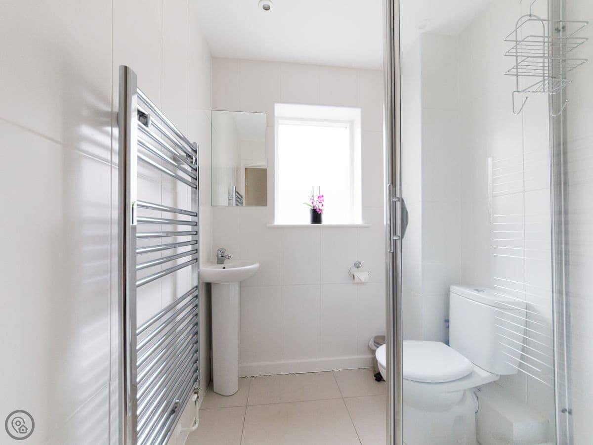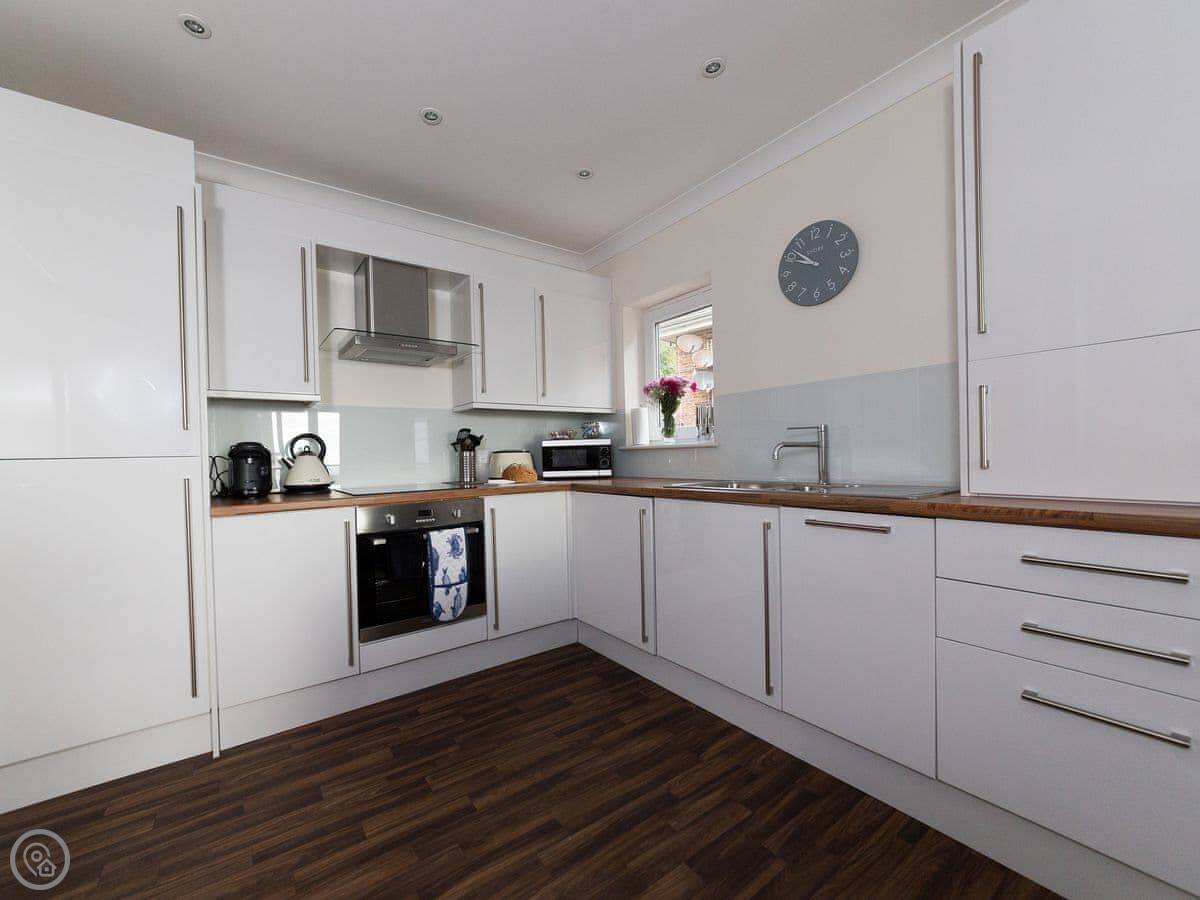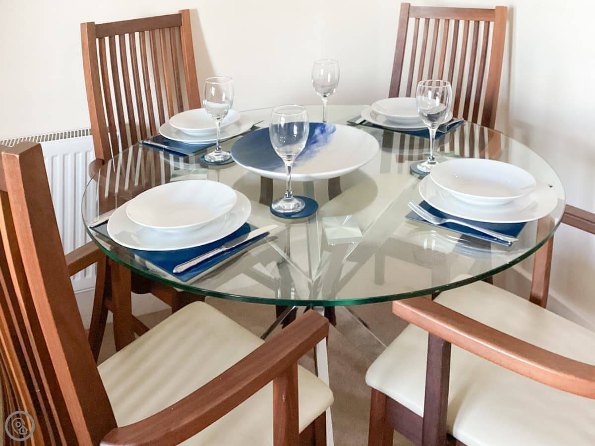 Inside, it’s got a 4 Star rating. It’s comfortable and well-equipped. There’s a washing machine, a dishwasher, and Wi-Fi. We provide a cot and a high chair if you need them. No pets, sorry.