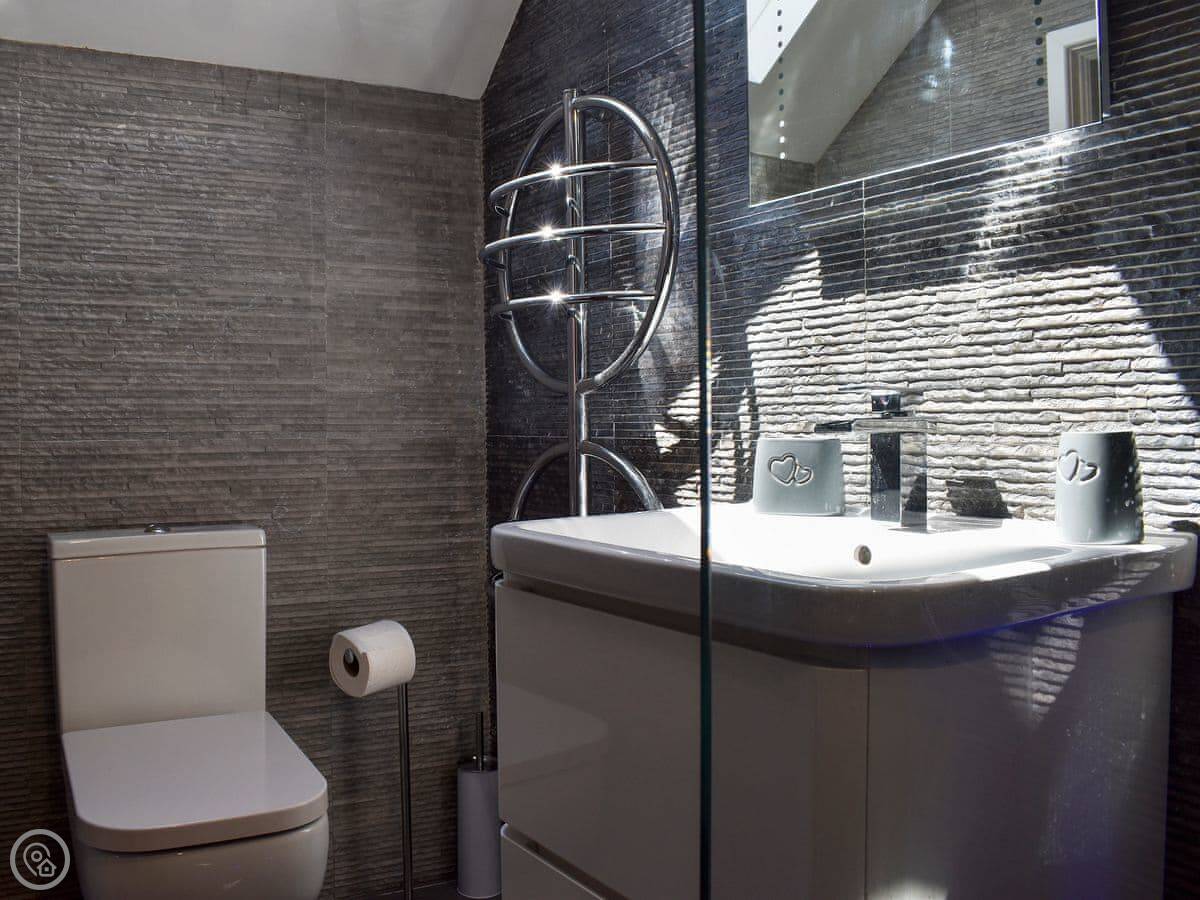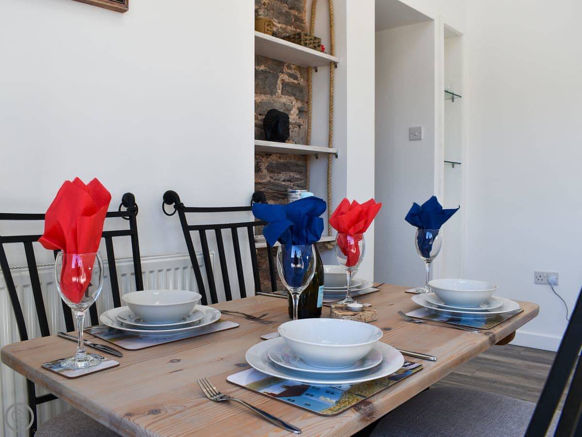 Apple Barn Cottage is in Brixham, near the top of Knick Knack Lane. It's detached. The conversion from the old barn means the layout is a bit different.